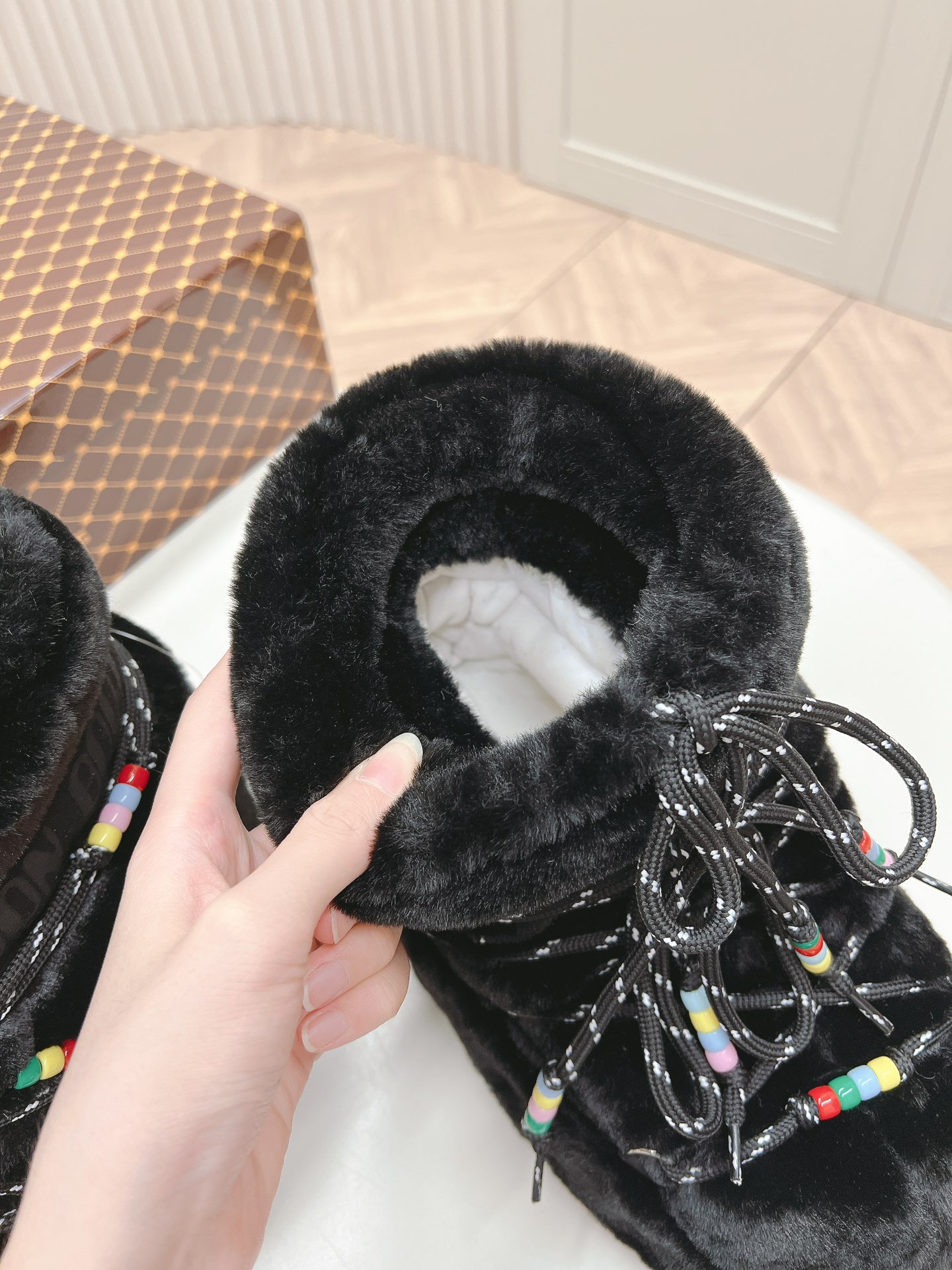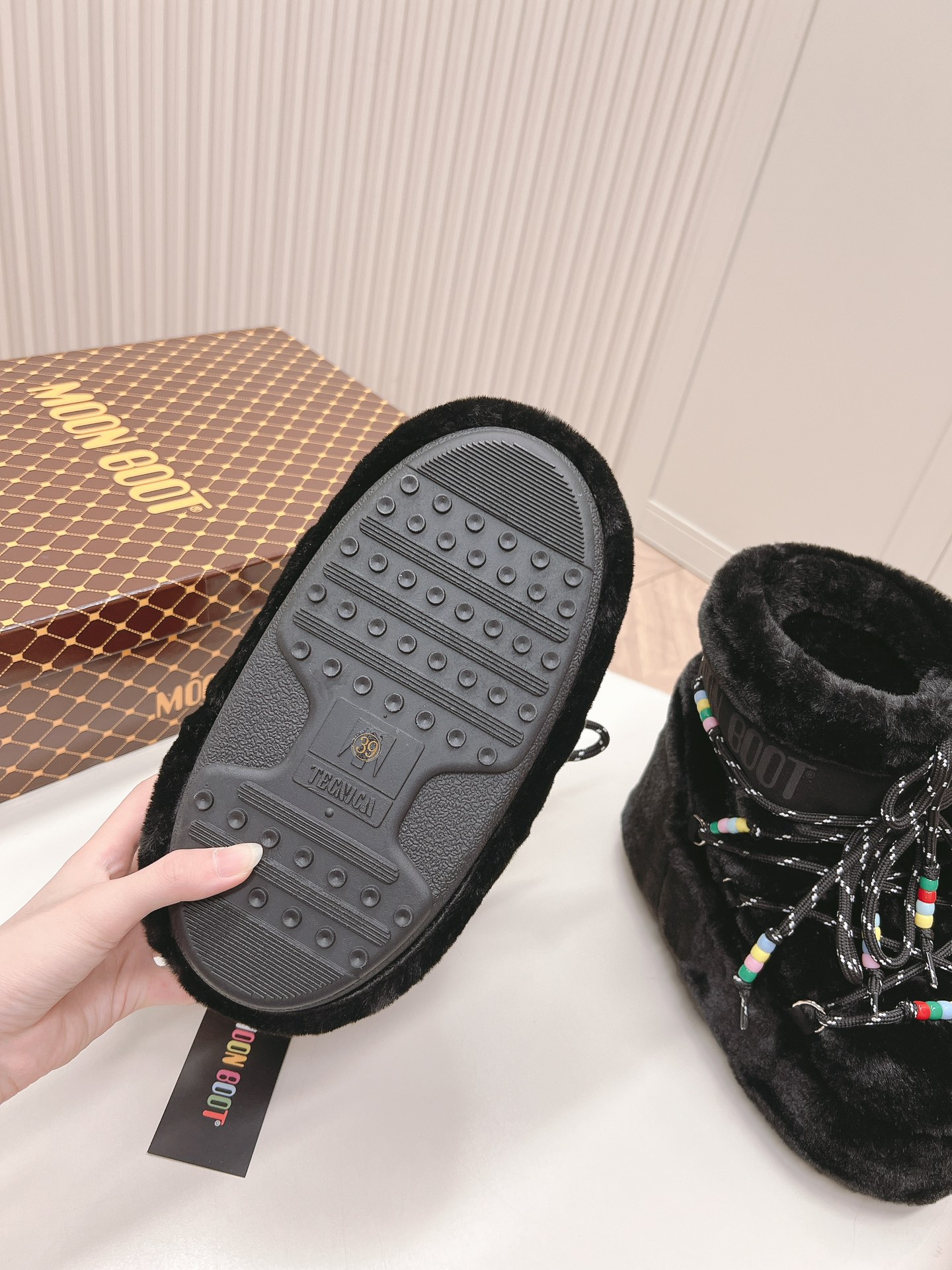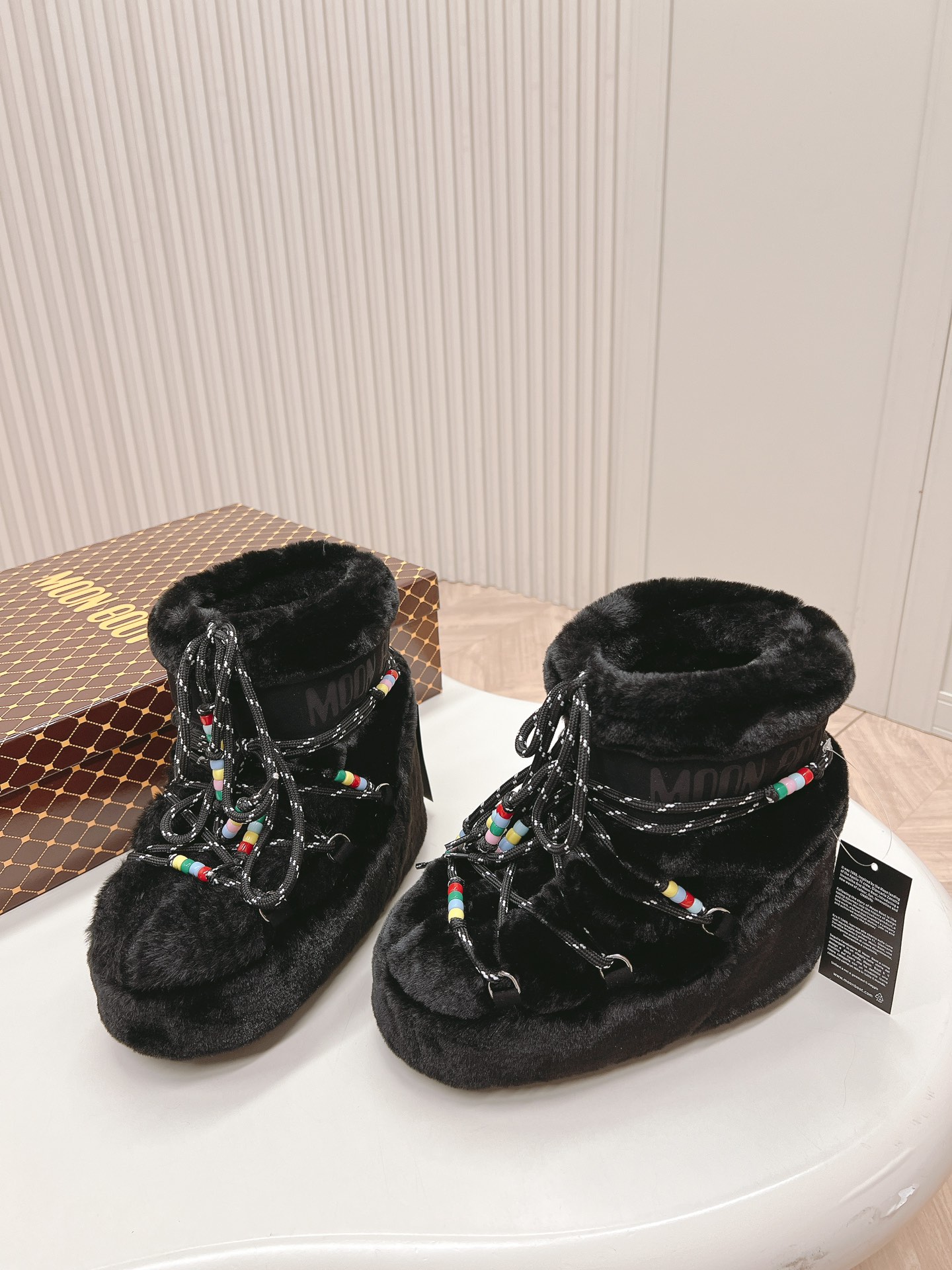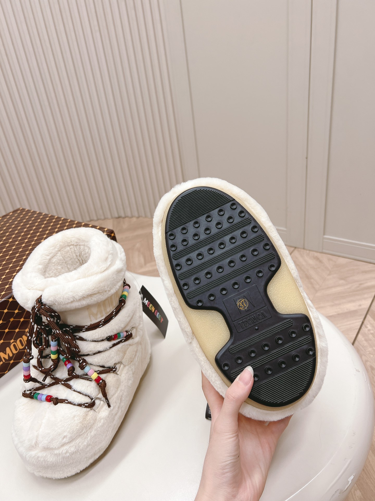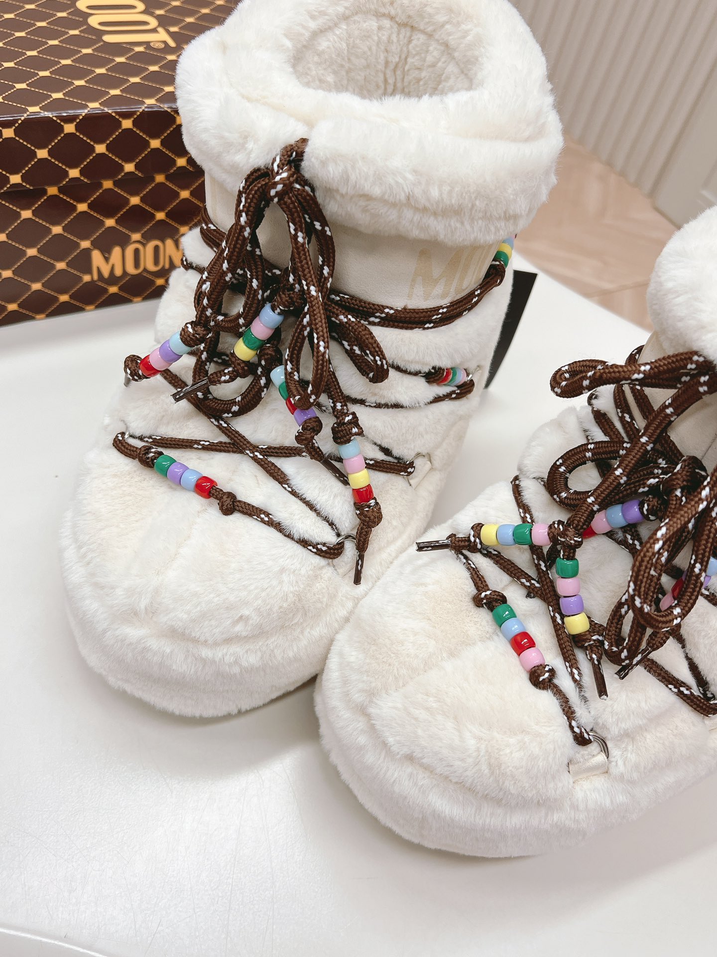 Moon Boot Shearling Fur Icon Glance Satin Nylon Lace-Up Women Snow Boots