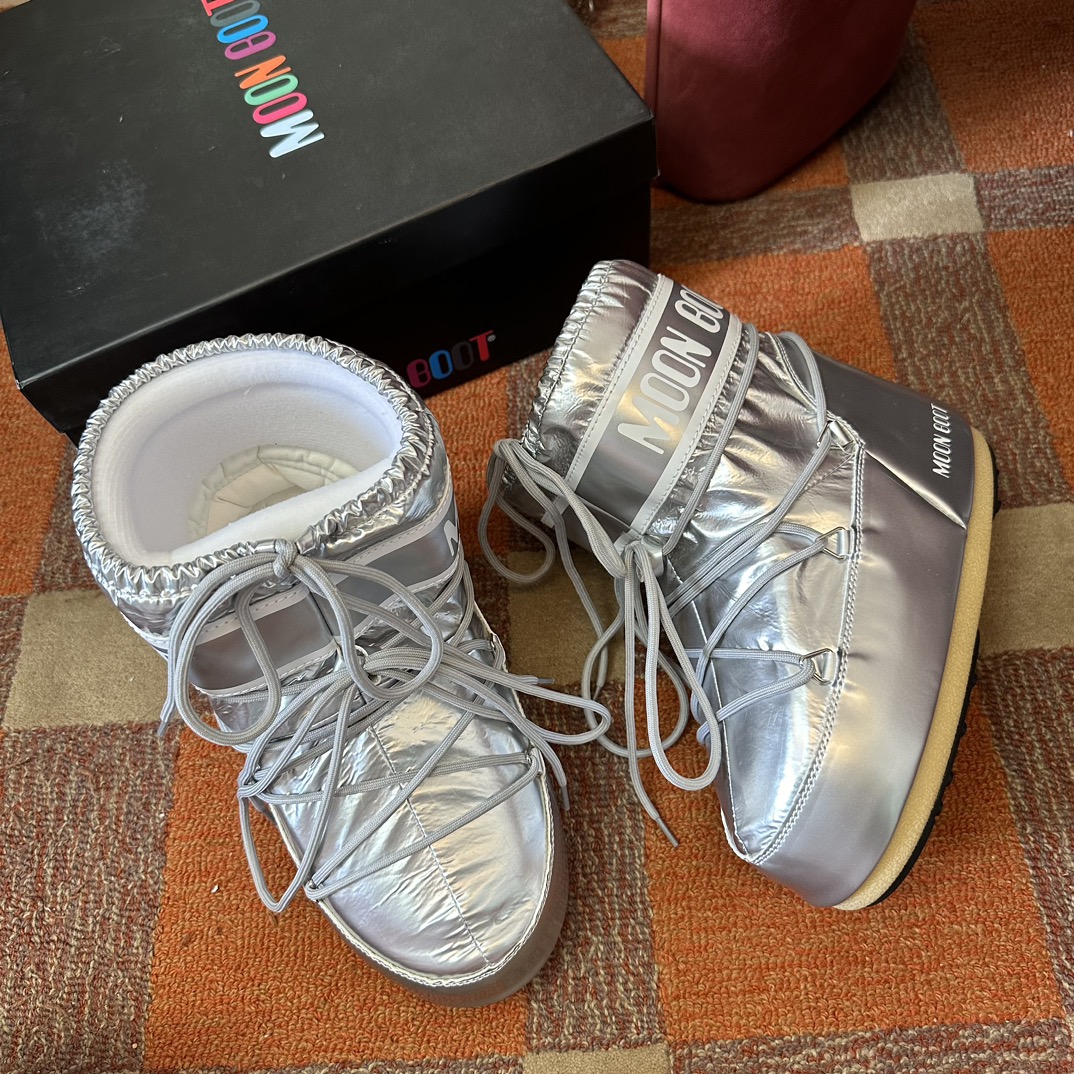Moon Boot Icon Glance Satin Nylon Lace-Up Women Snow Boots silver