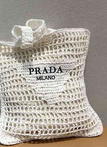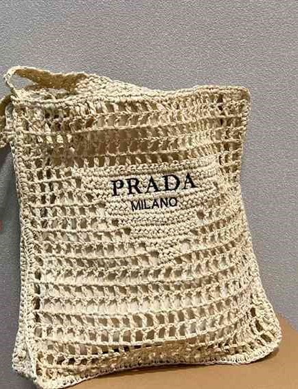 PRADA Raffia Embroidered Logo Tote Bag replica
