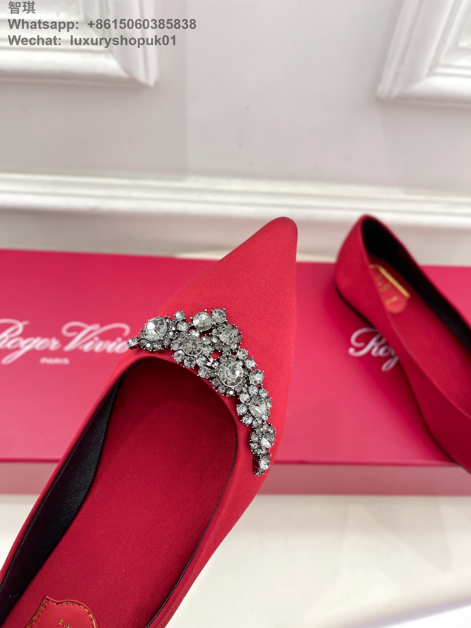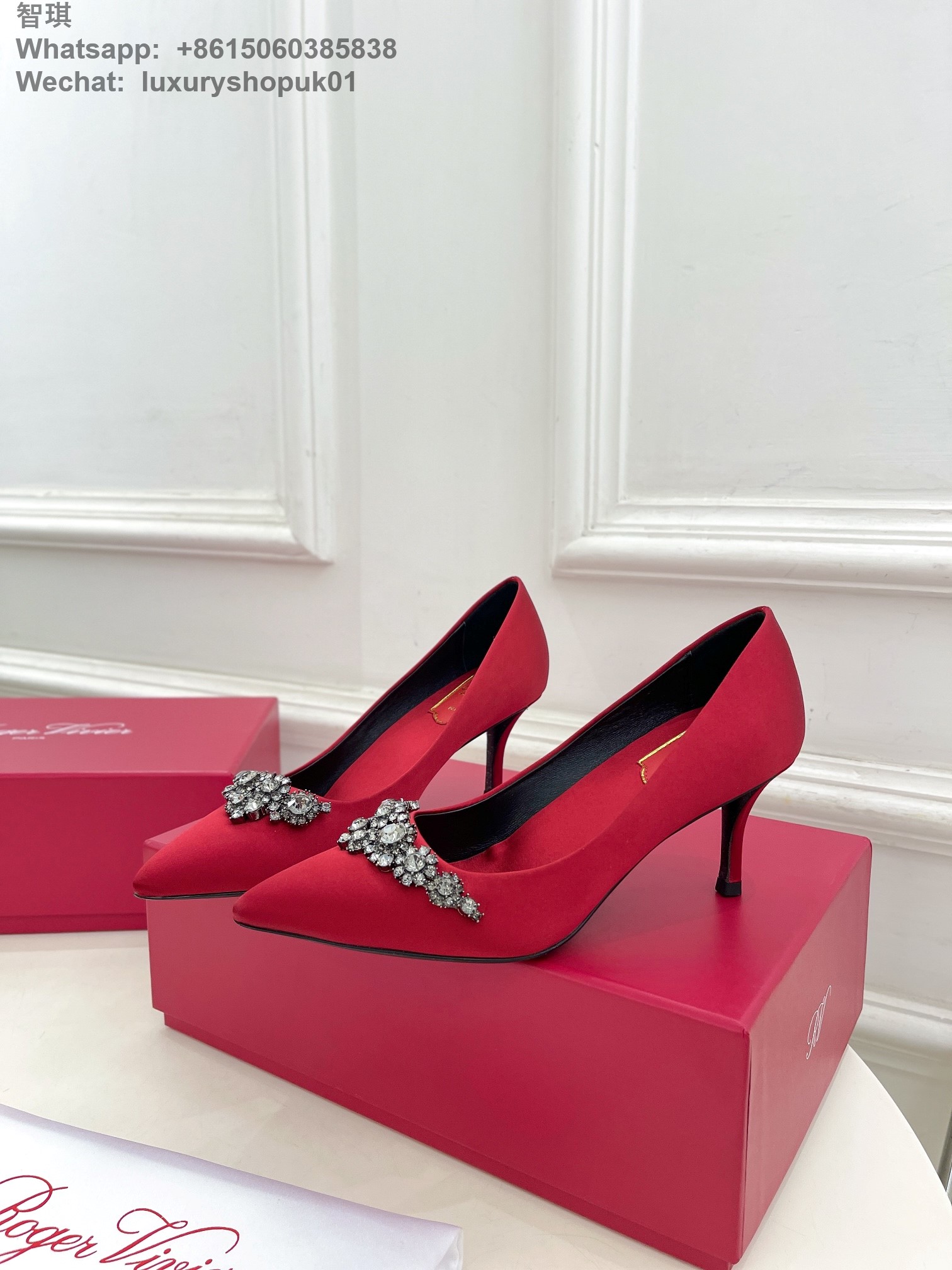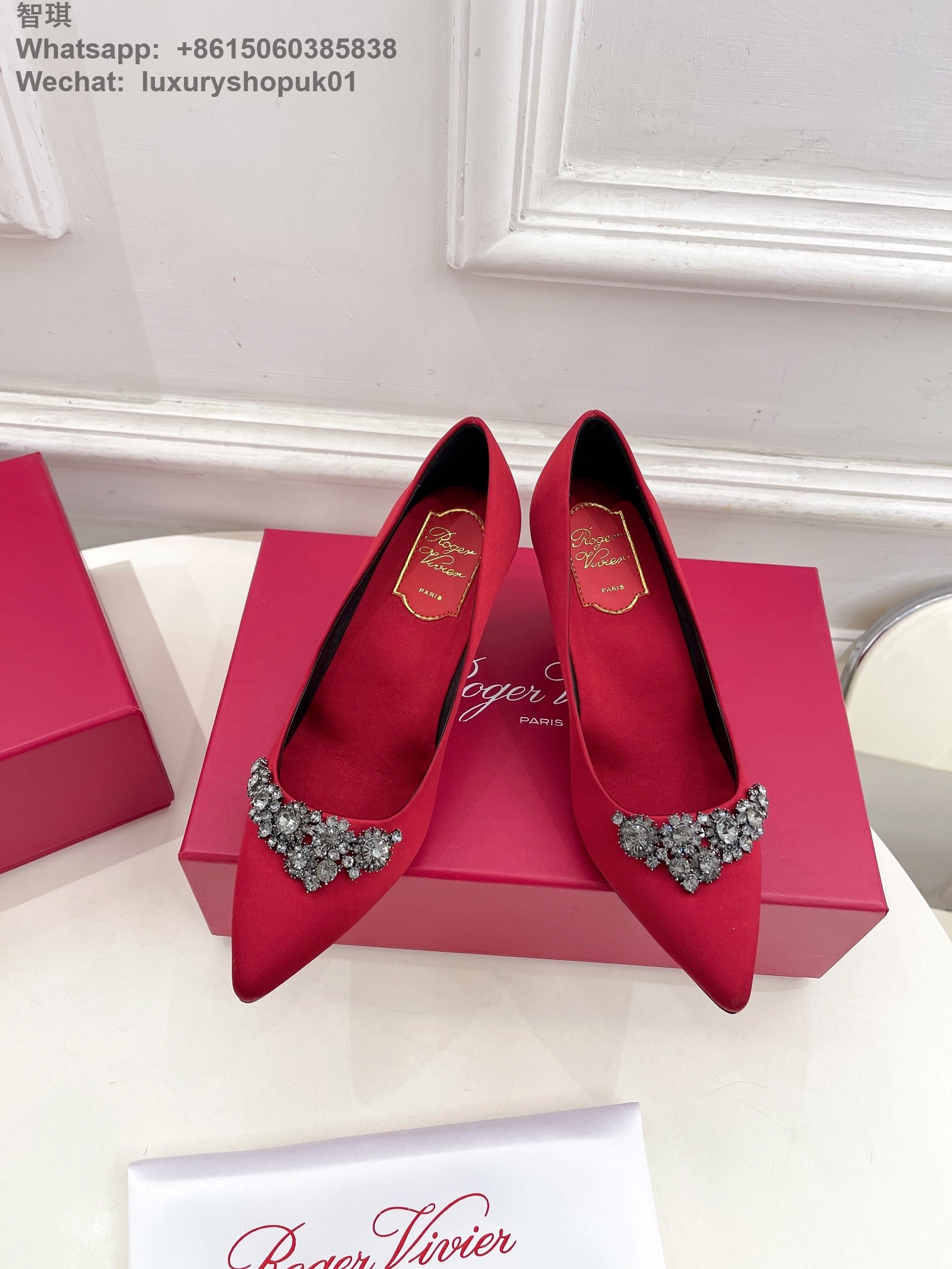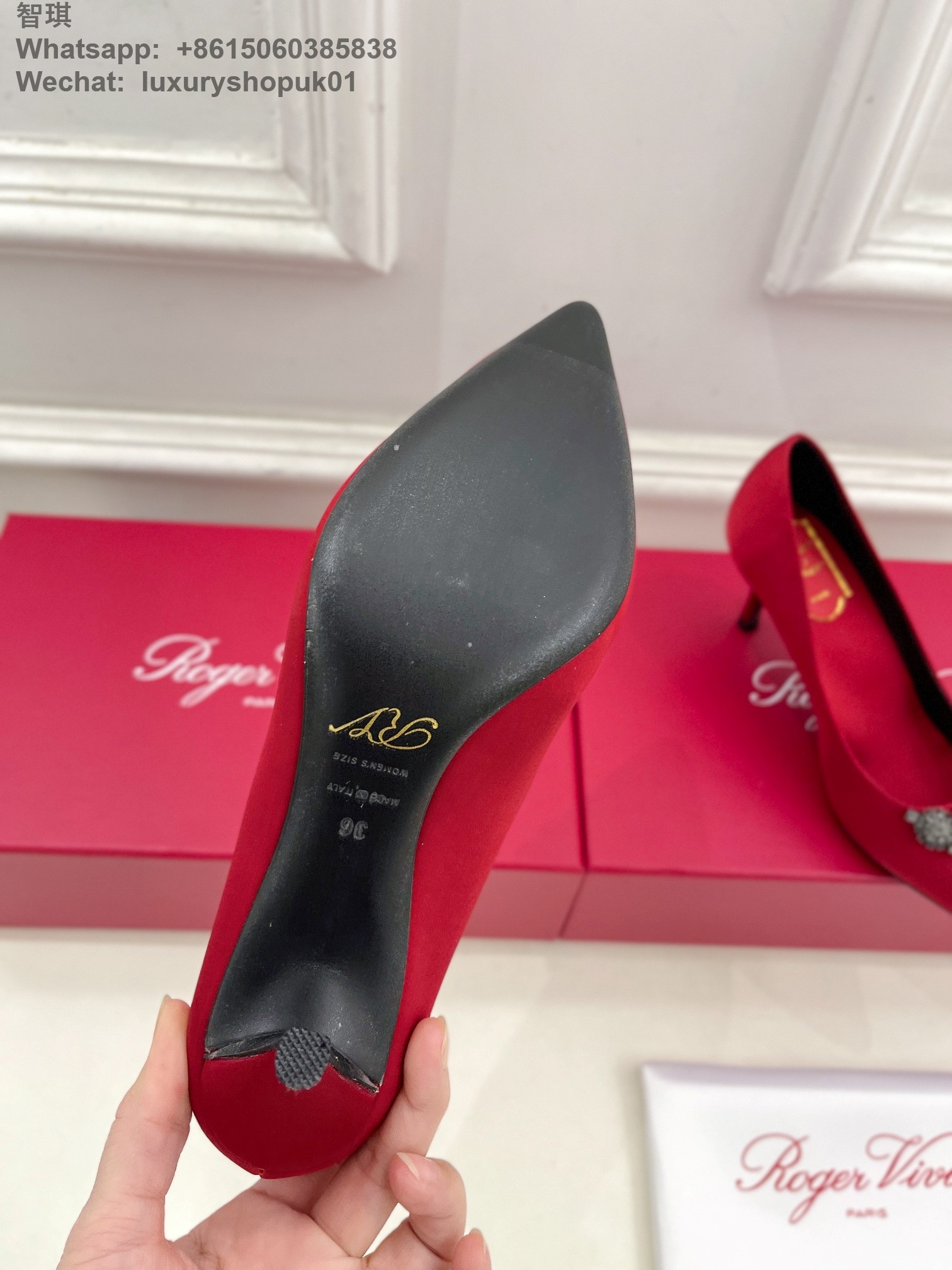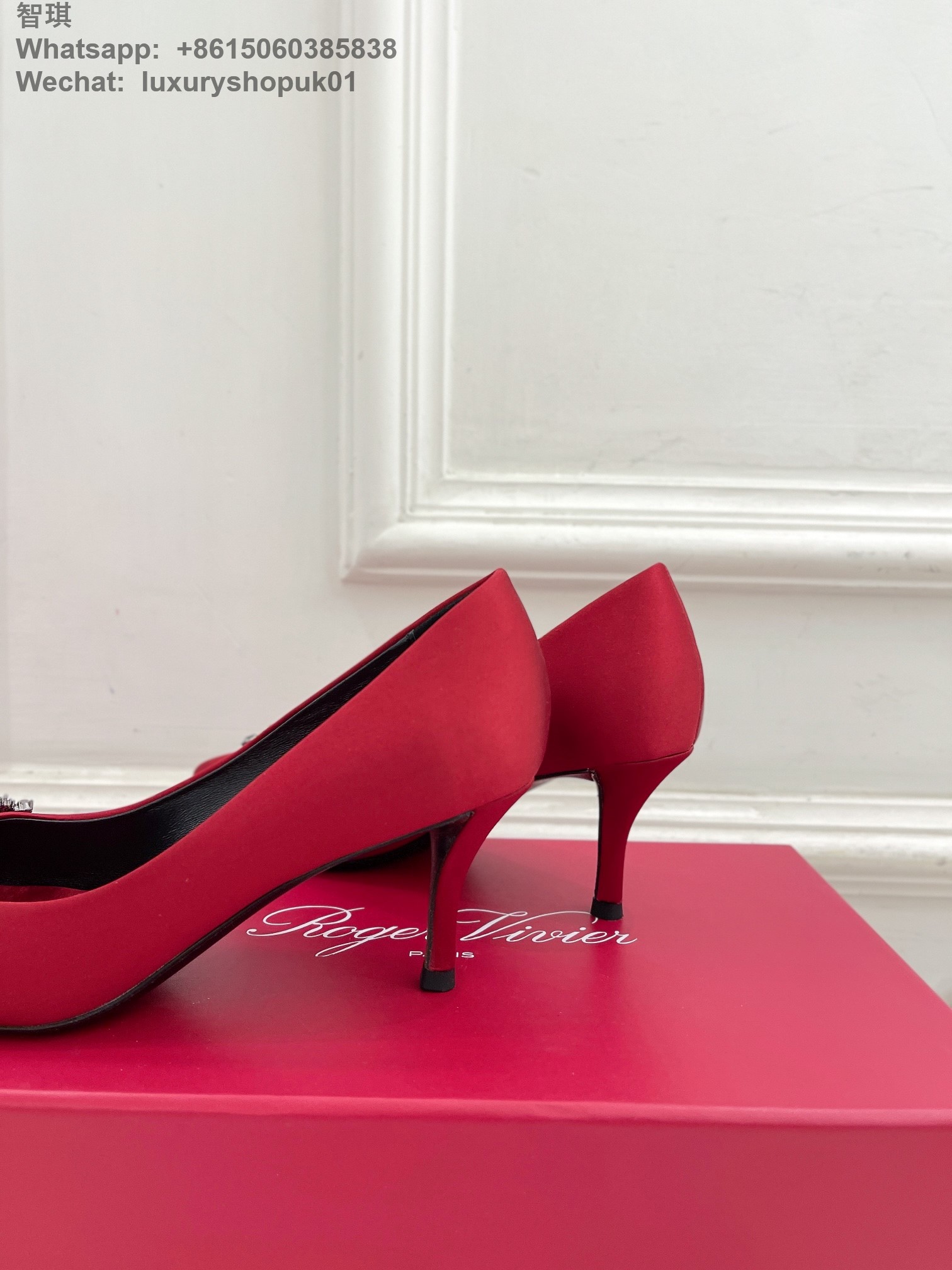Women Roger Vivier Efflorescence Pumps crystal buckle Satin Silk high heel Shoes 6.5cm red