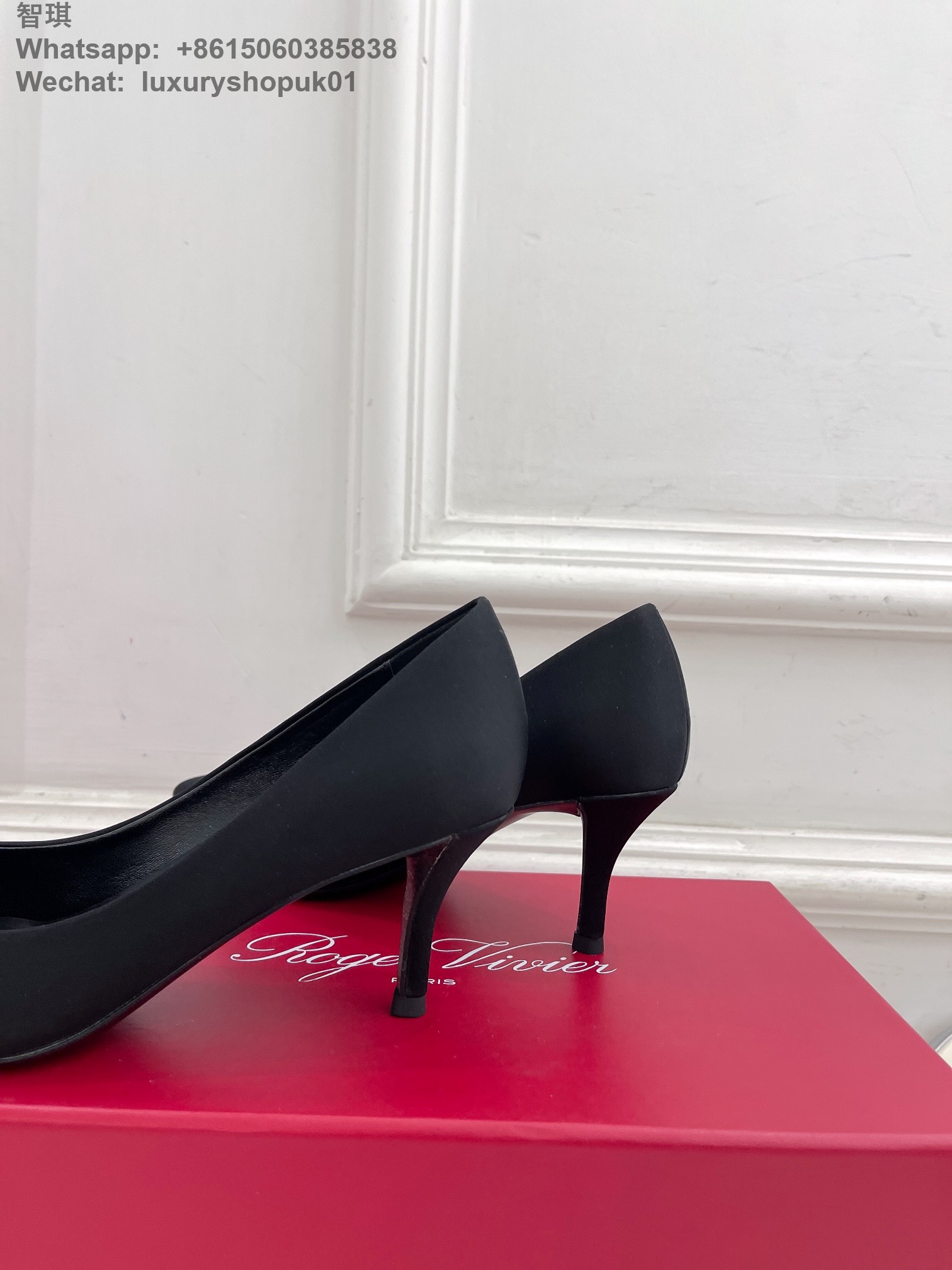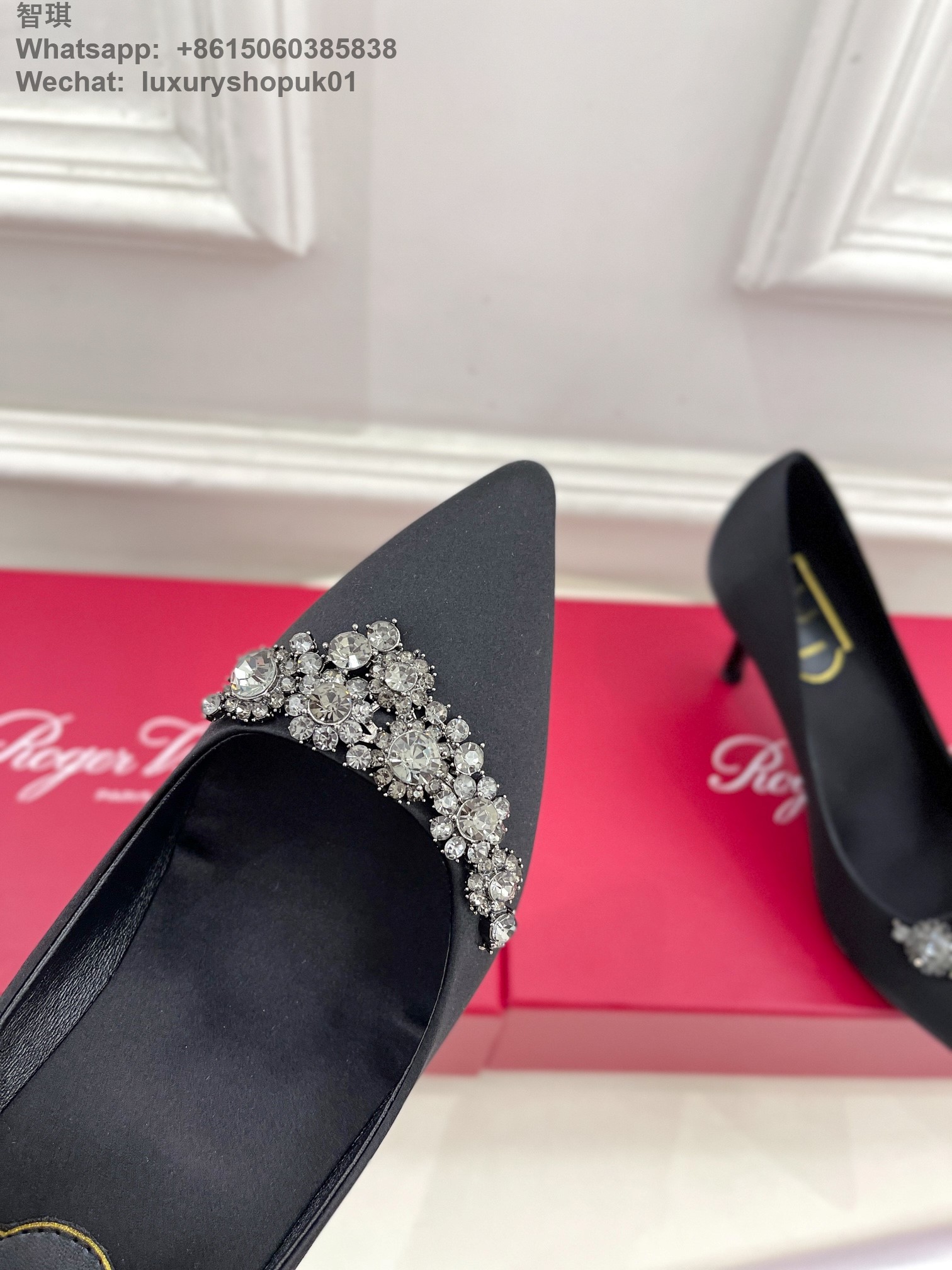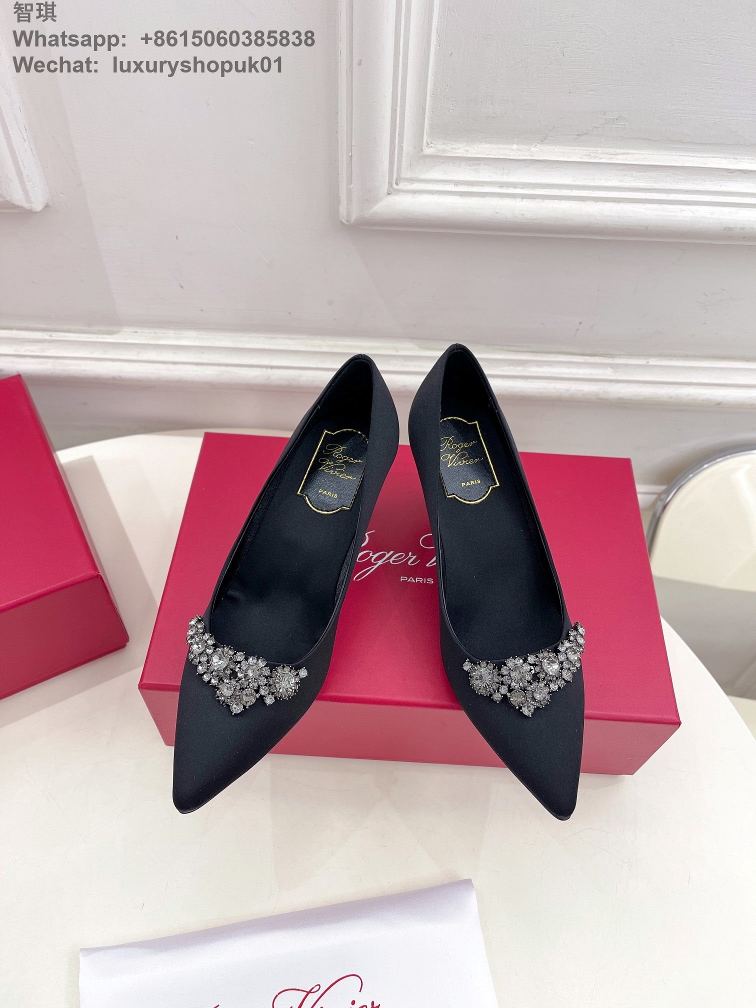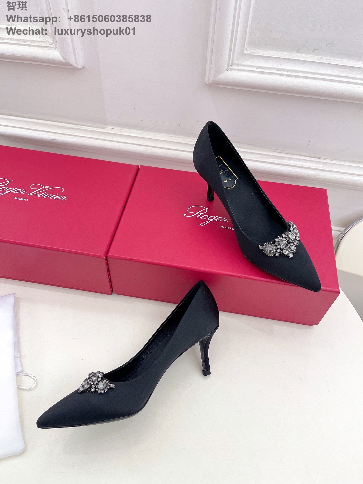Women Roger Vivier Efflorescence Pumps crystal buckle Satin Silk high heel Shoes 6.5cm