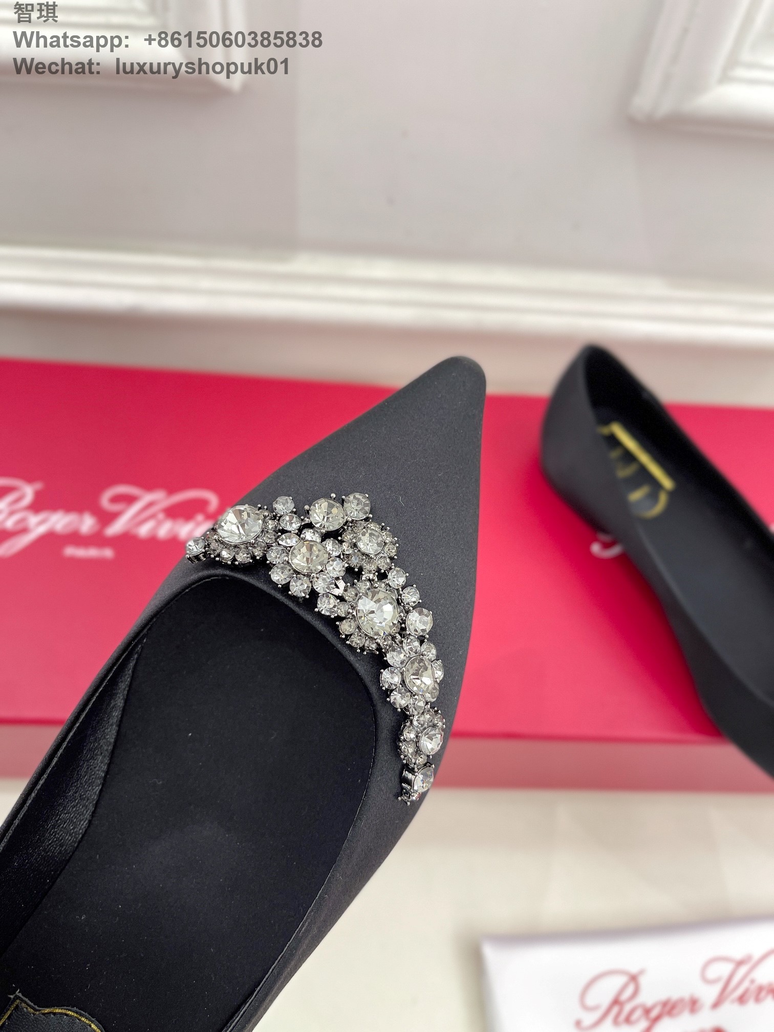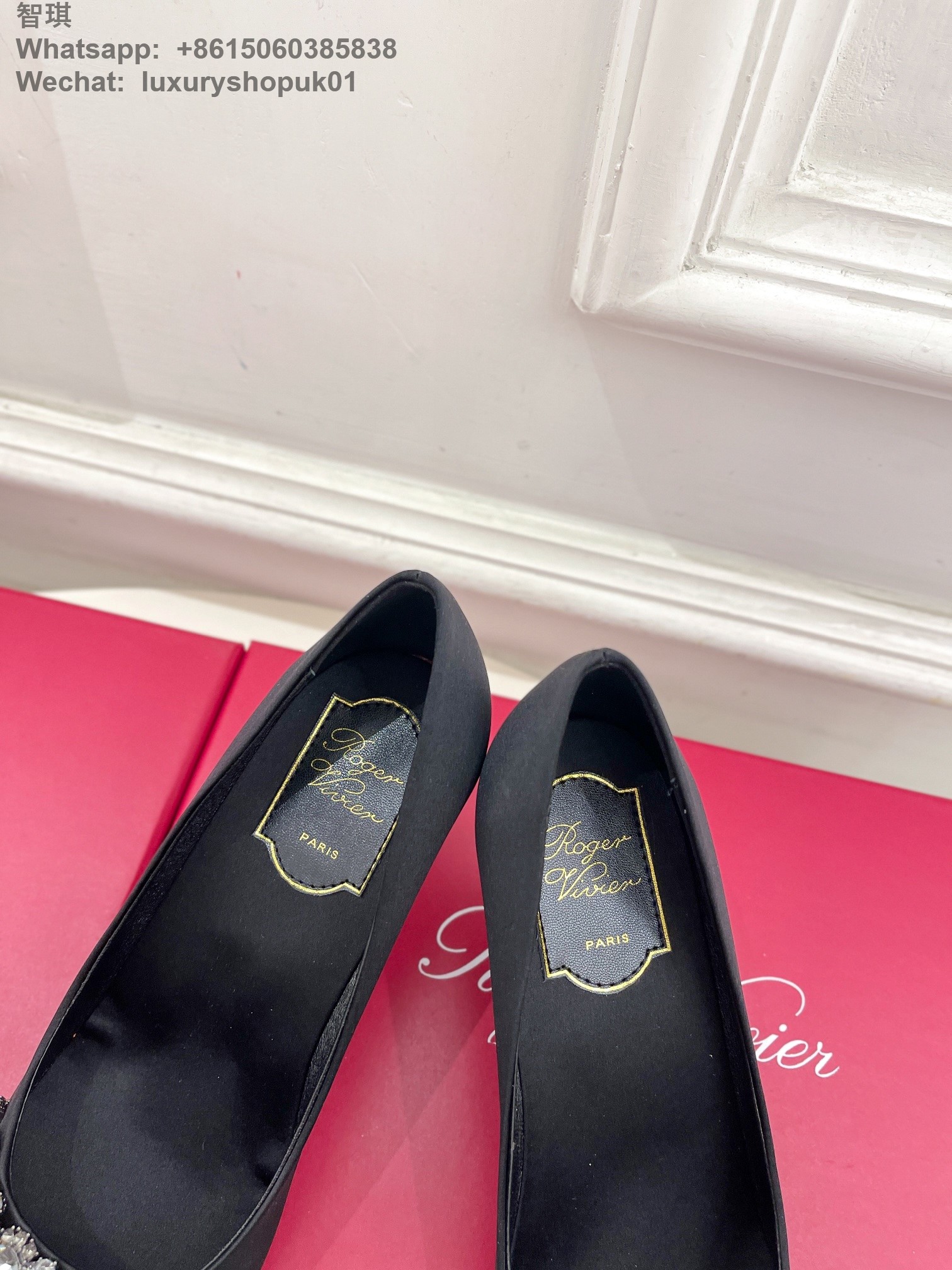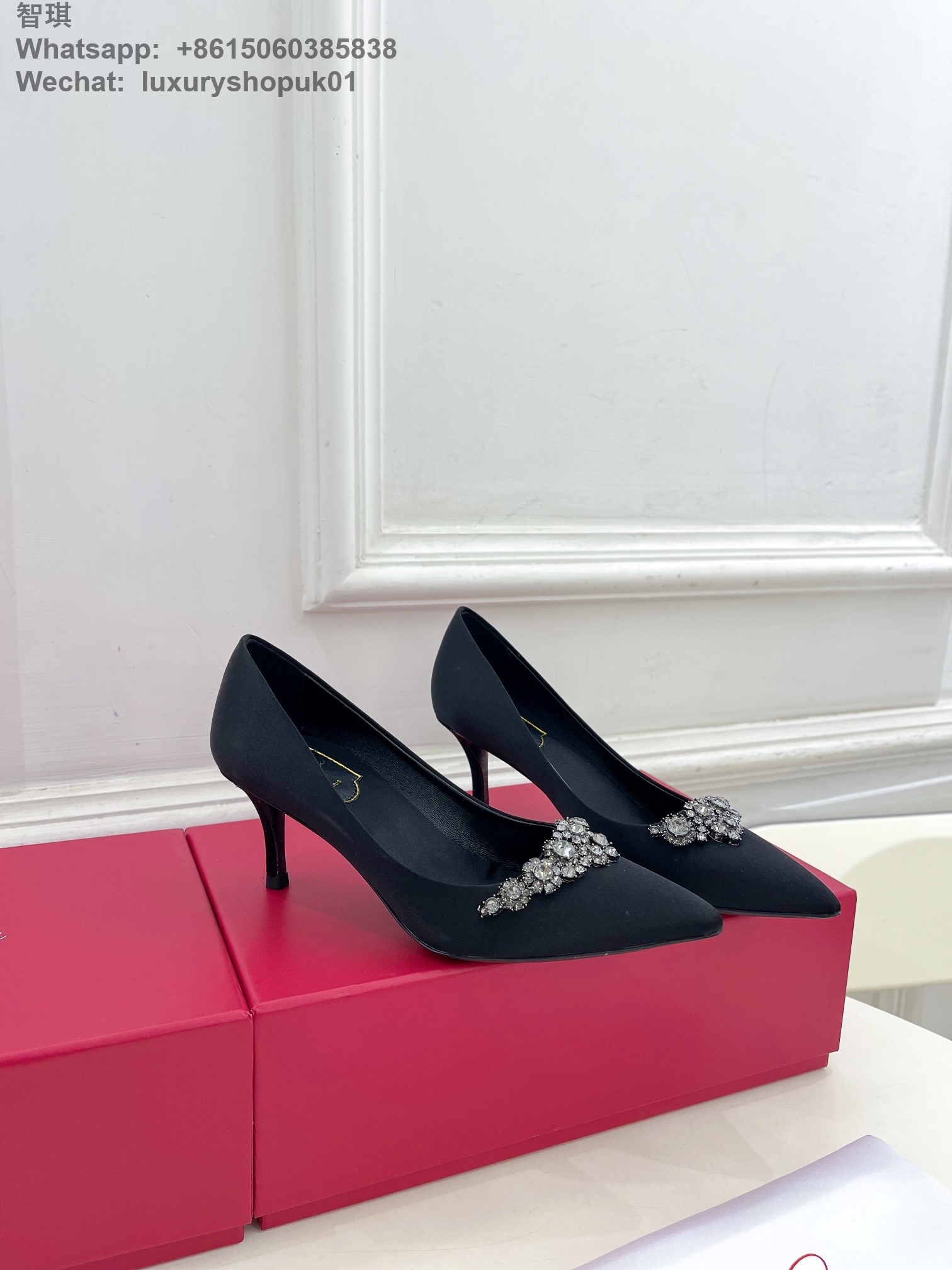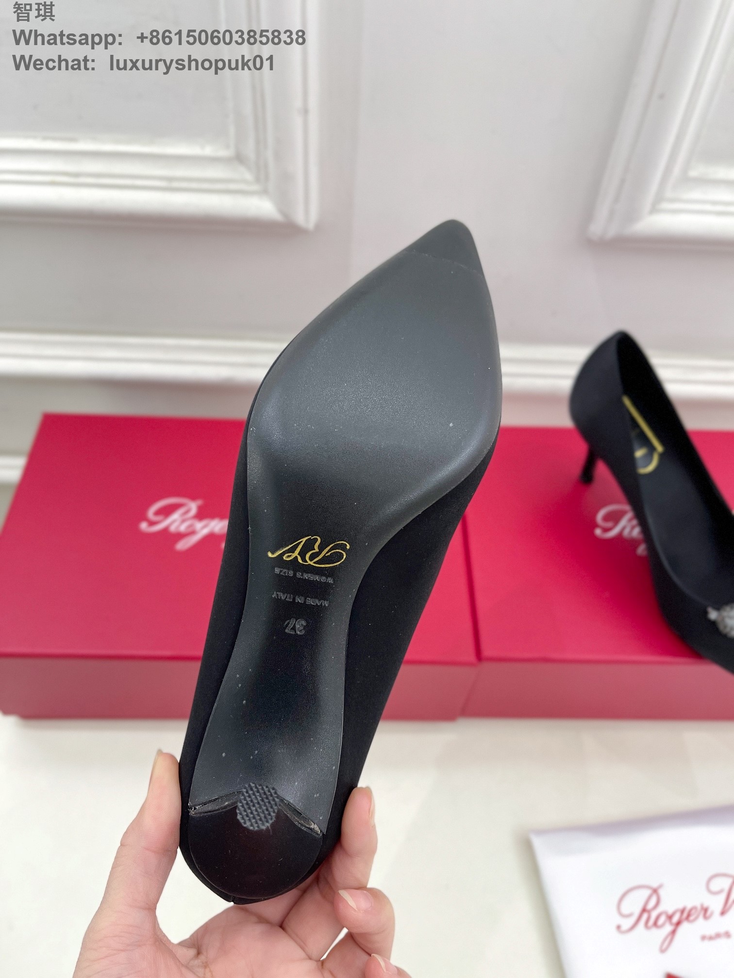 Women Roger Vivier Efflorescence Pumps crystal buckle Satin Silk high heel Shoes 6.5cm