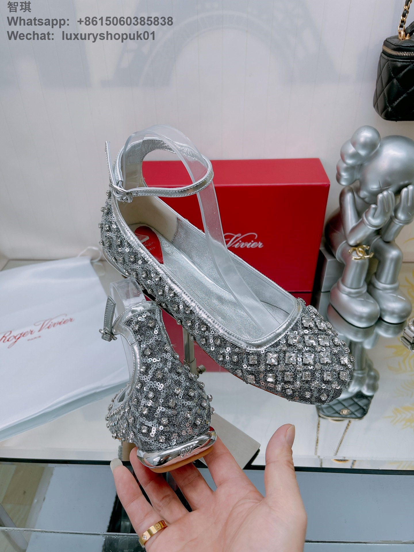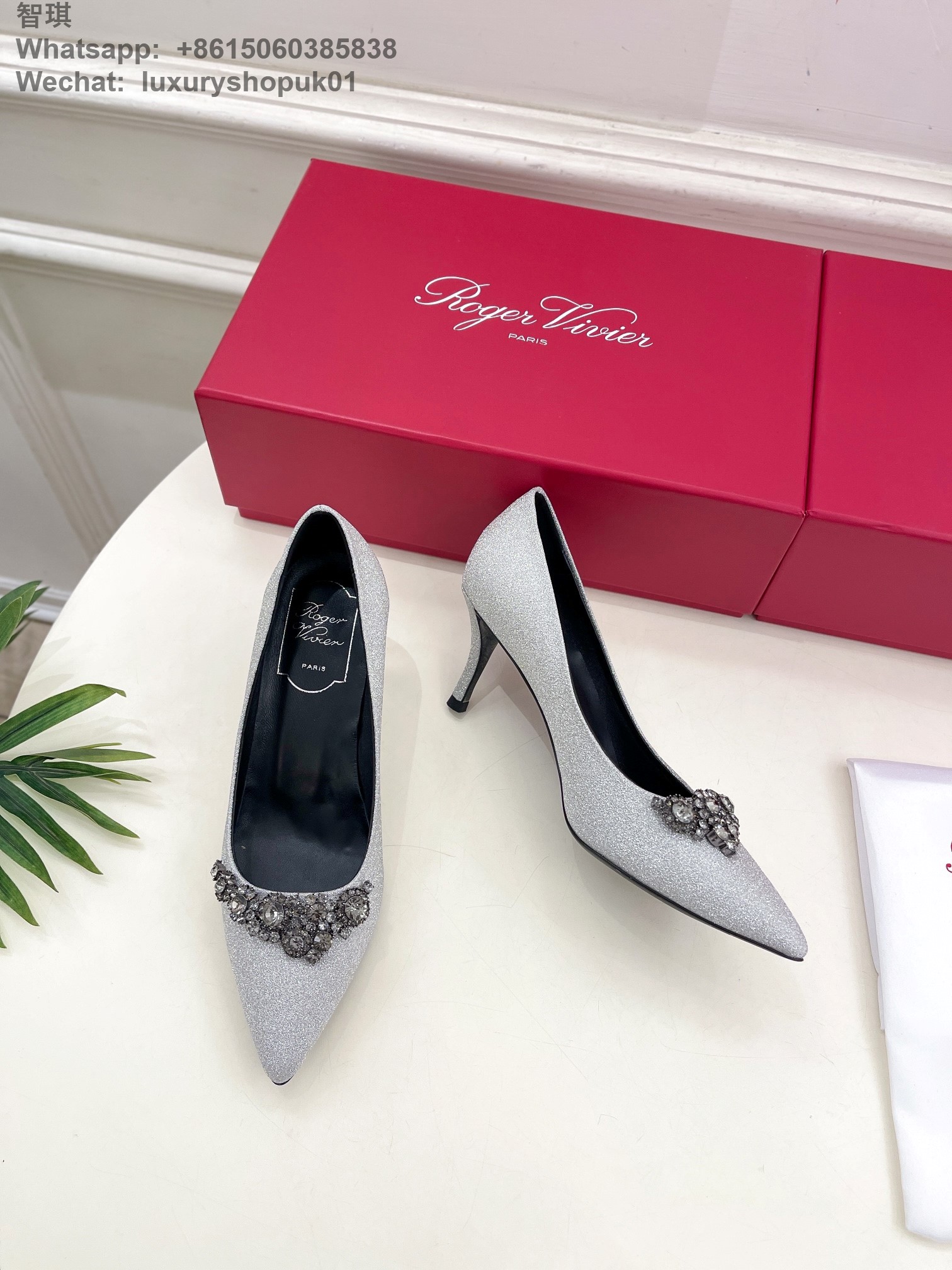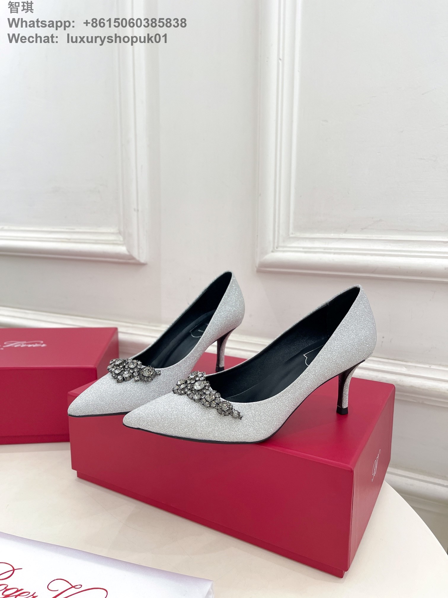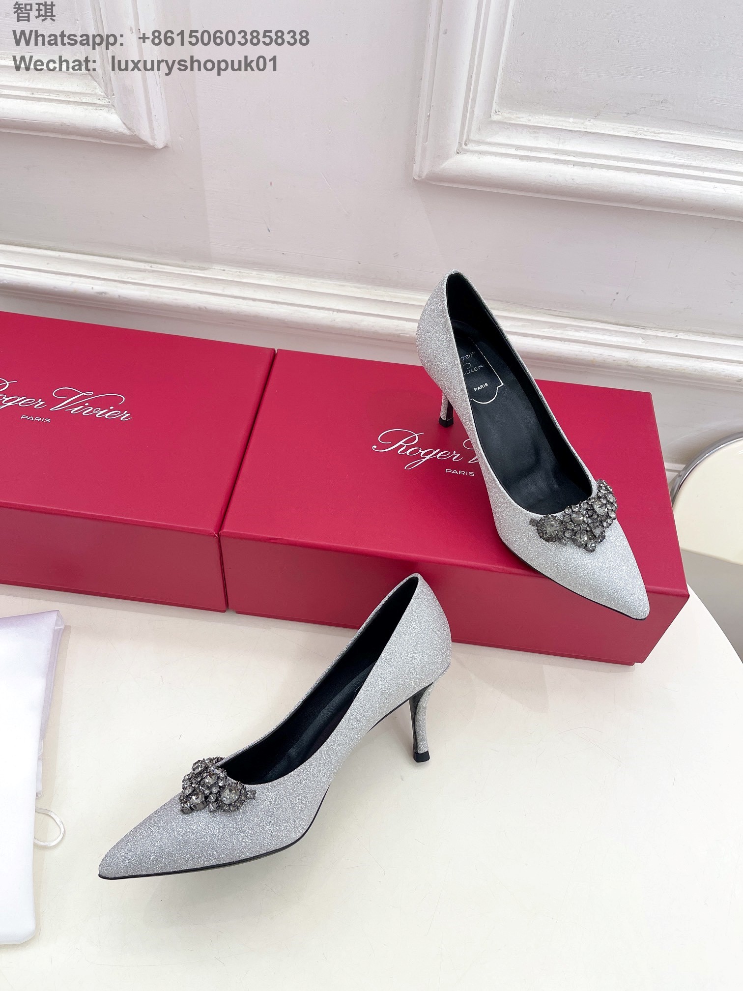 Women Roger Vivier Efflorescence Pumps crystal buckle glitter high heel Shoes 6.5cm