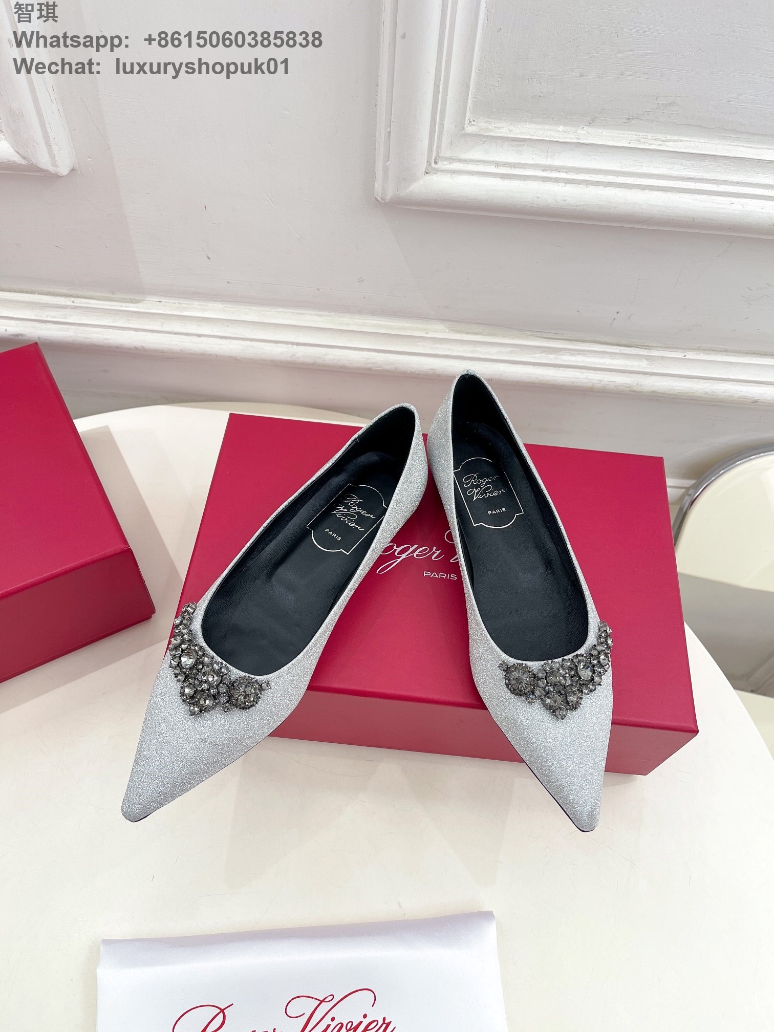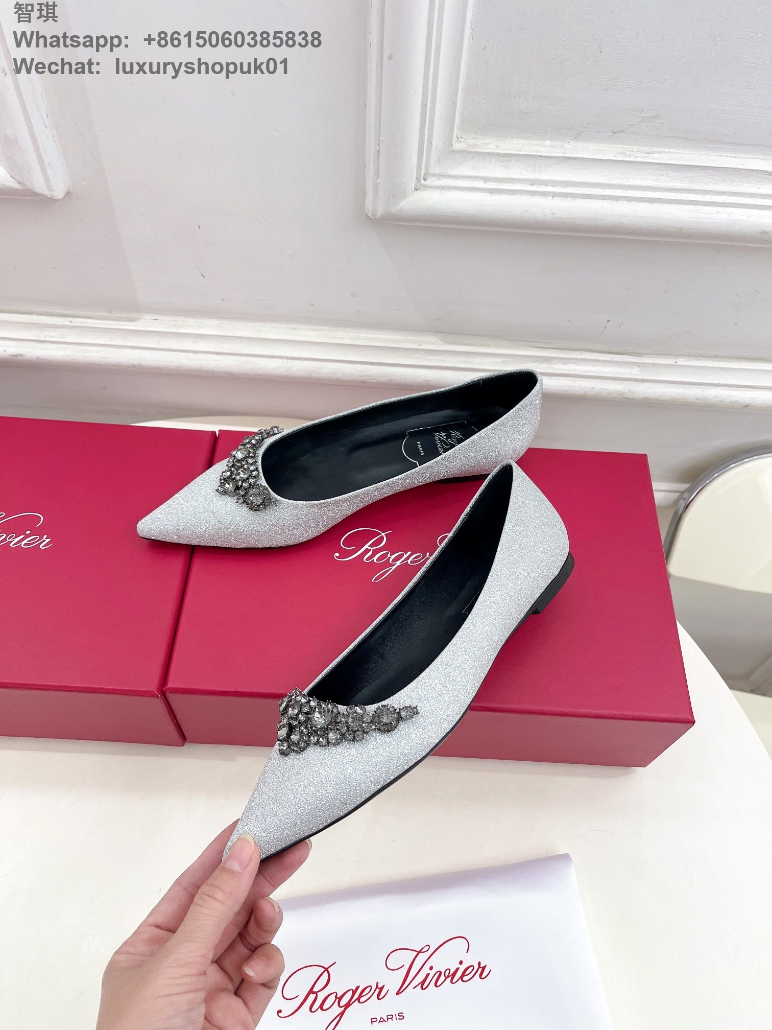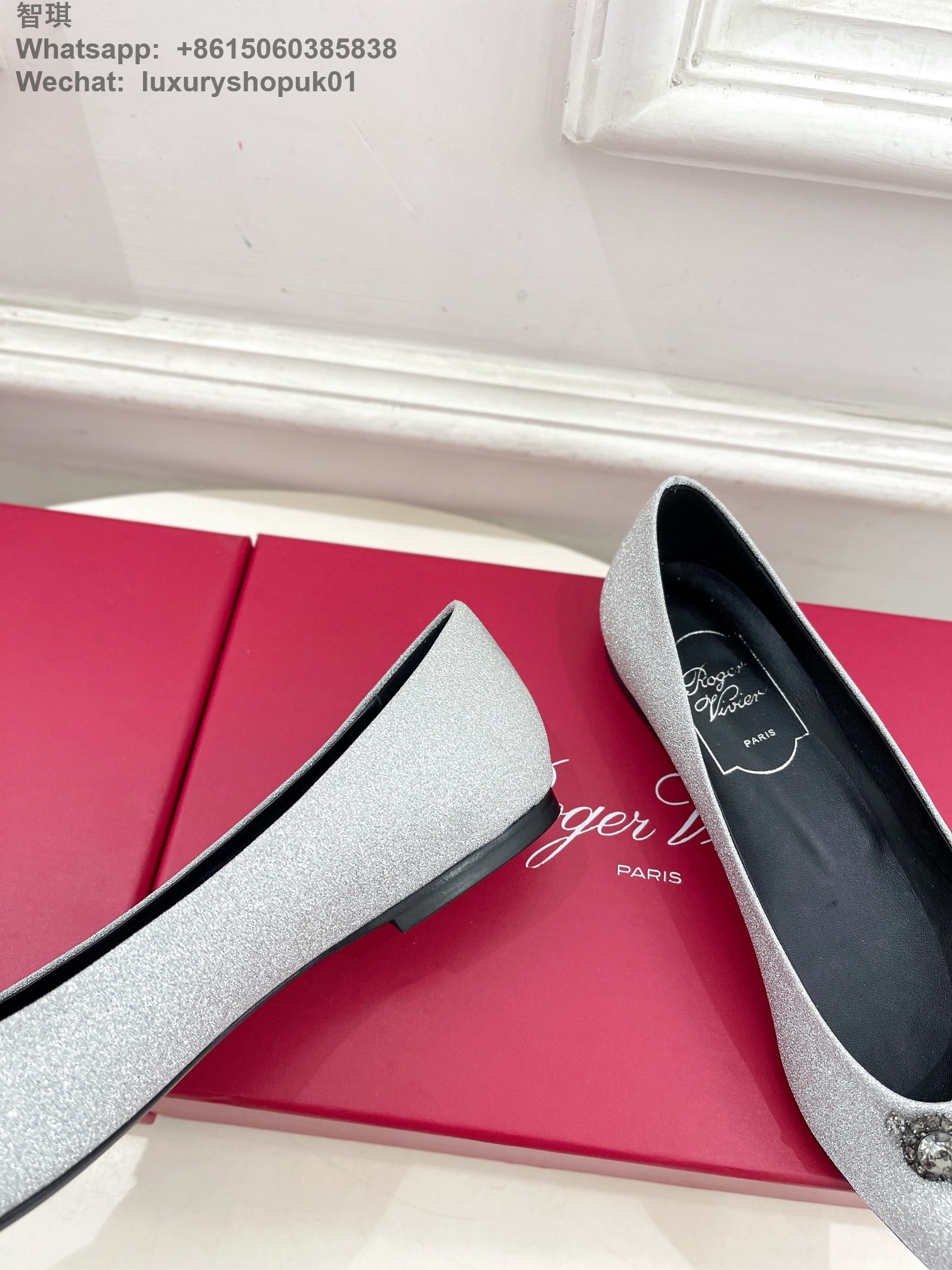 Women Roger Vivier Efflorescence crystal buckle glitter Shoes Ballet Flats