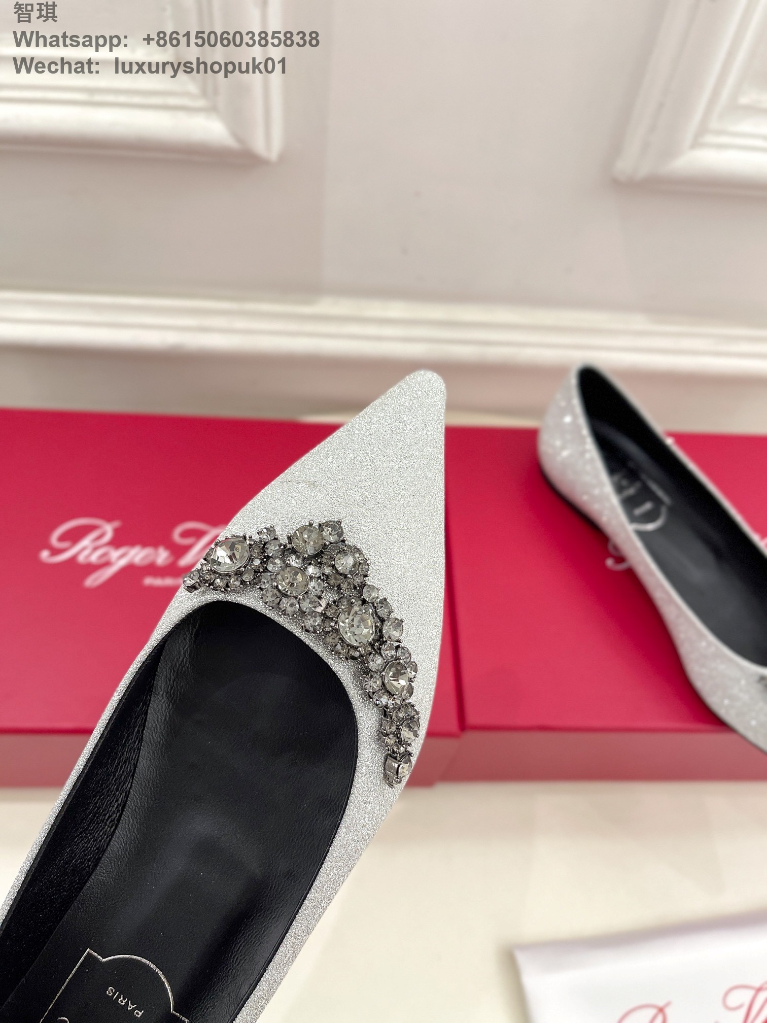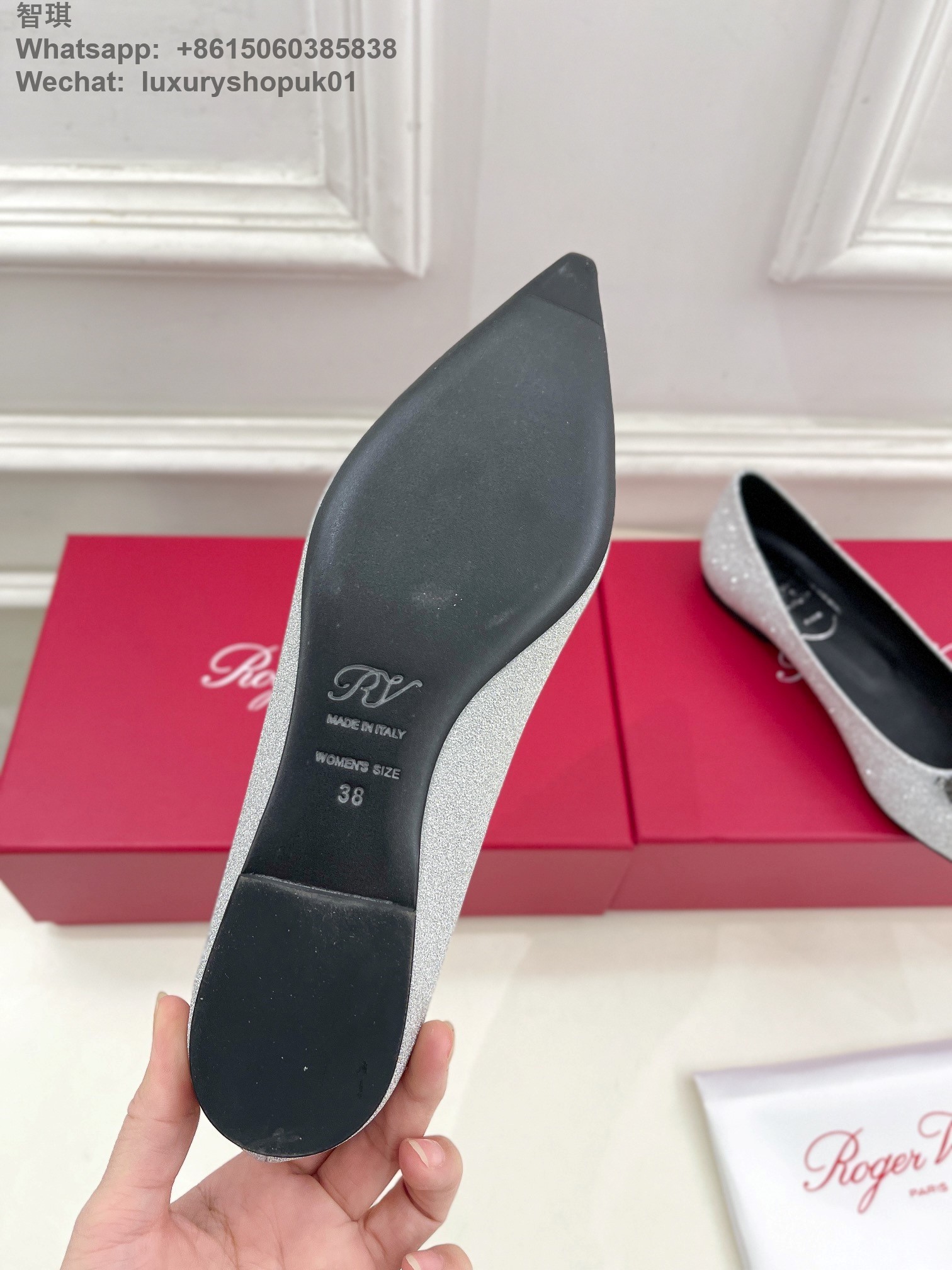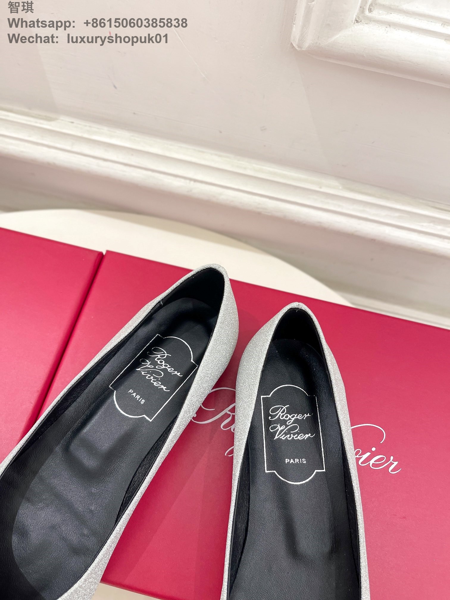 Women Roger Vivier Efflorescence crystal buckle glitter Shoes Ballet Flats