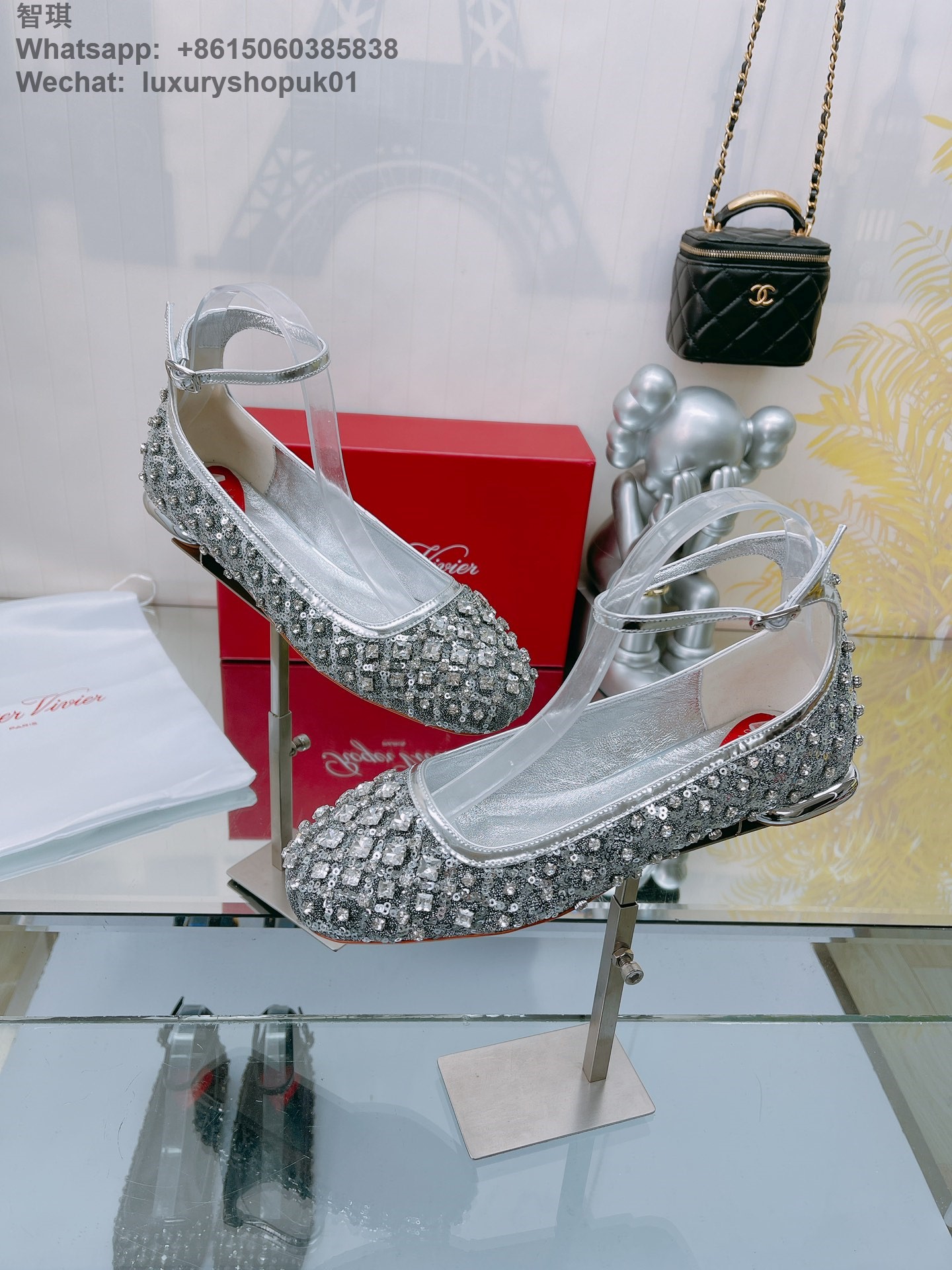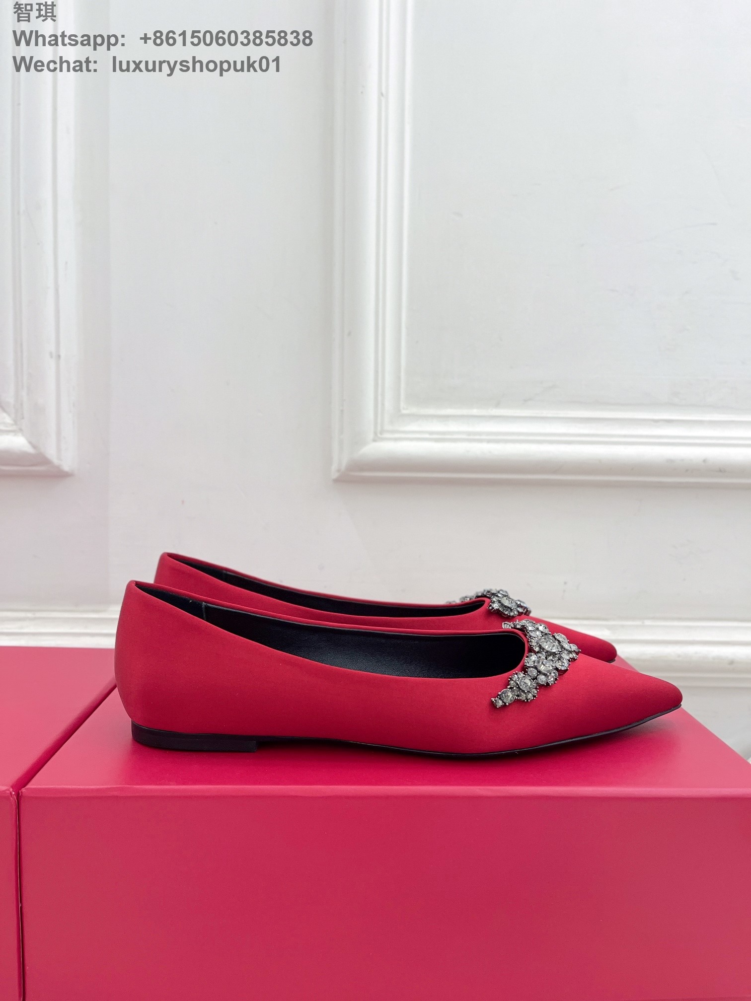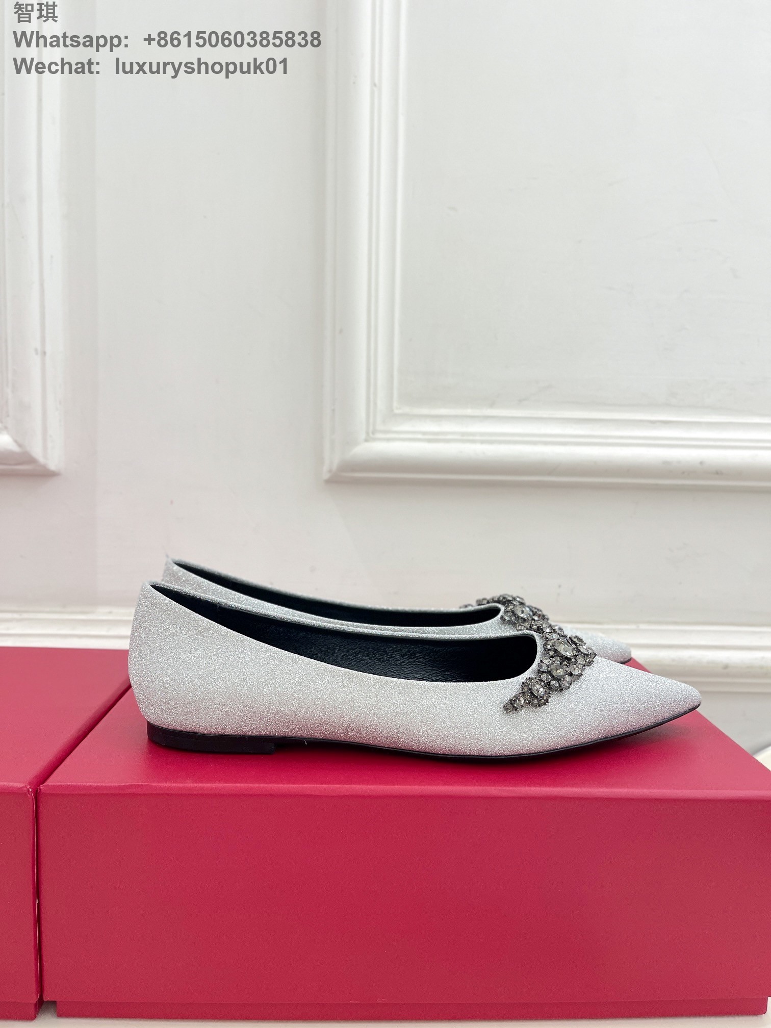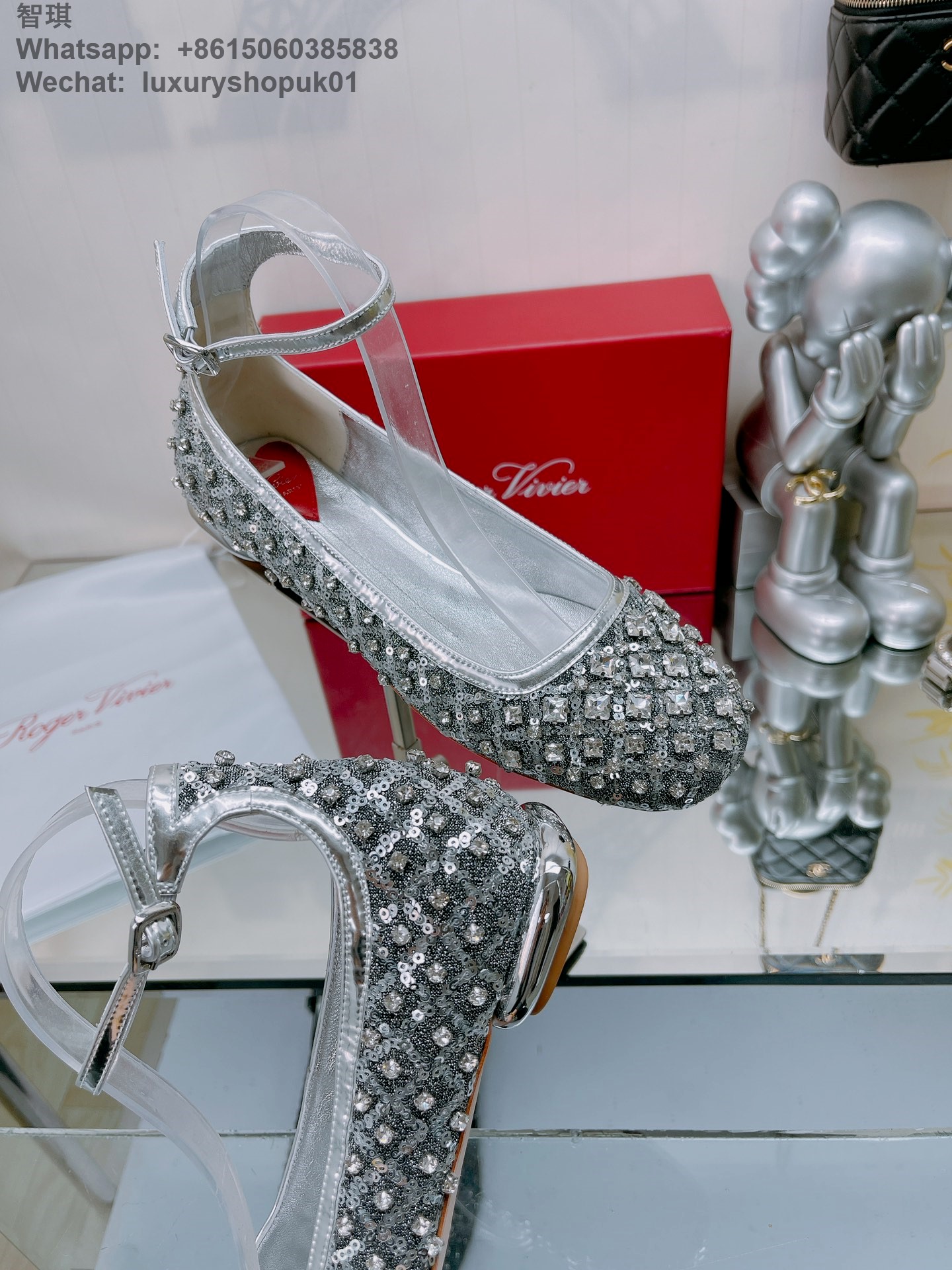 Women Roger Vivier sequin crystal buckle Ankle strap Ballet Flats Shoes