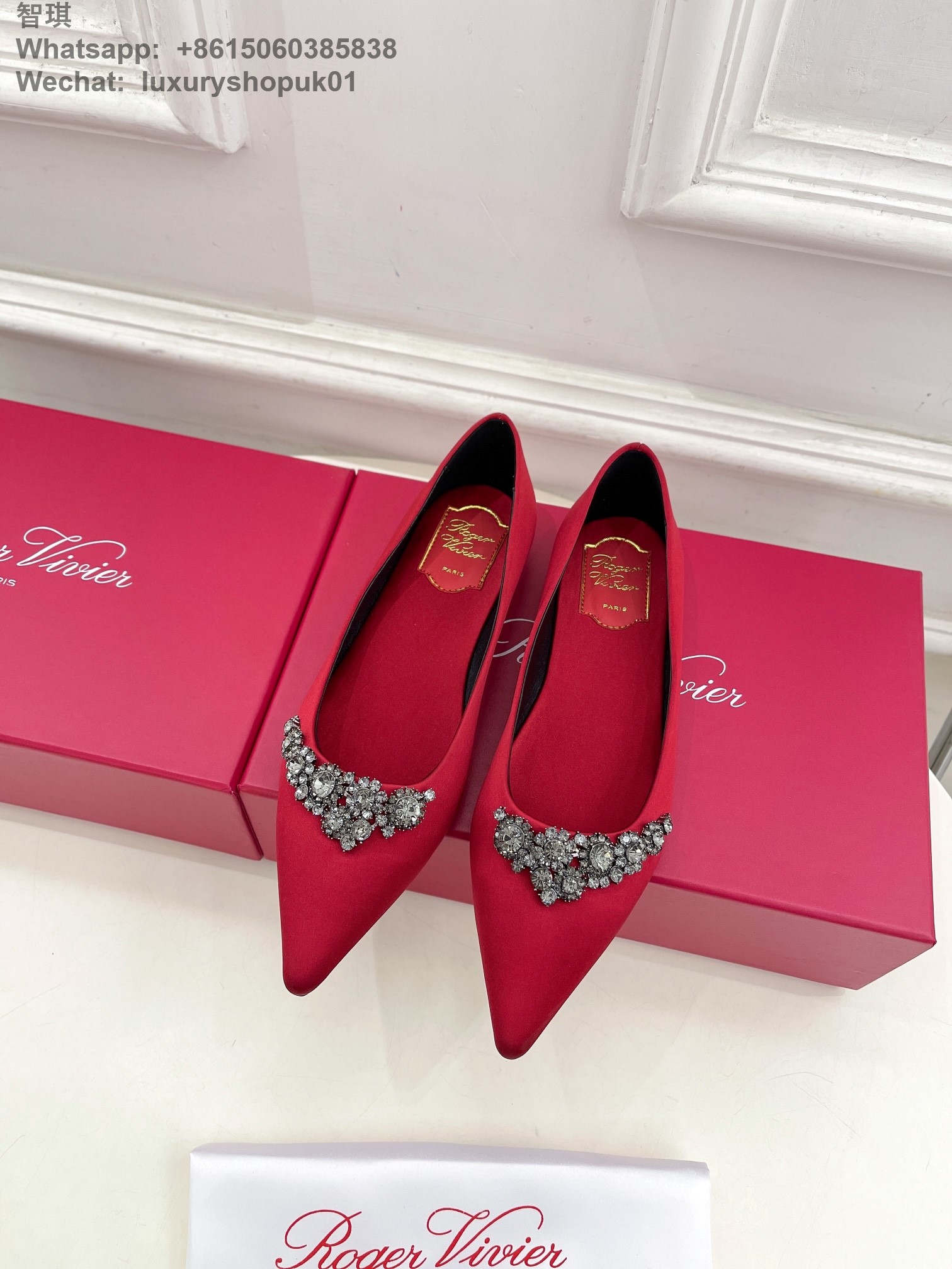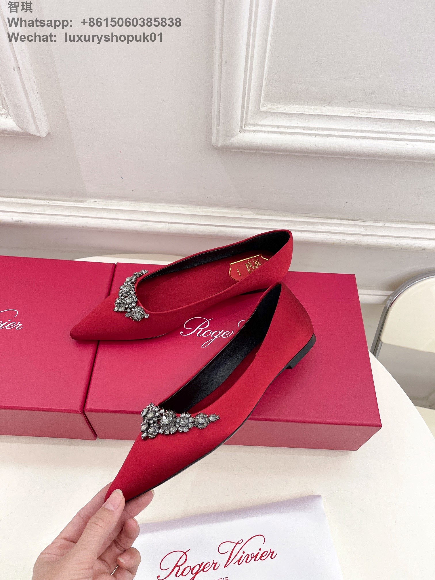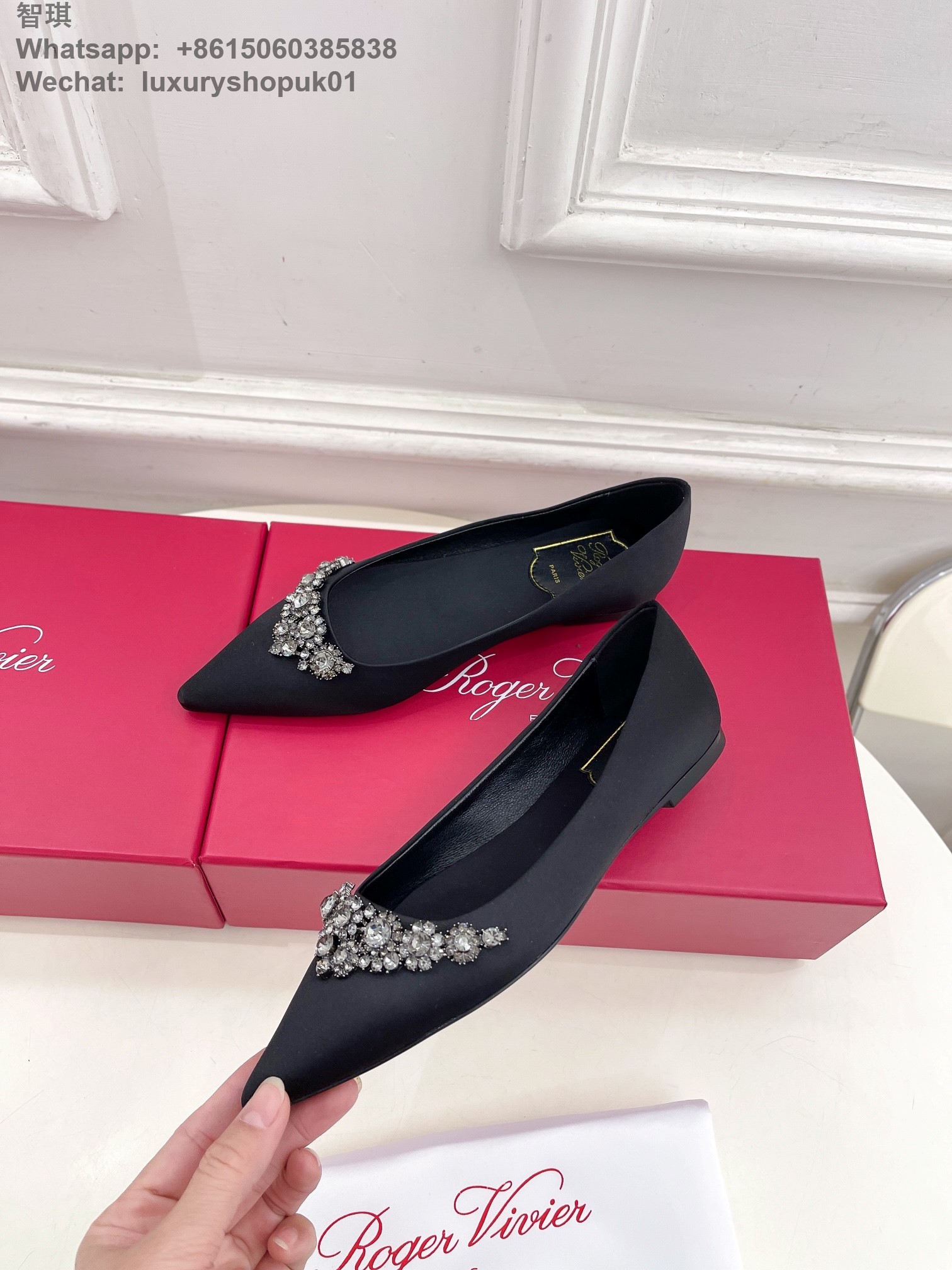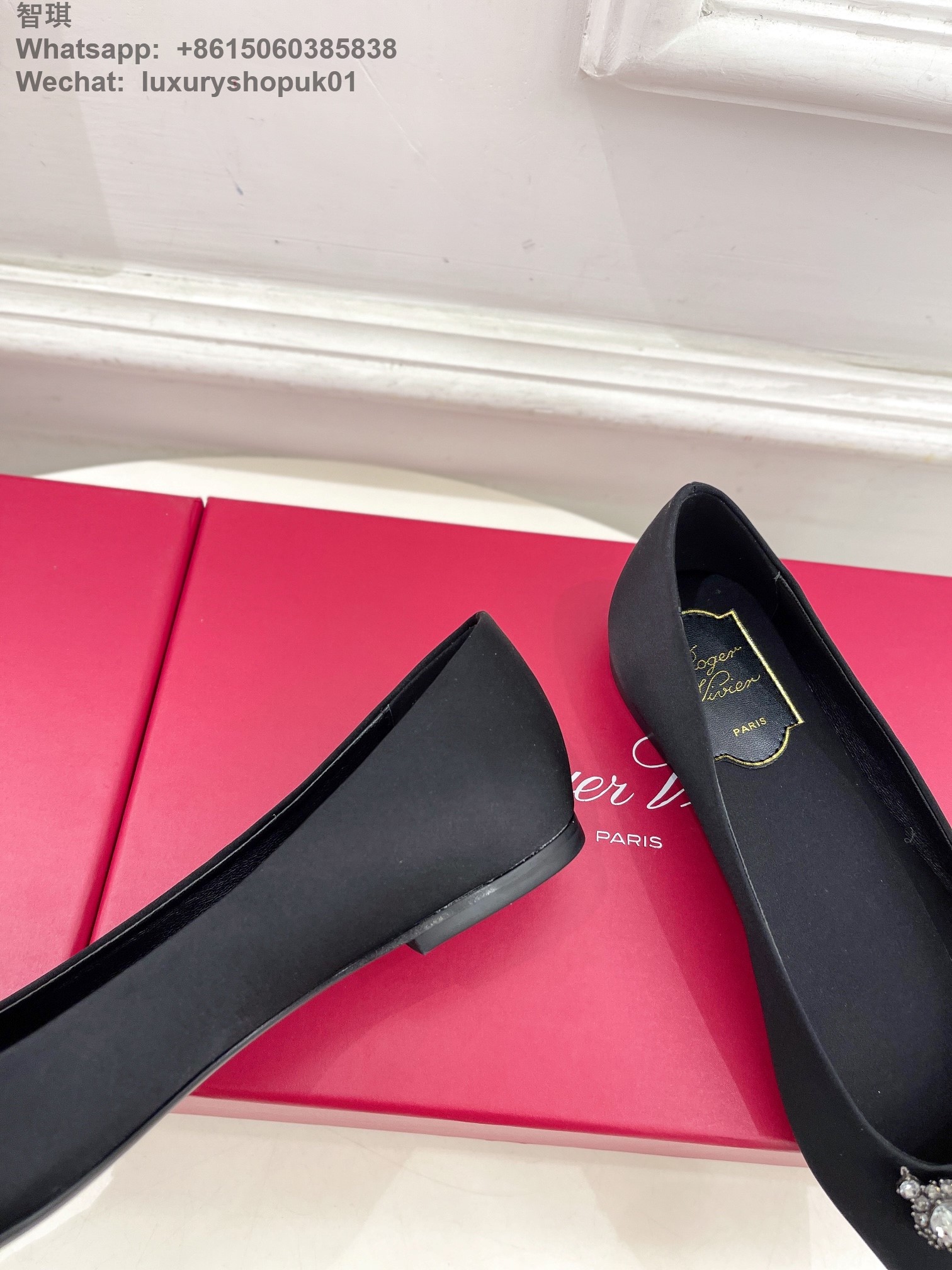 Women Roger Vivier Efflorescence crystal buckle satin silk Shoes Ballet Flats