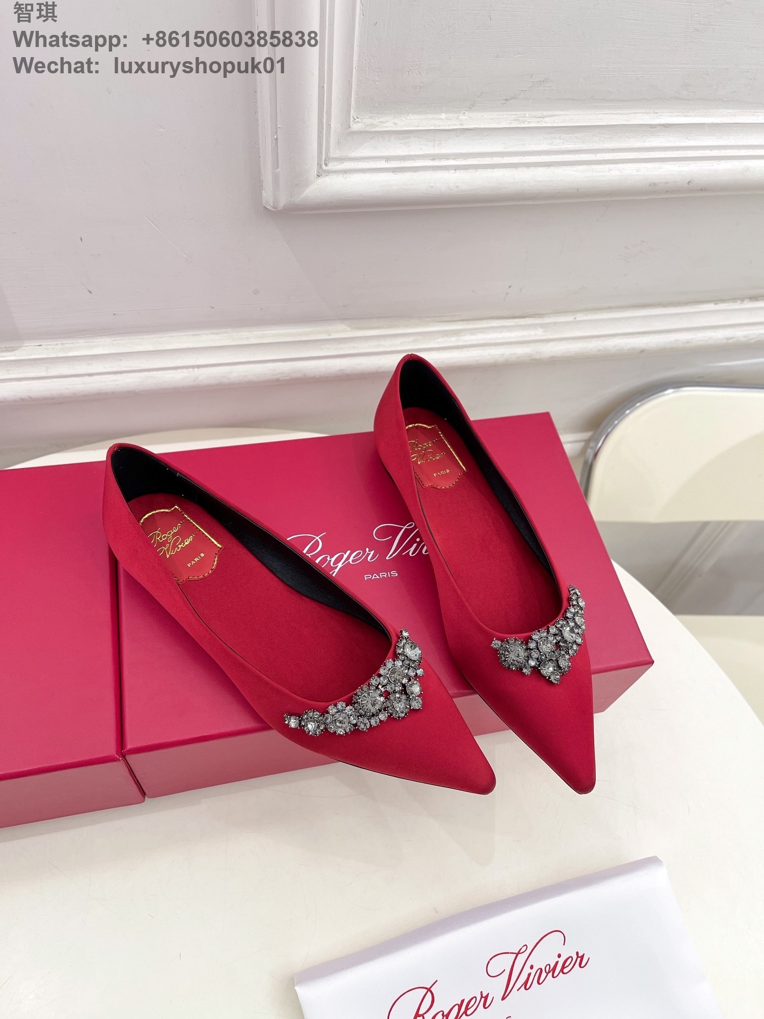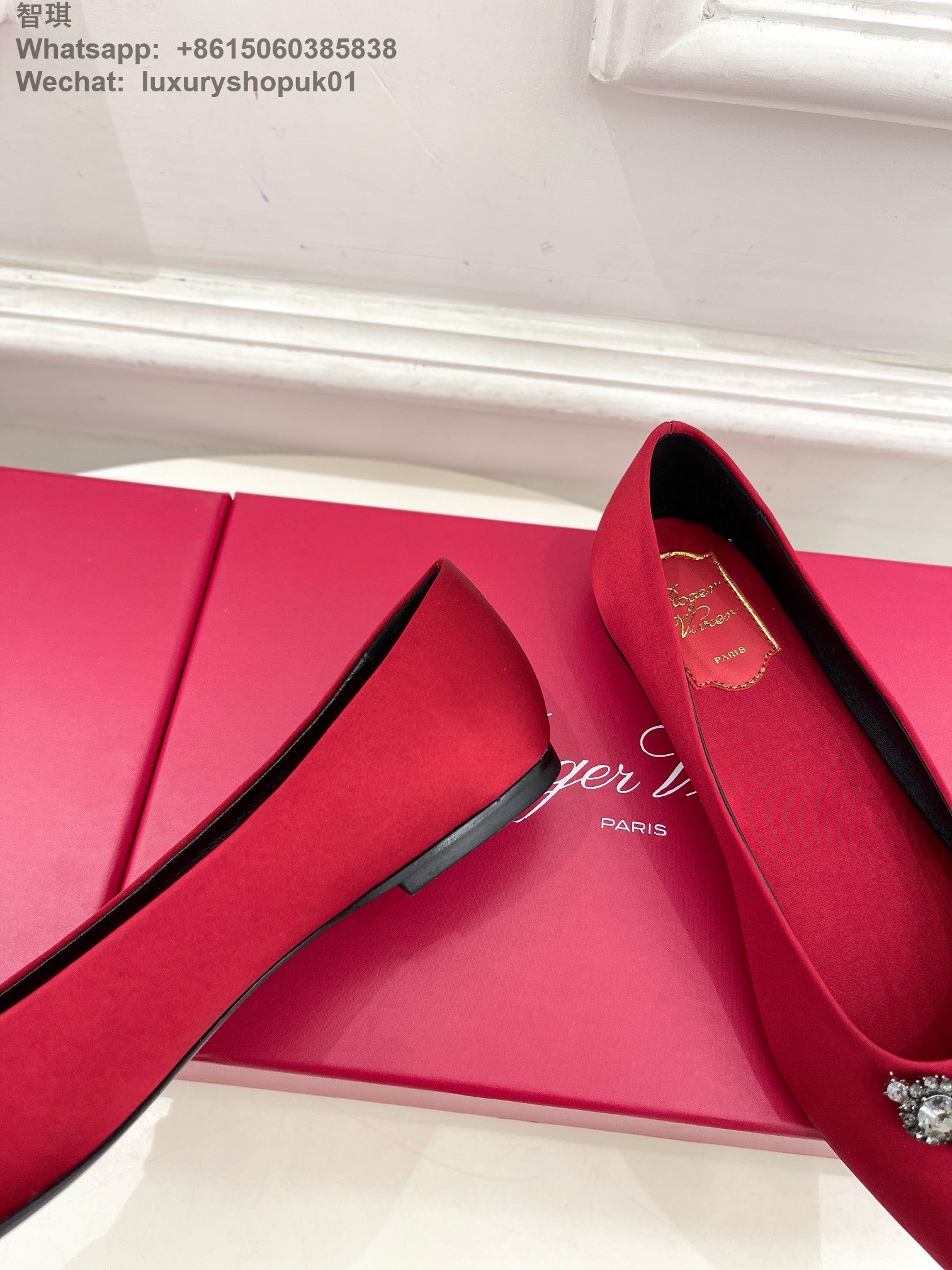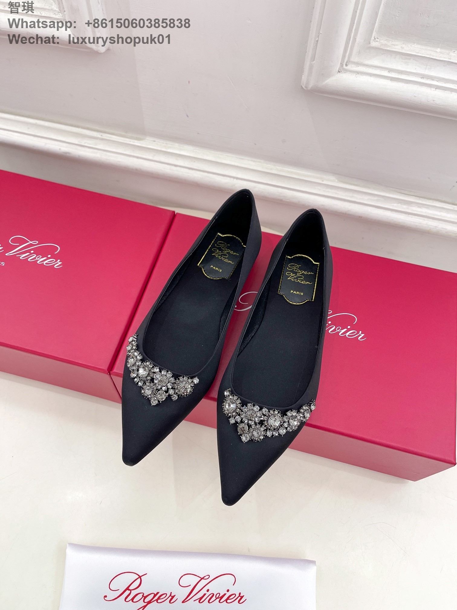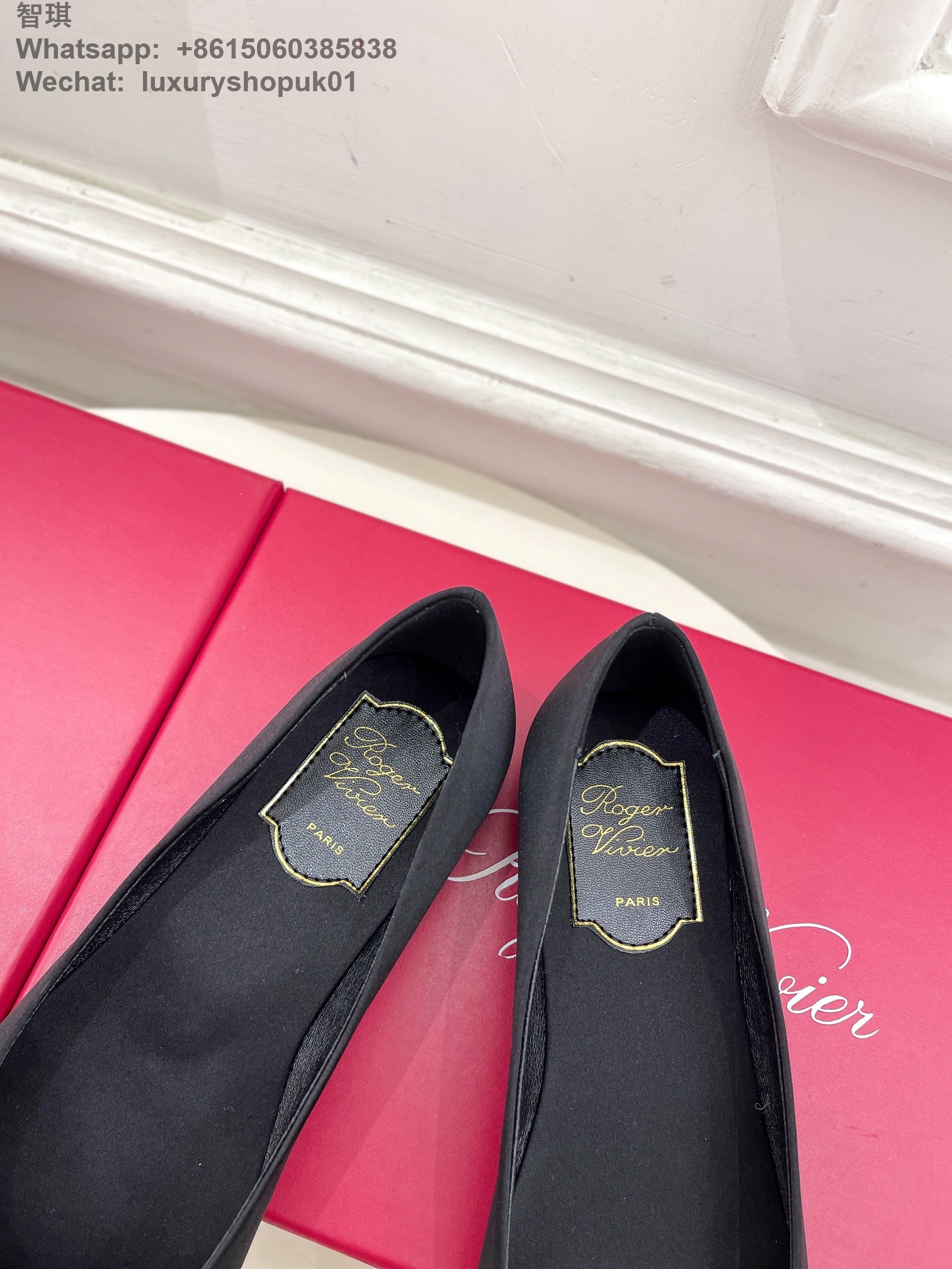 Women Roger Vivier Efflorescence crystal buckle satin silk Shoes Ballet Flats