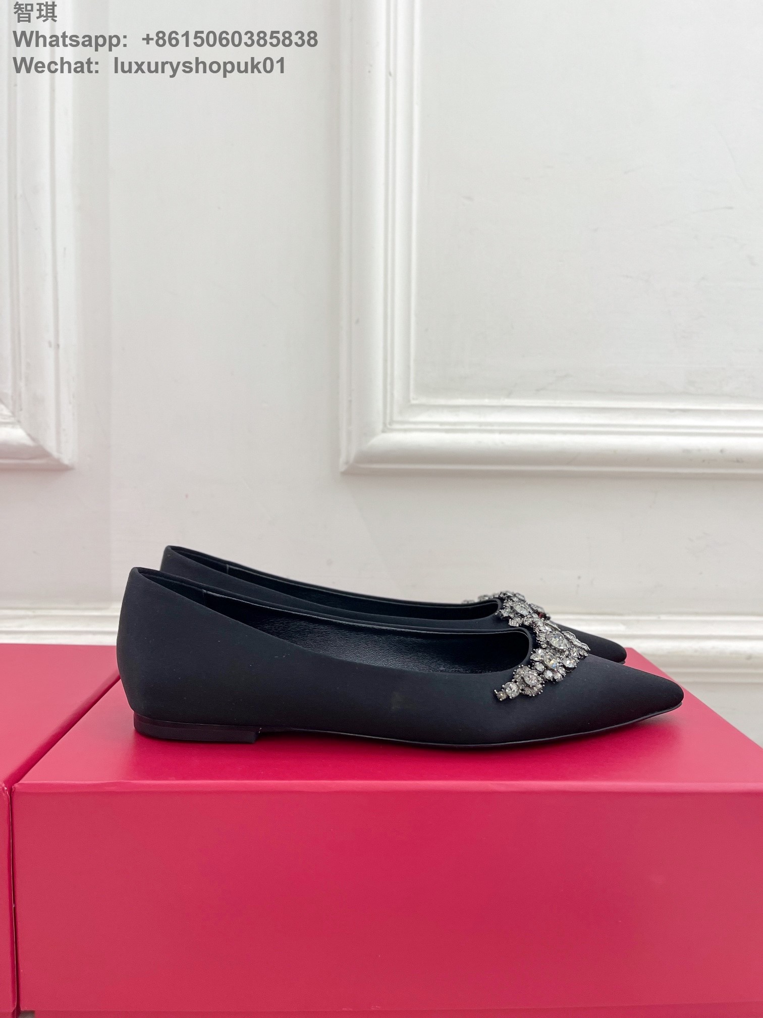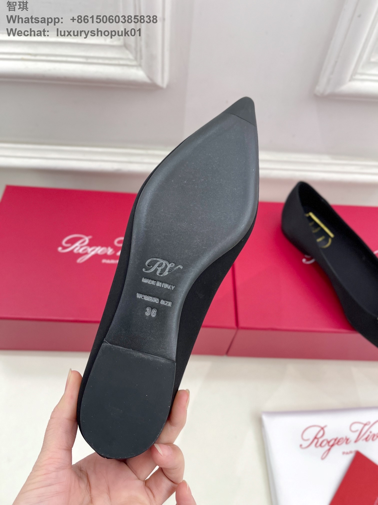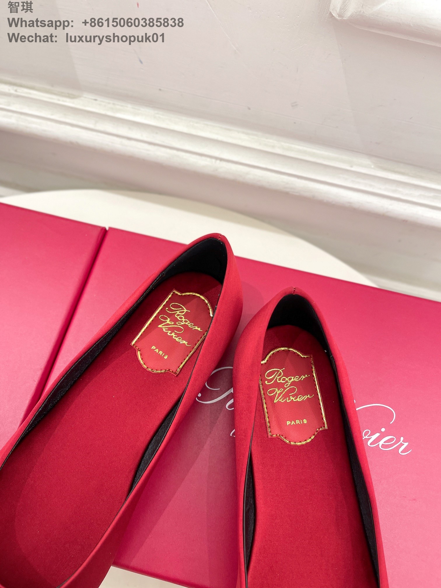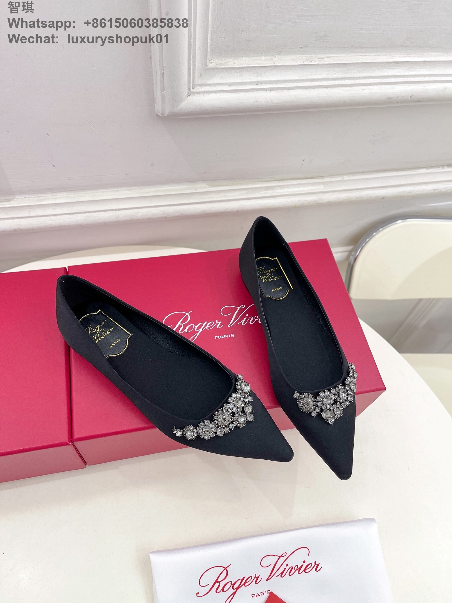 Women Roger Vivier Efflorescence crystal buckle satin silk Shoes Ballet Flats