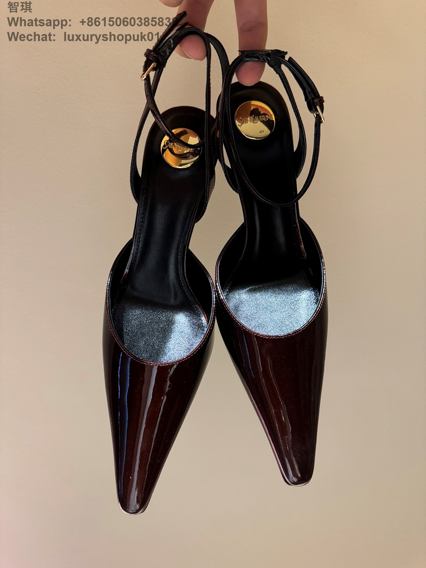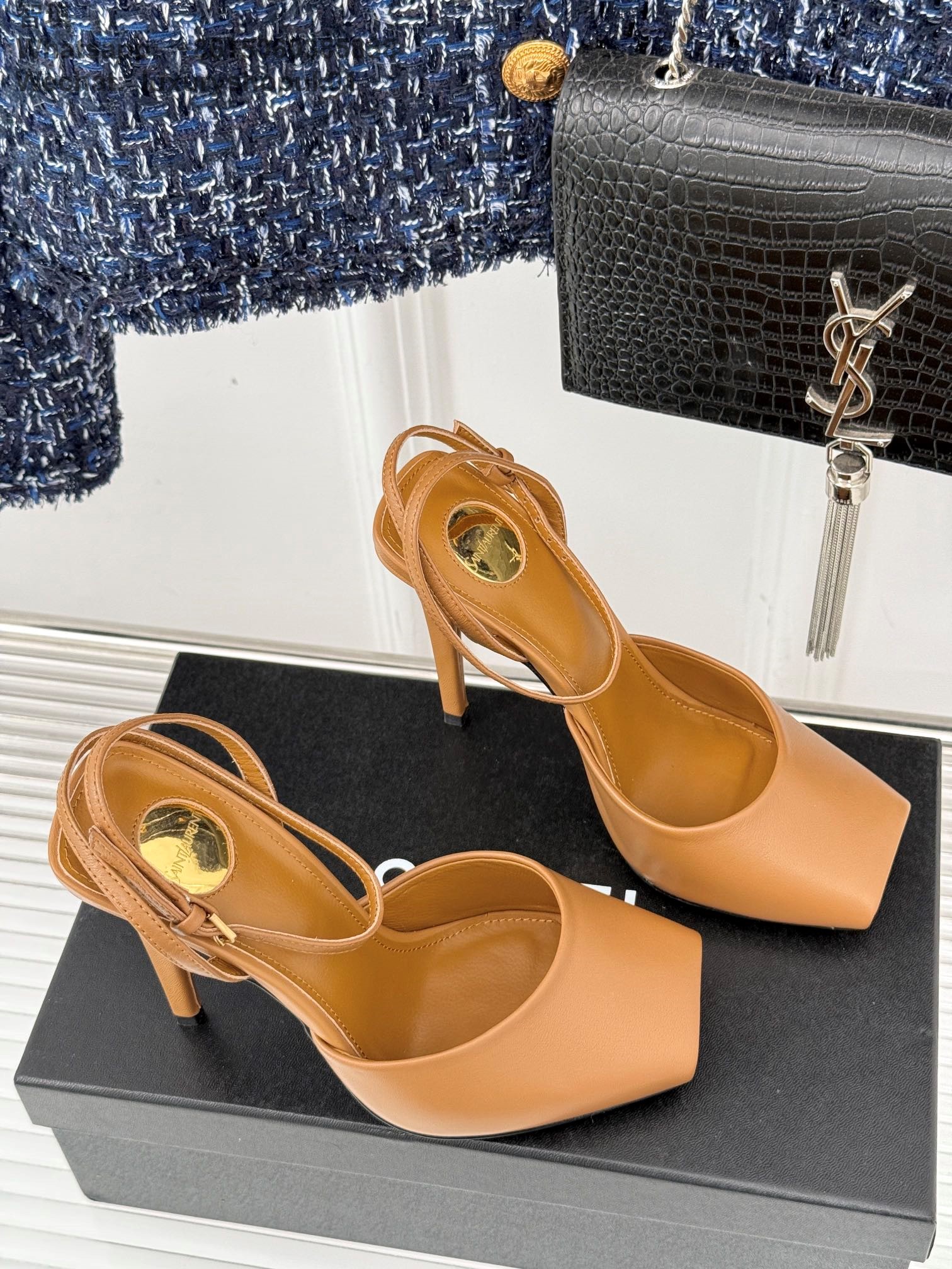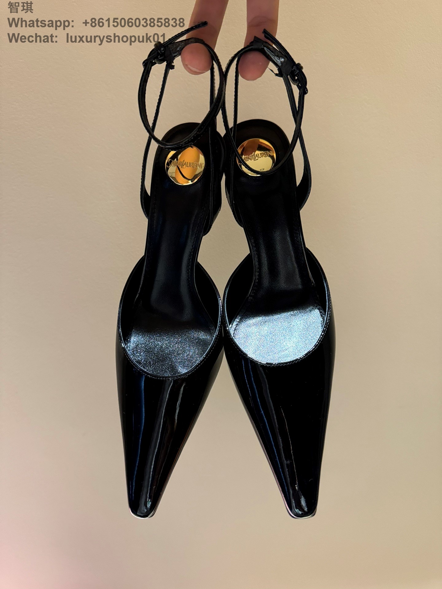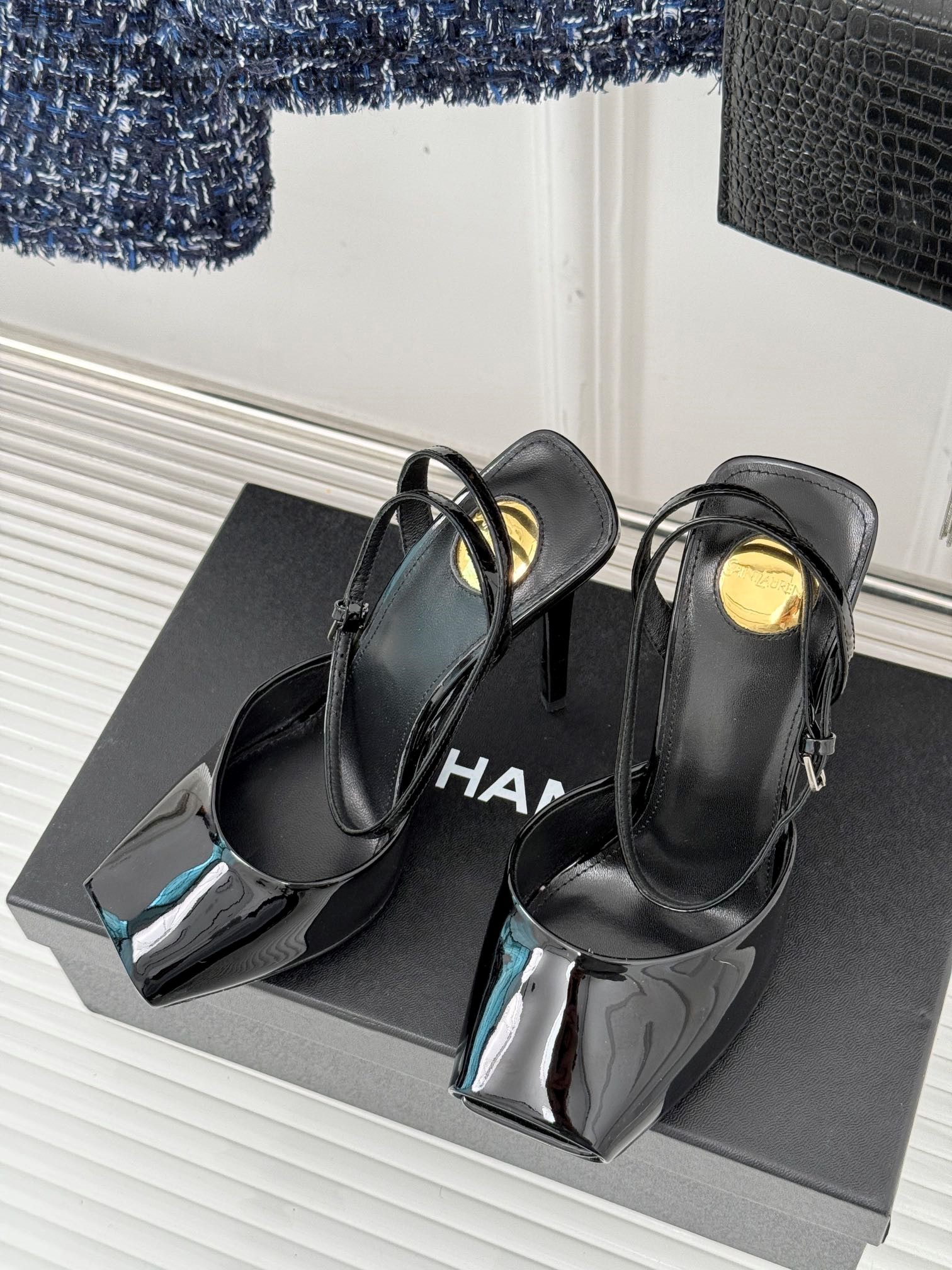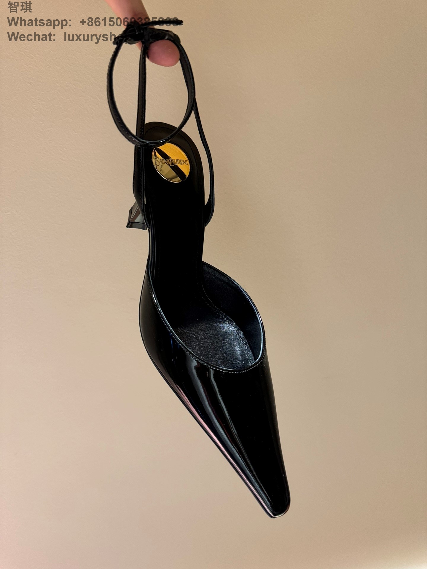 Saint Laurent Blade Slingback Pumps patent leather wraparound ankle ties Women Sandal Shoes YSL