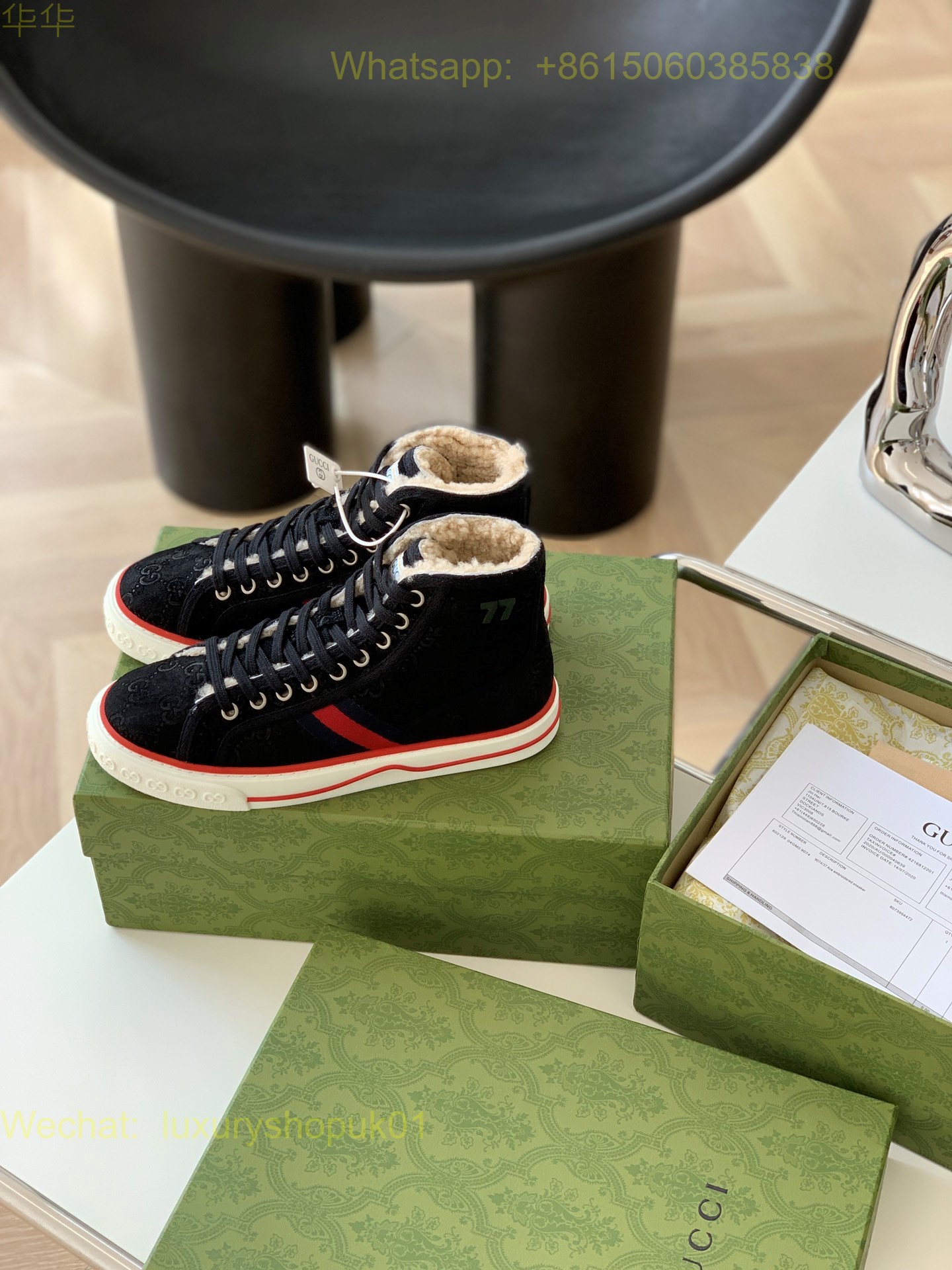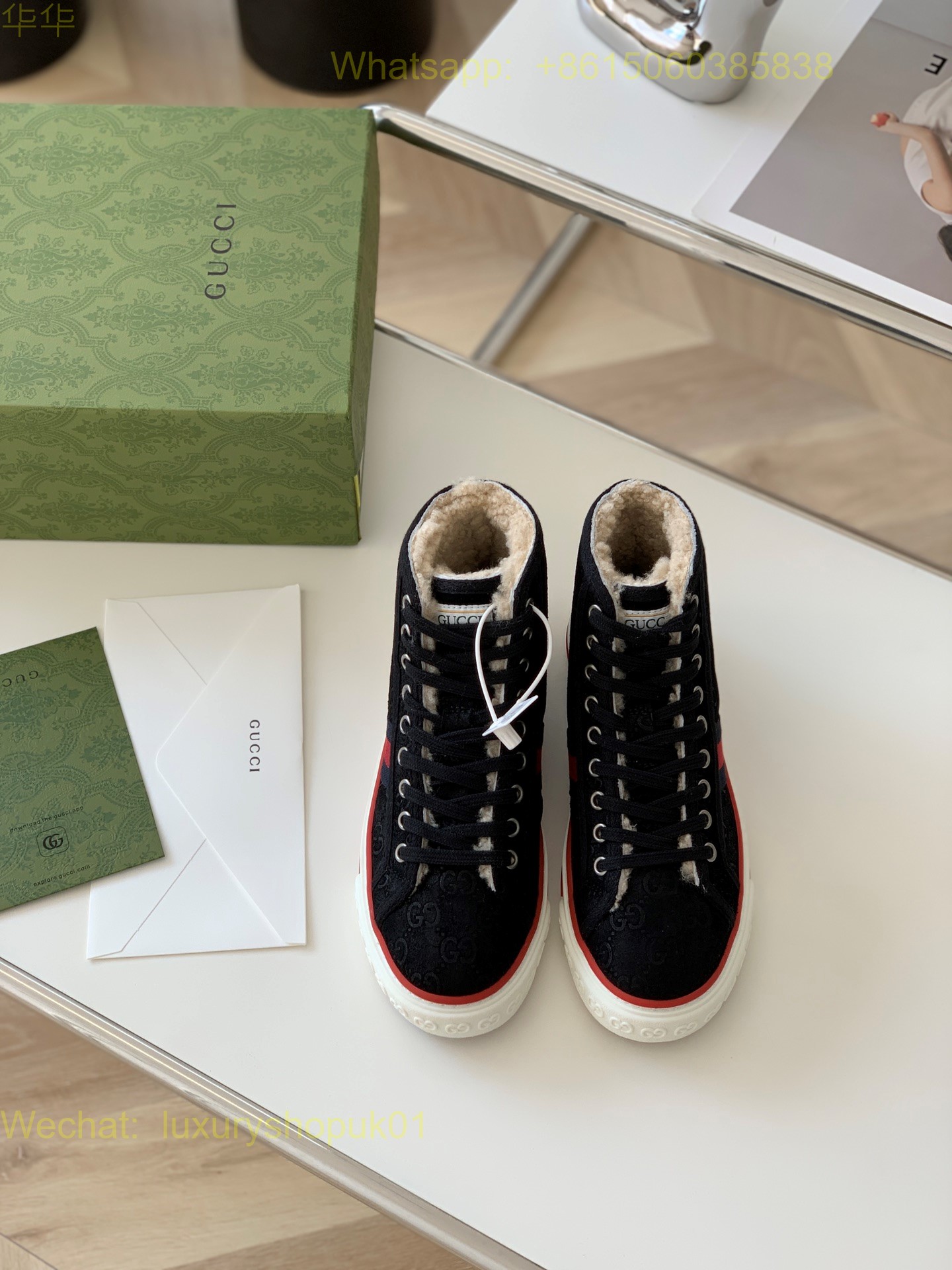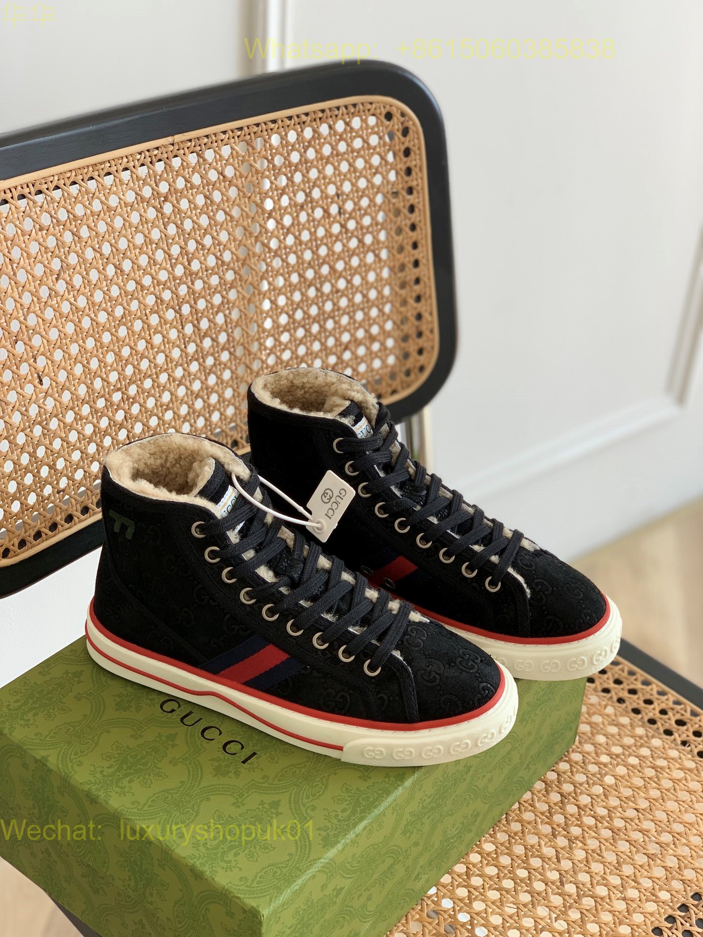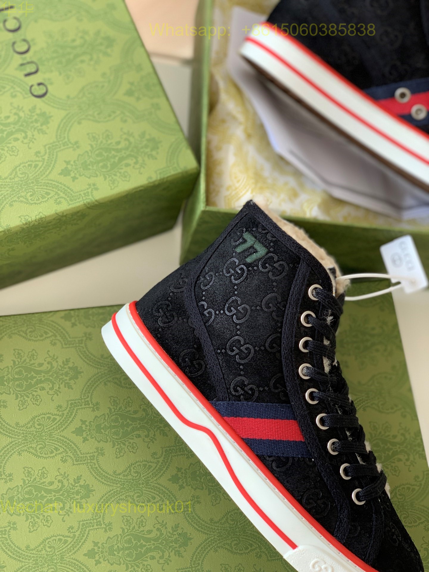 Gucci High top Tennis Fur Shearling GG 1977 Sneakers Mens Women Shoes