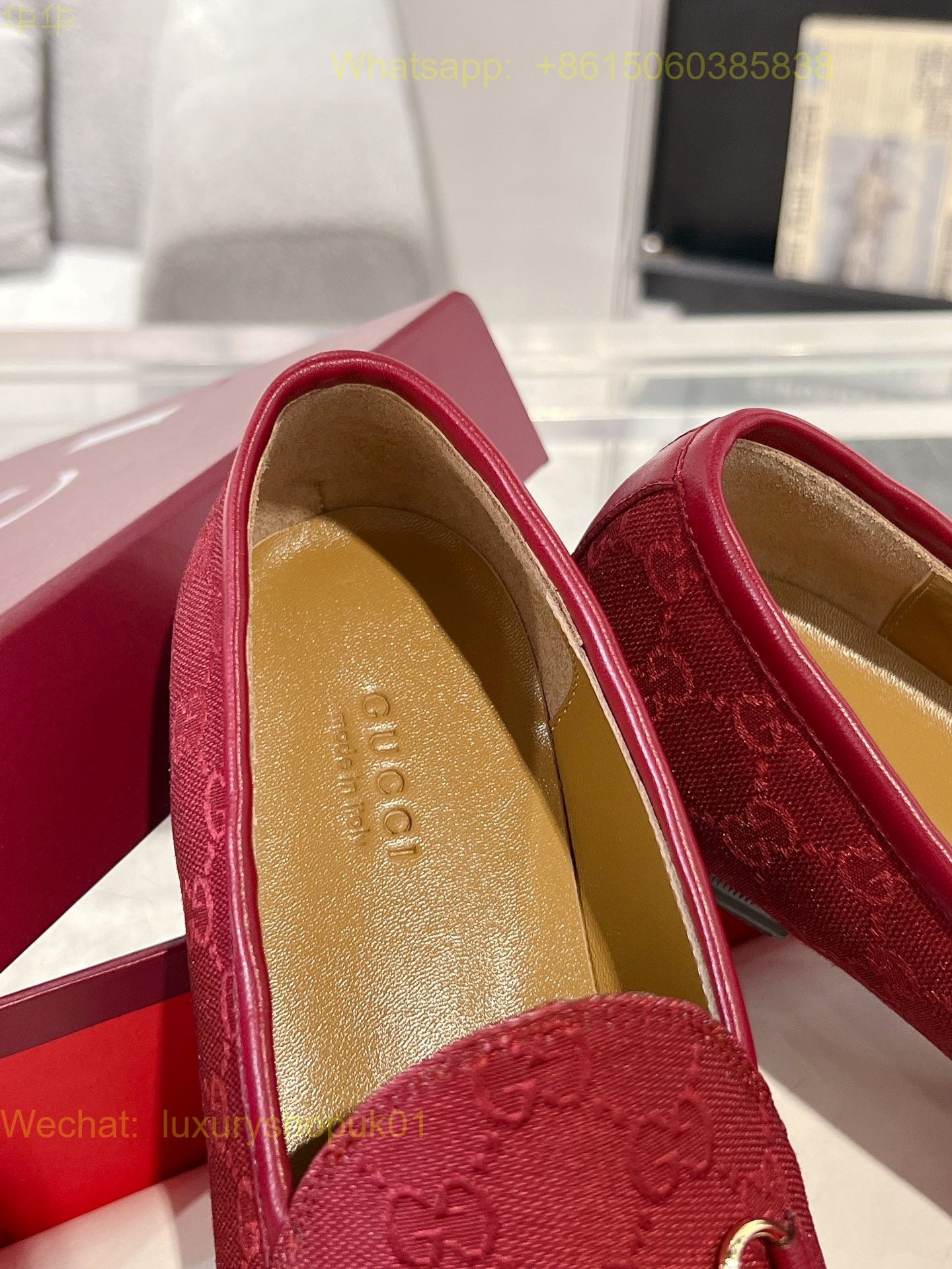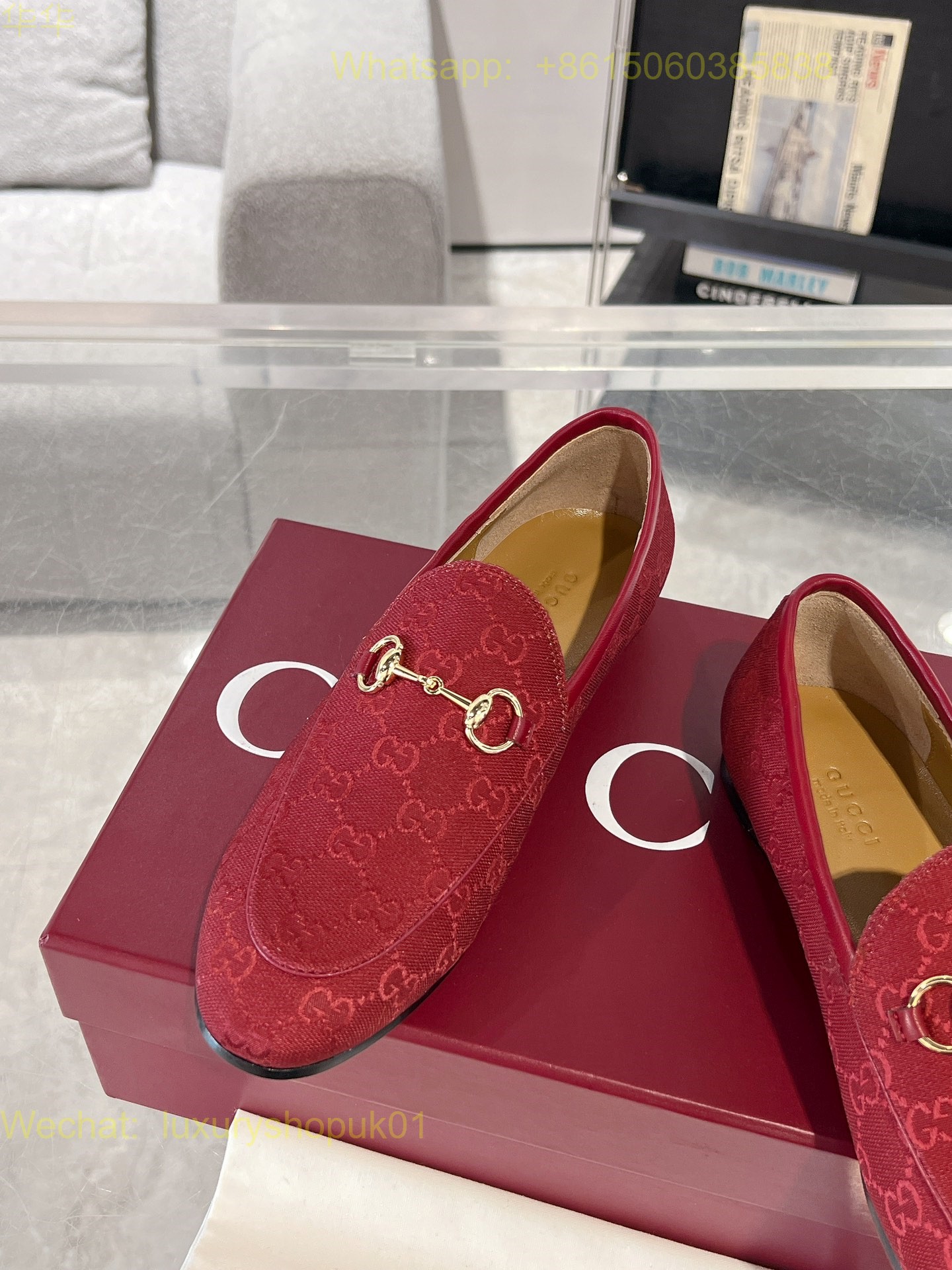 Gucci Jordaan Red Loafer Flat Women Shoes