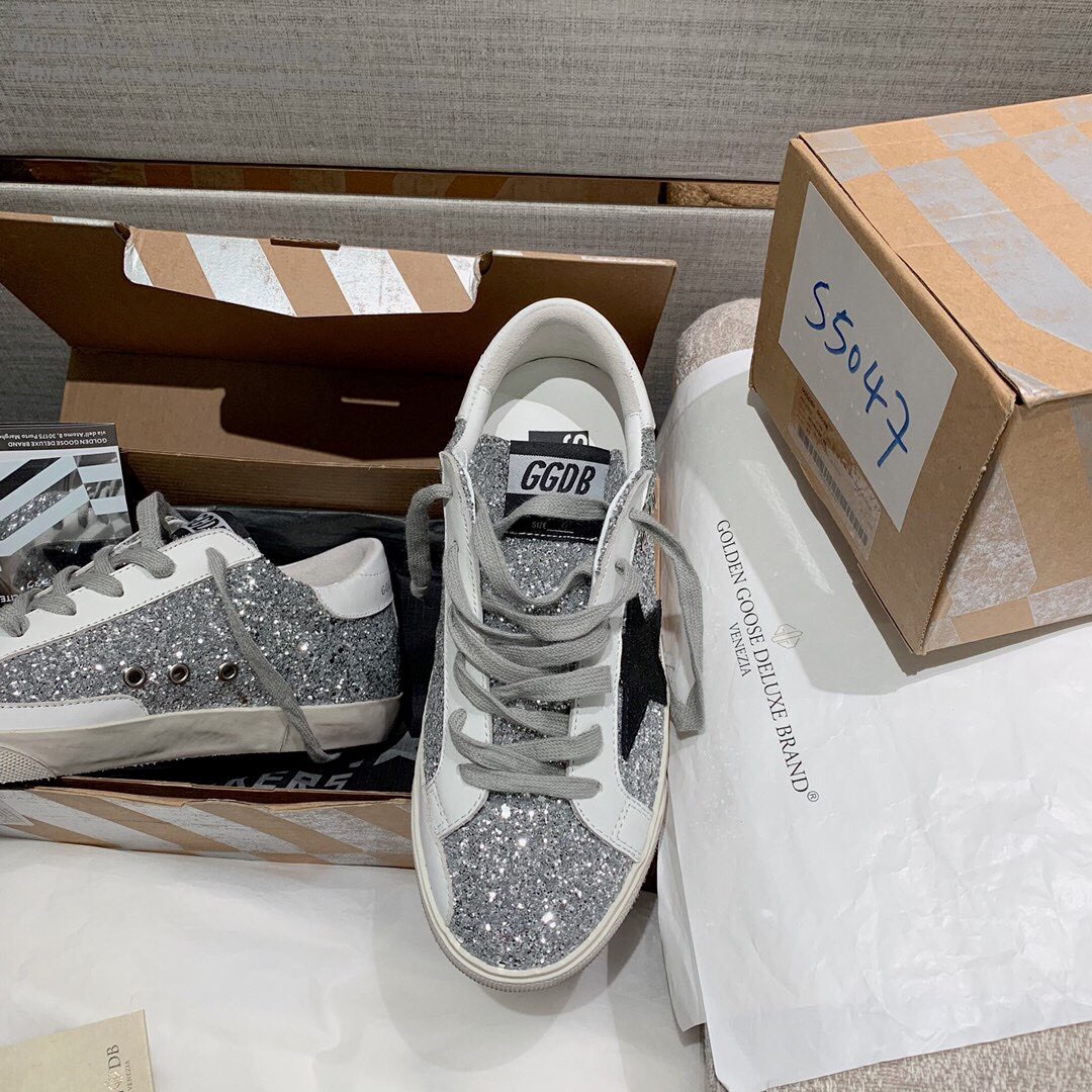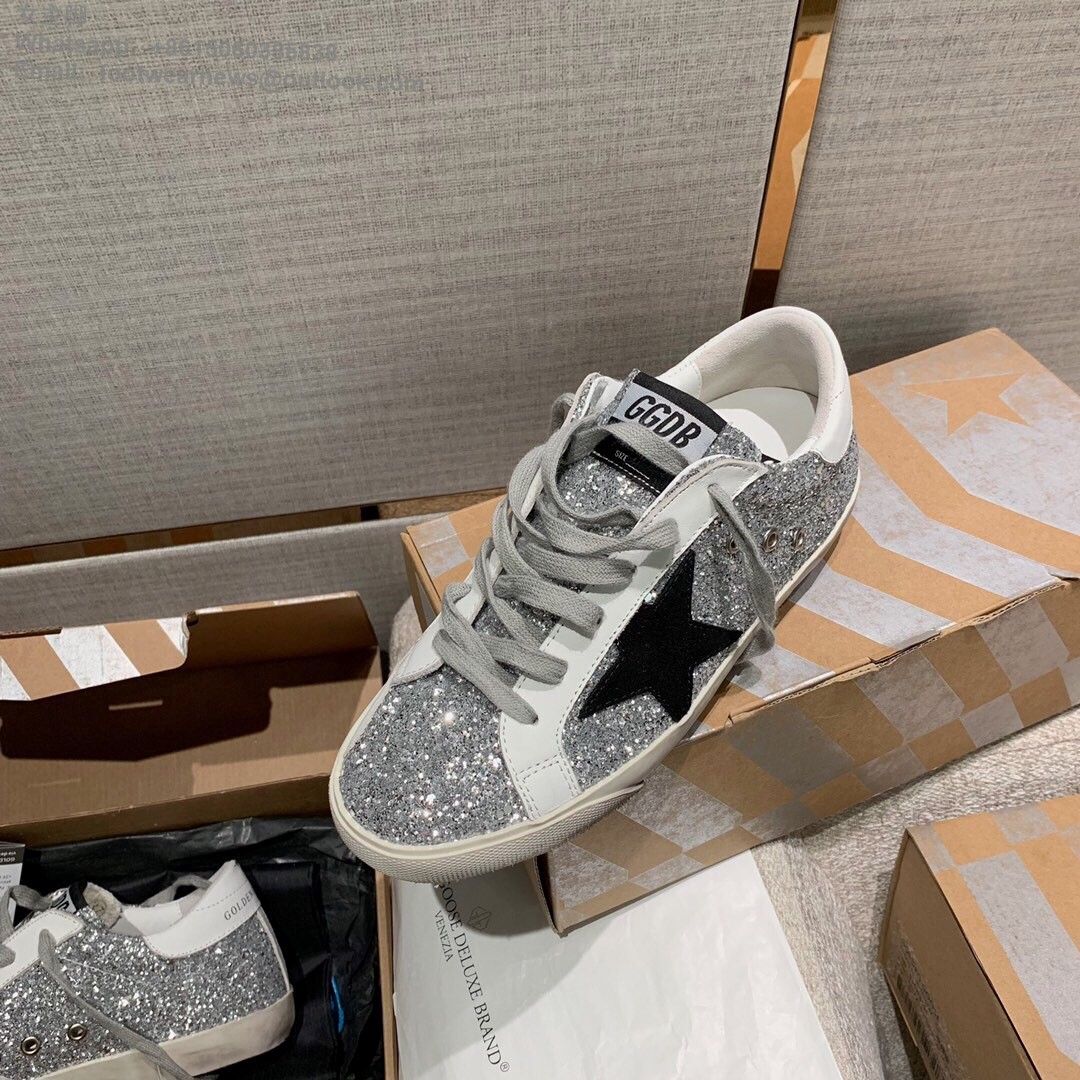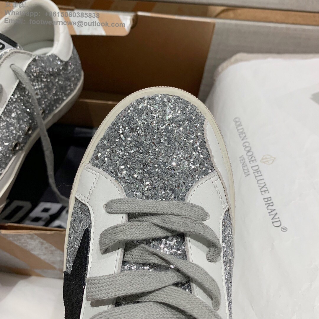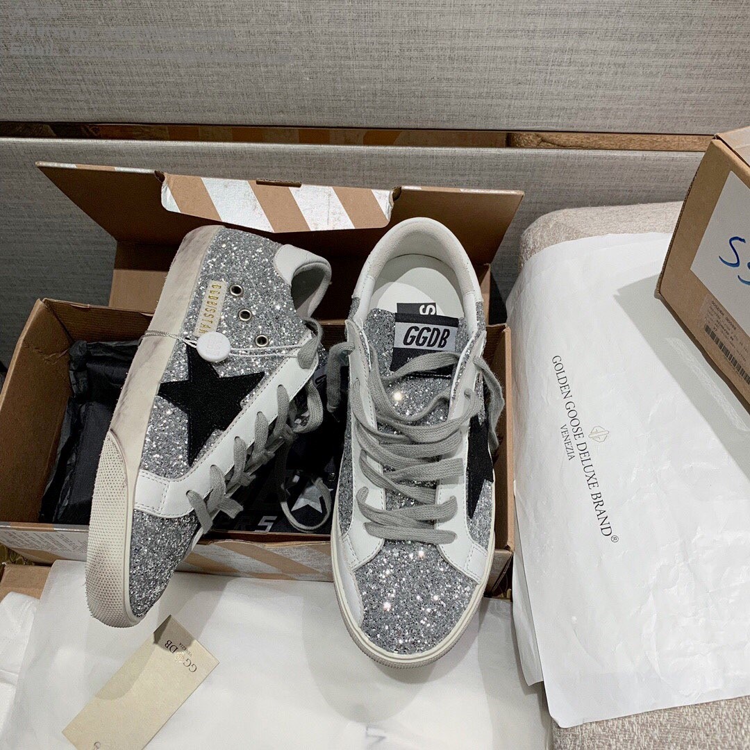 GOLDEN GOOSE GGDB Super star Low top Mens Women Sneakers Shoes glitter silver