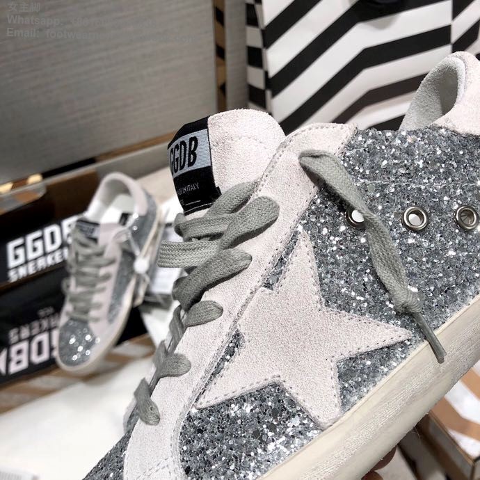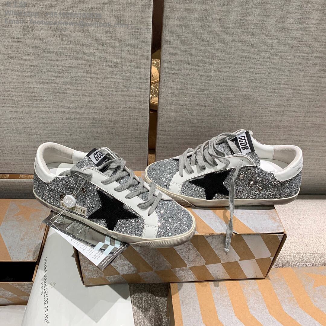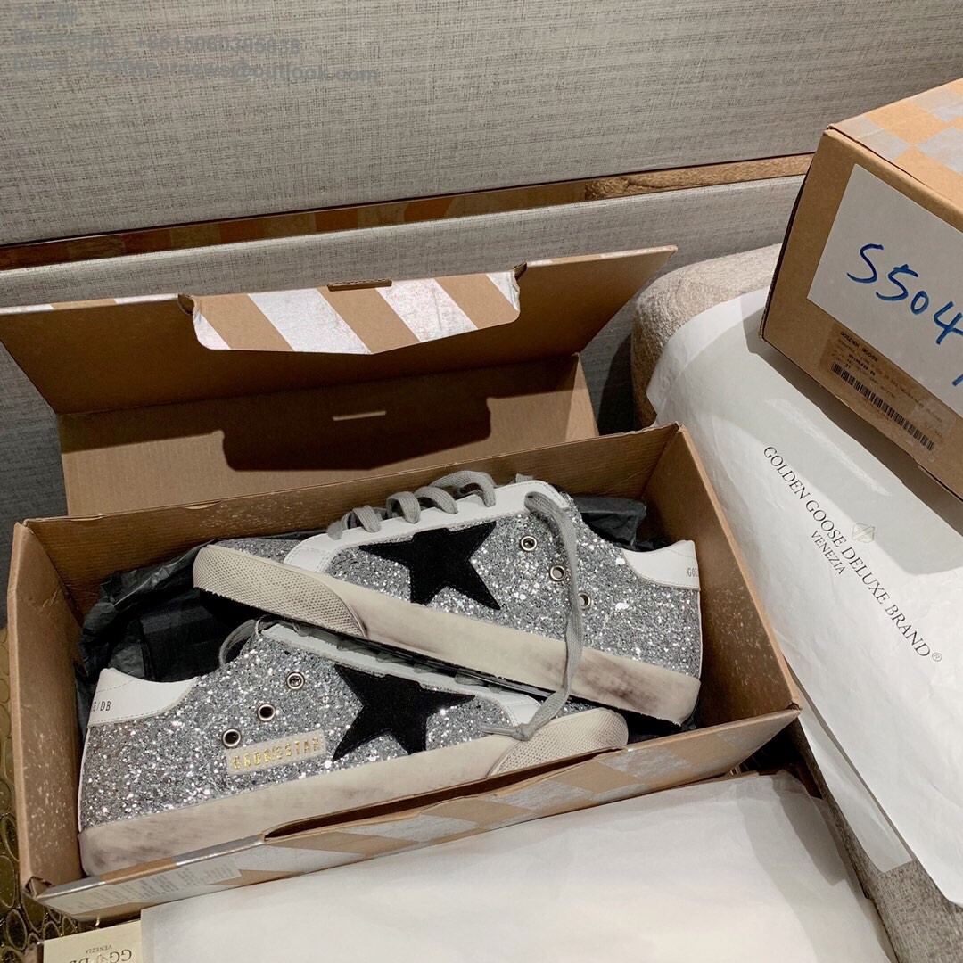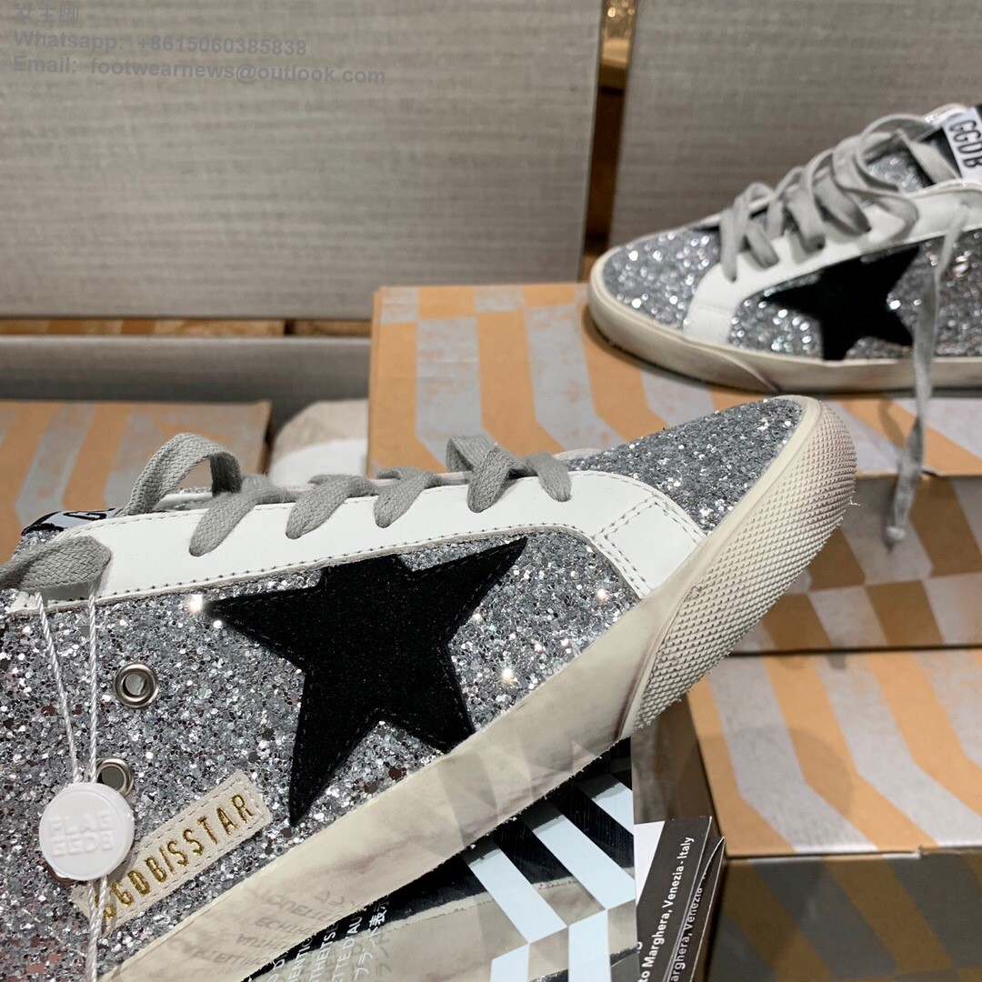 GOLDEN GOOSE GGDB Super star Low top Mens Women Sneakers Shoes glitter silver