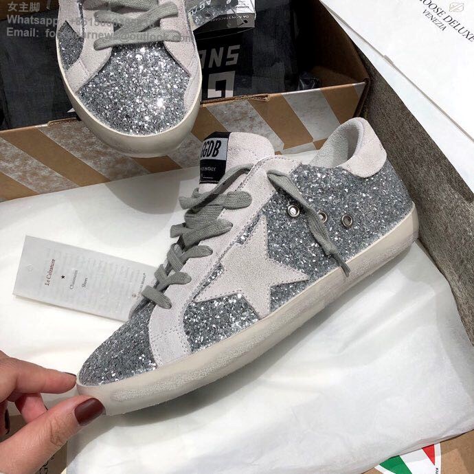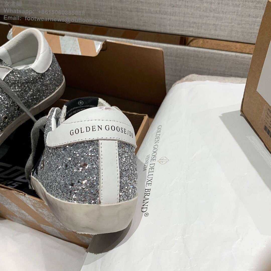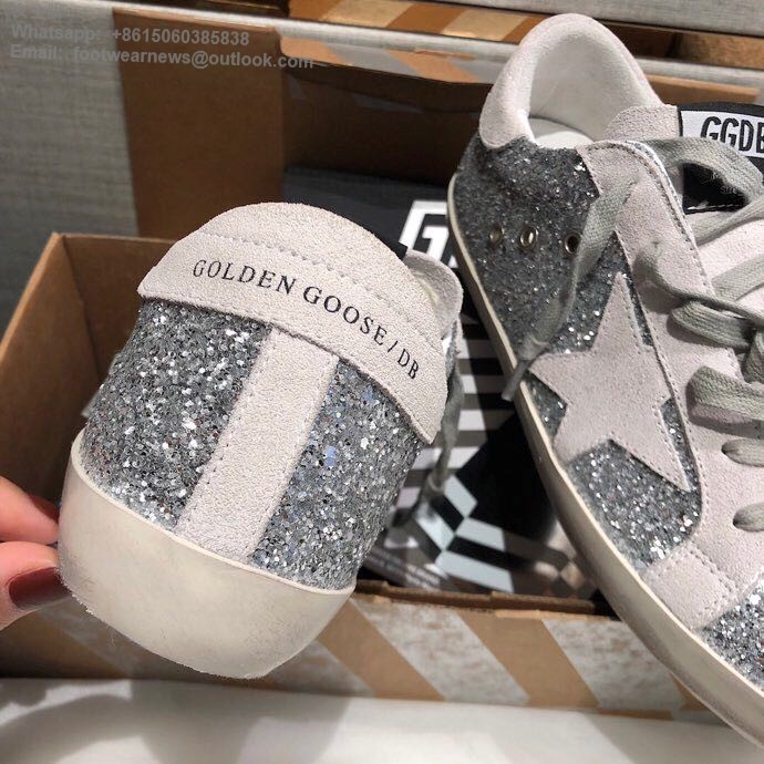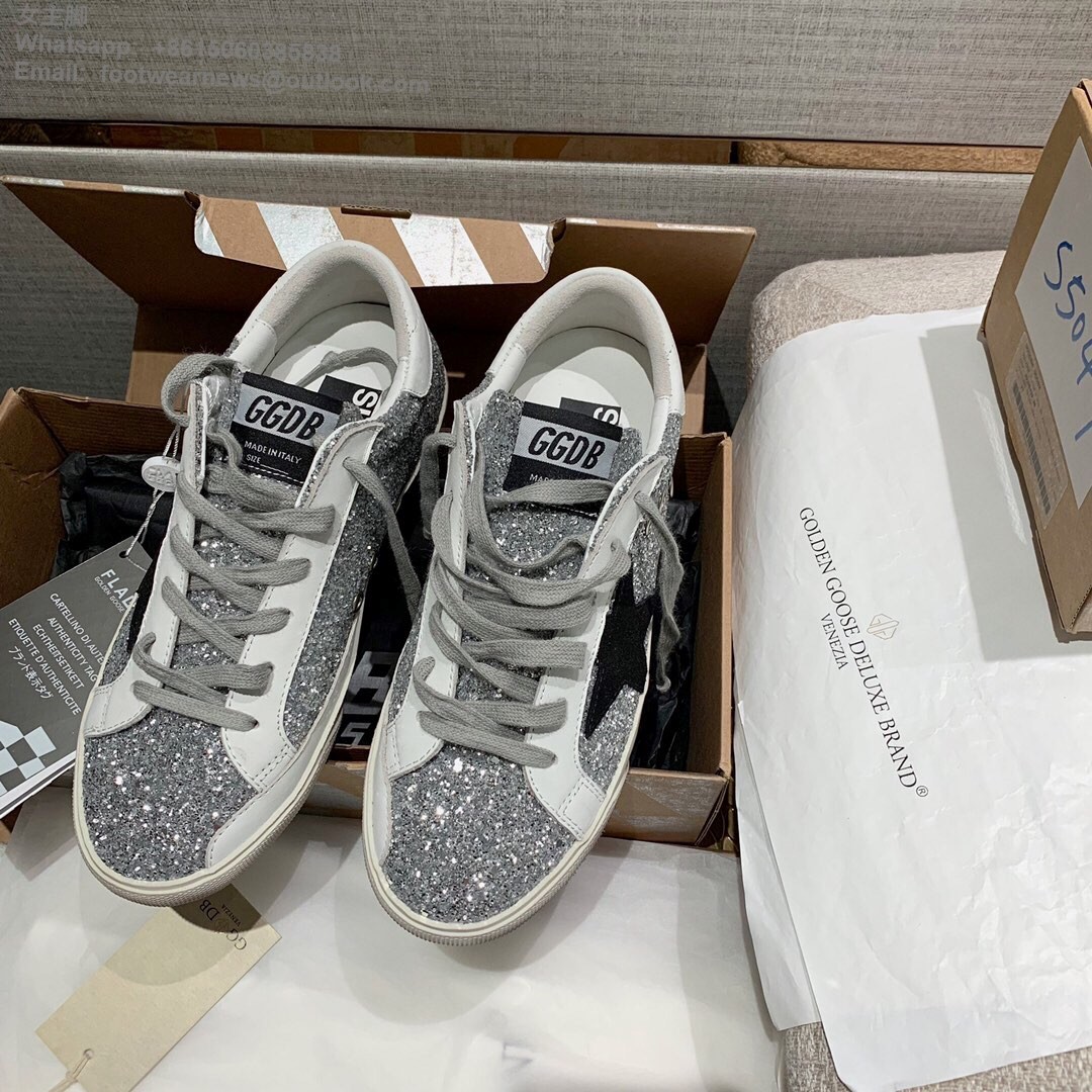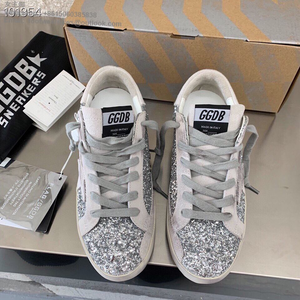 GOLDEN GOOSE GGDB Super star Low top Mens Women Sneakers Shoes glitter silver