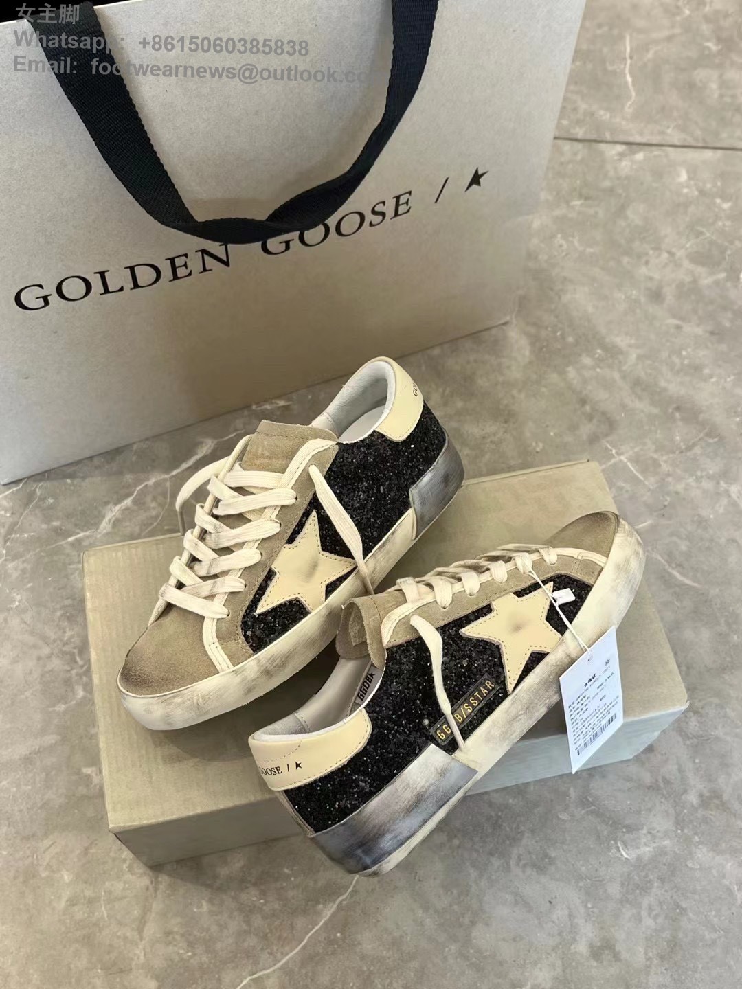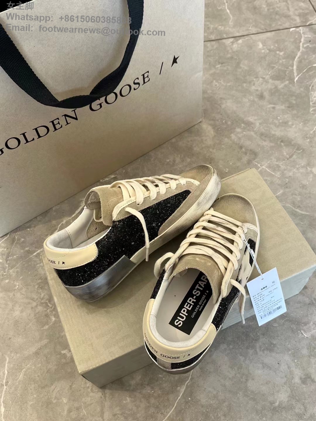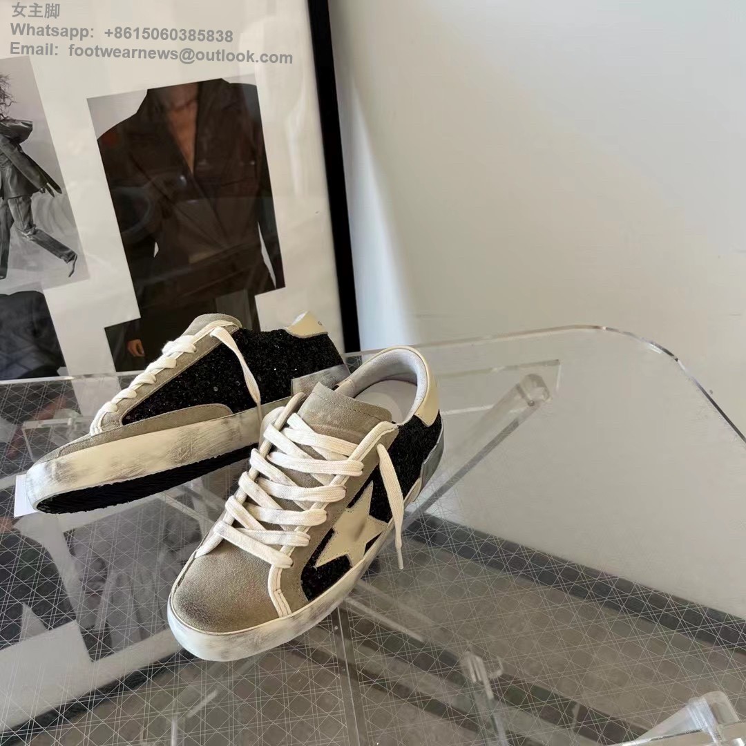 GOLDEN GOOSE GGDB Super star Low top Mens Women Sneakers Shoes glitter black star
