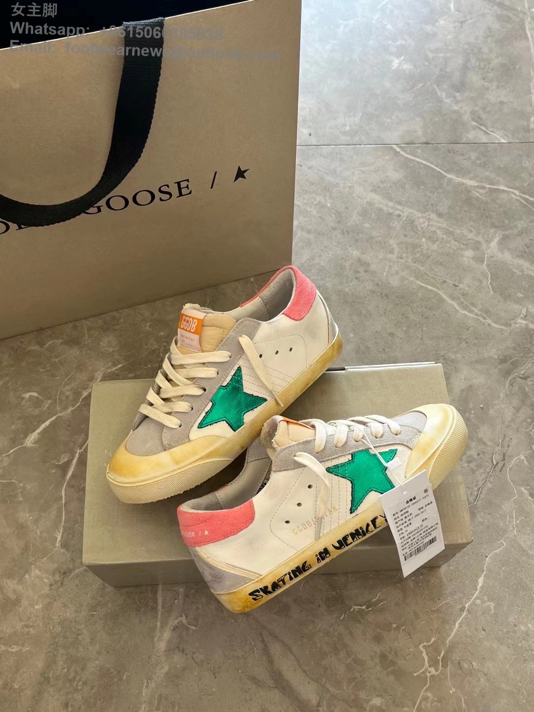 GOLDEN GOOSE GGDB Super star Low top Mens Women Sneakers Shoes Green star