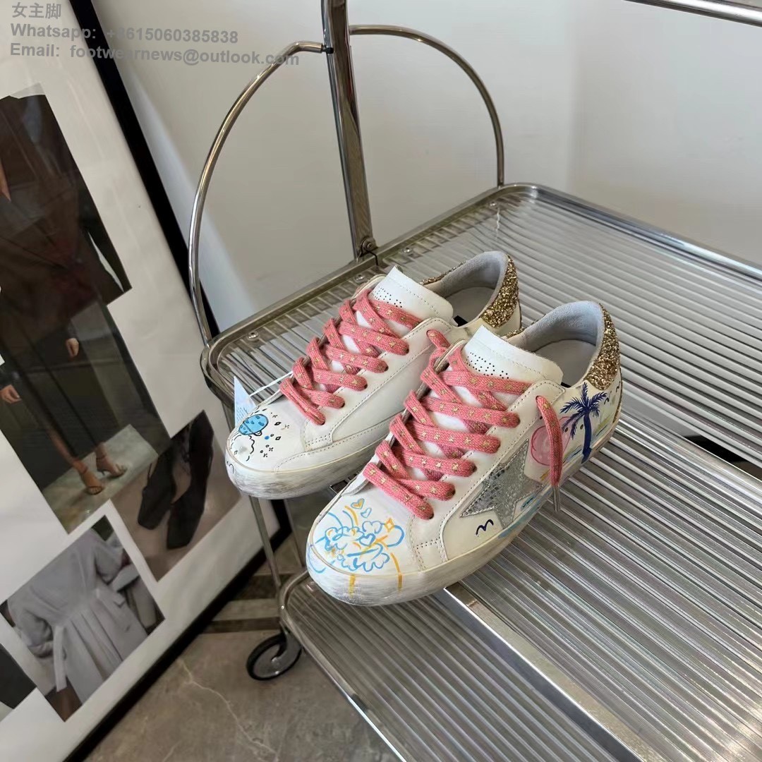 GOLDEN GOOSE GGDB Super star Low top Mens Women Sneakers Shoes Graffiti glitter