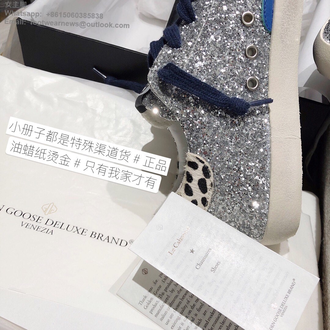 GOLDEN GOOSE GGDB superstar sabot Low top Mens Women Sneakers Shoes glitter blue star