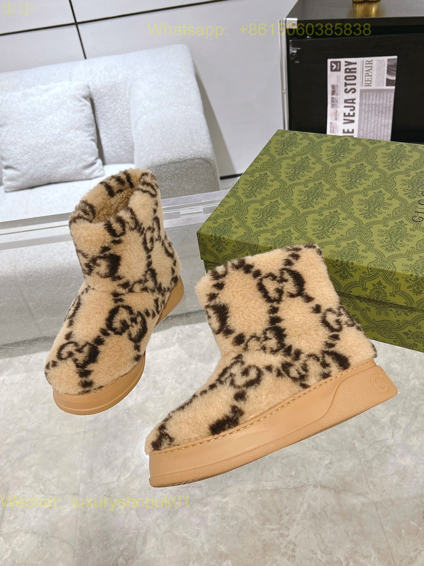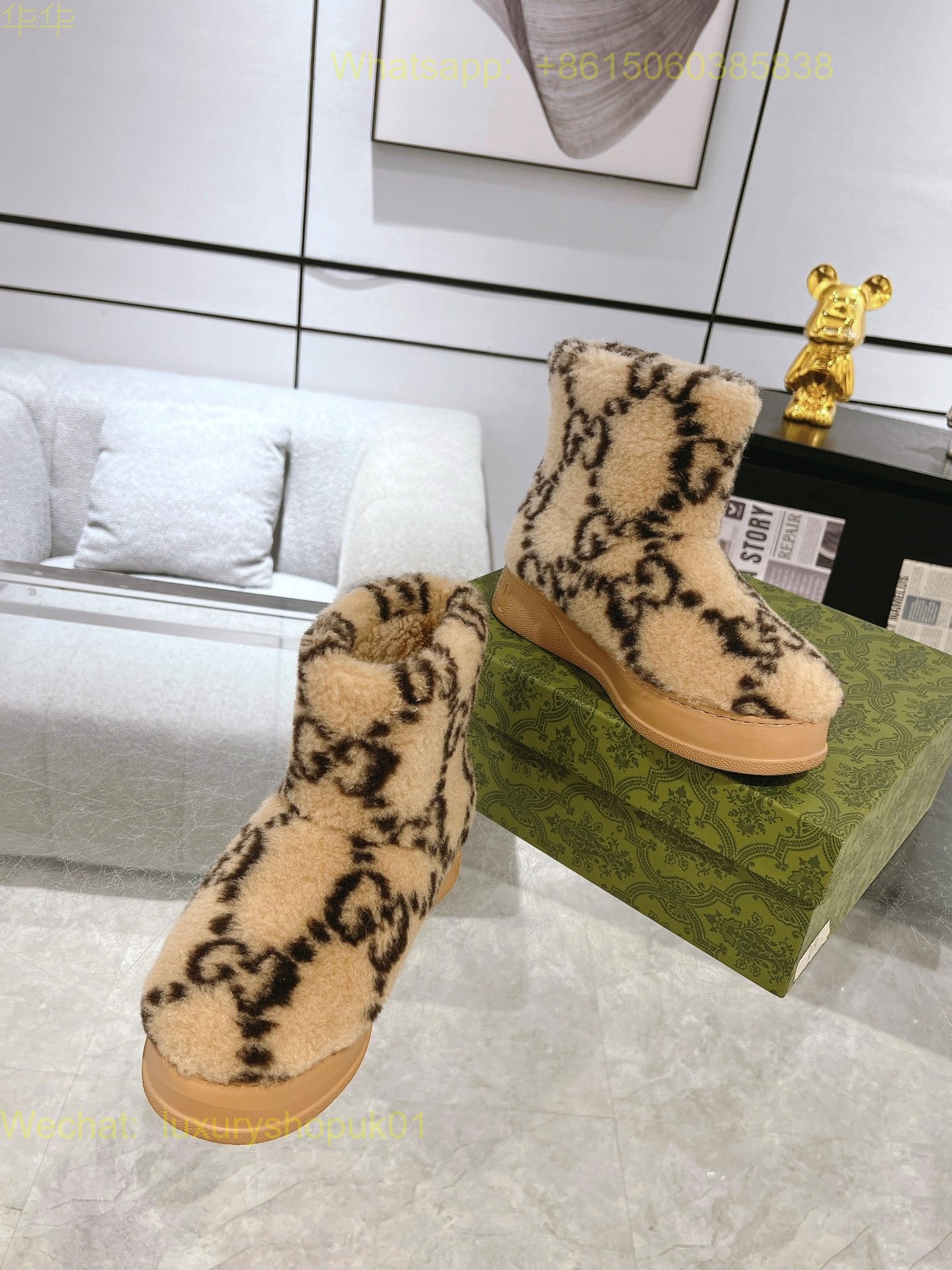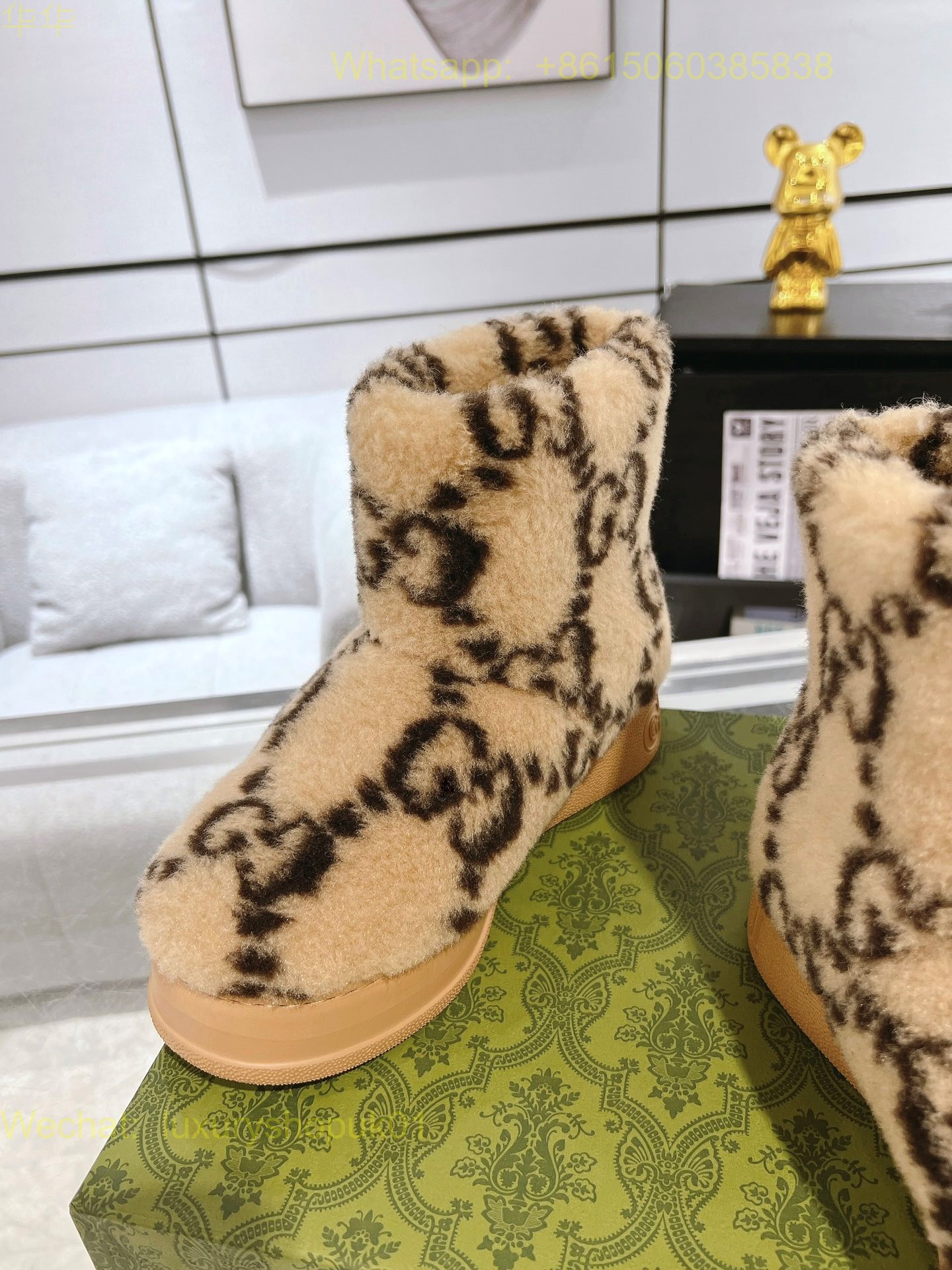 Gucci Faux-Shearling Round Toe Ankle Boots Women snow Shoes