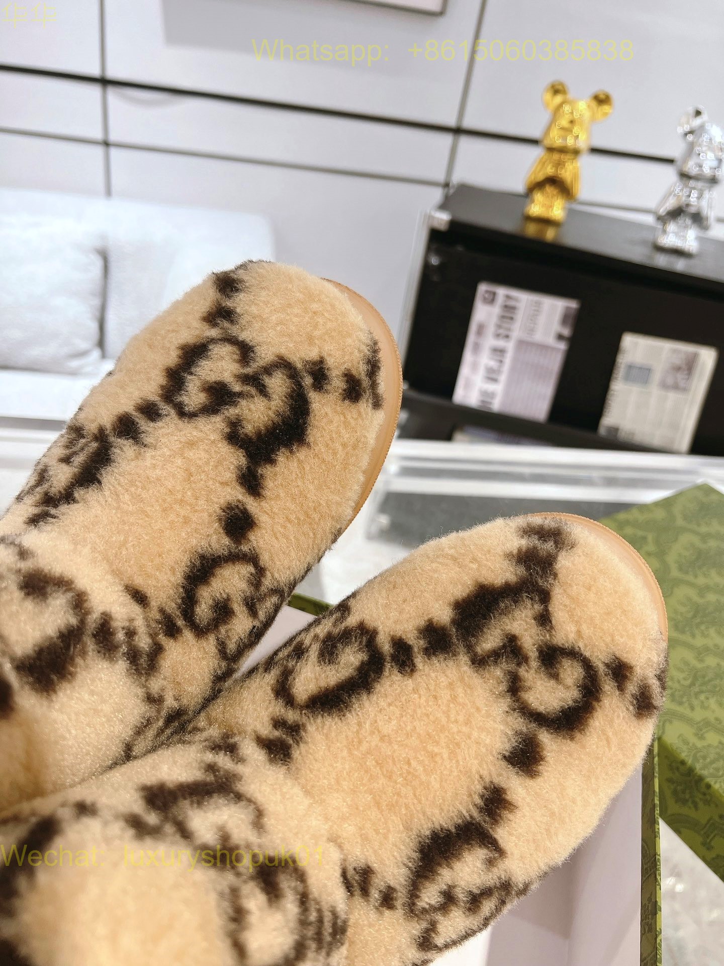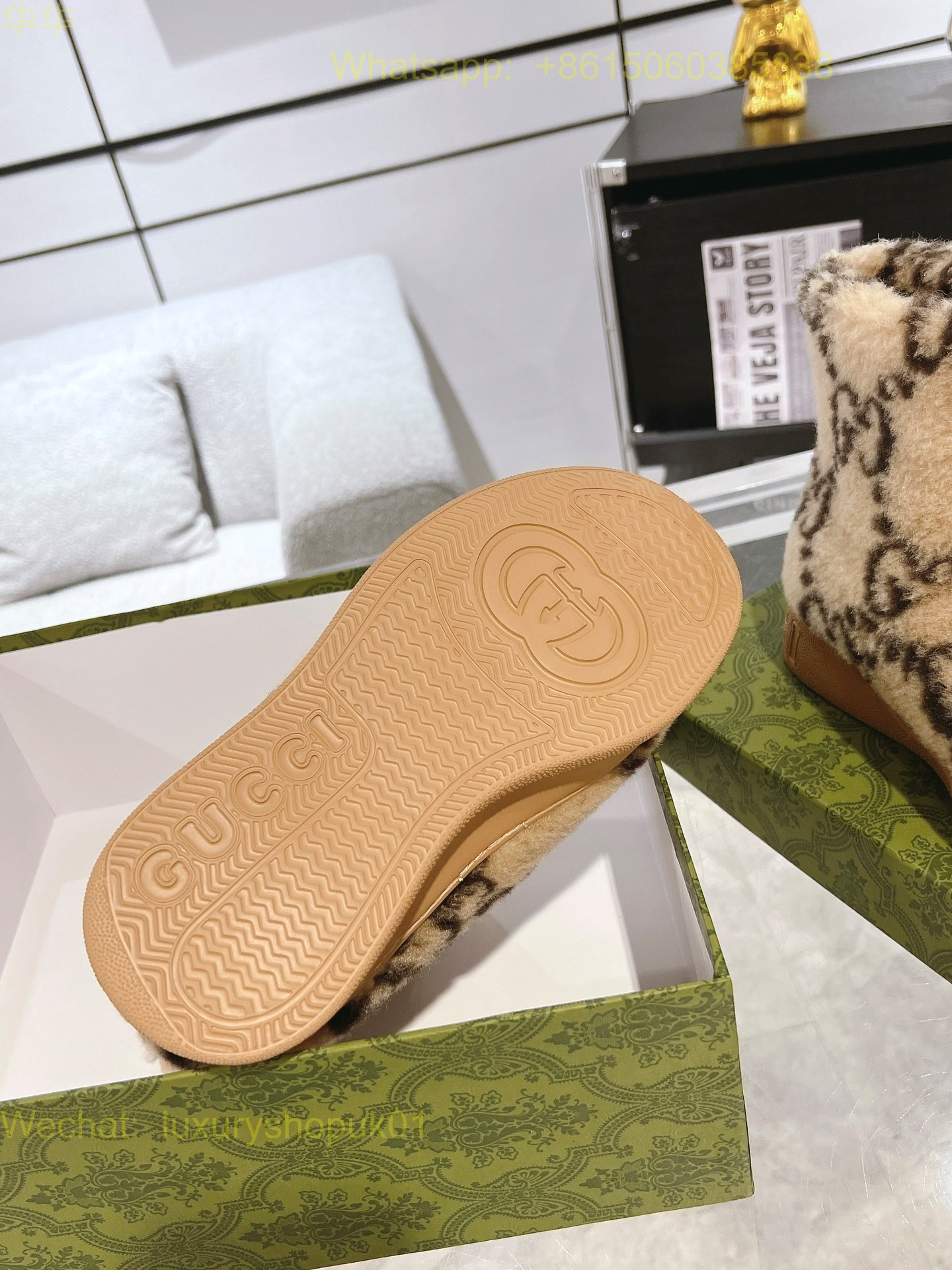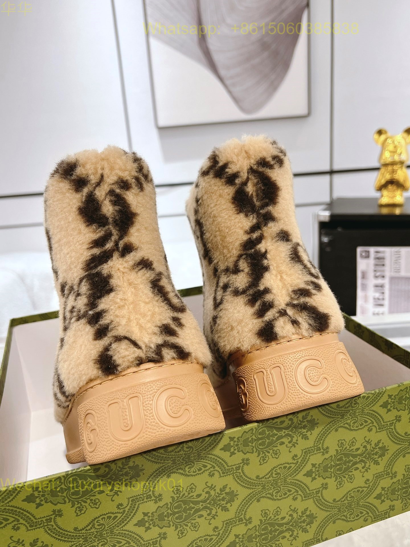 Gucci Faux-Shearling Round Toe Ankle Boots Women snow Shoes