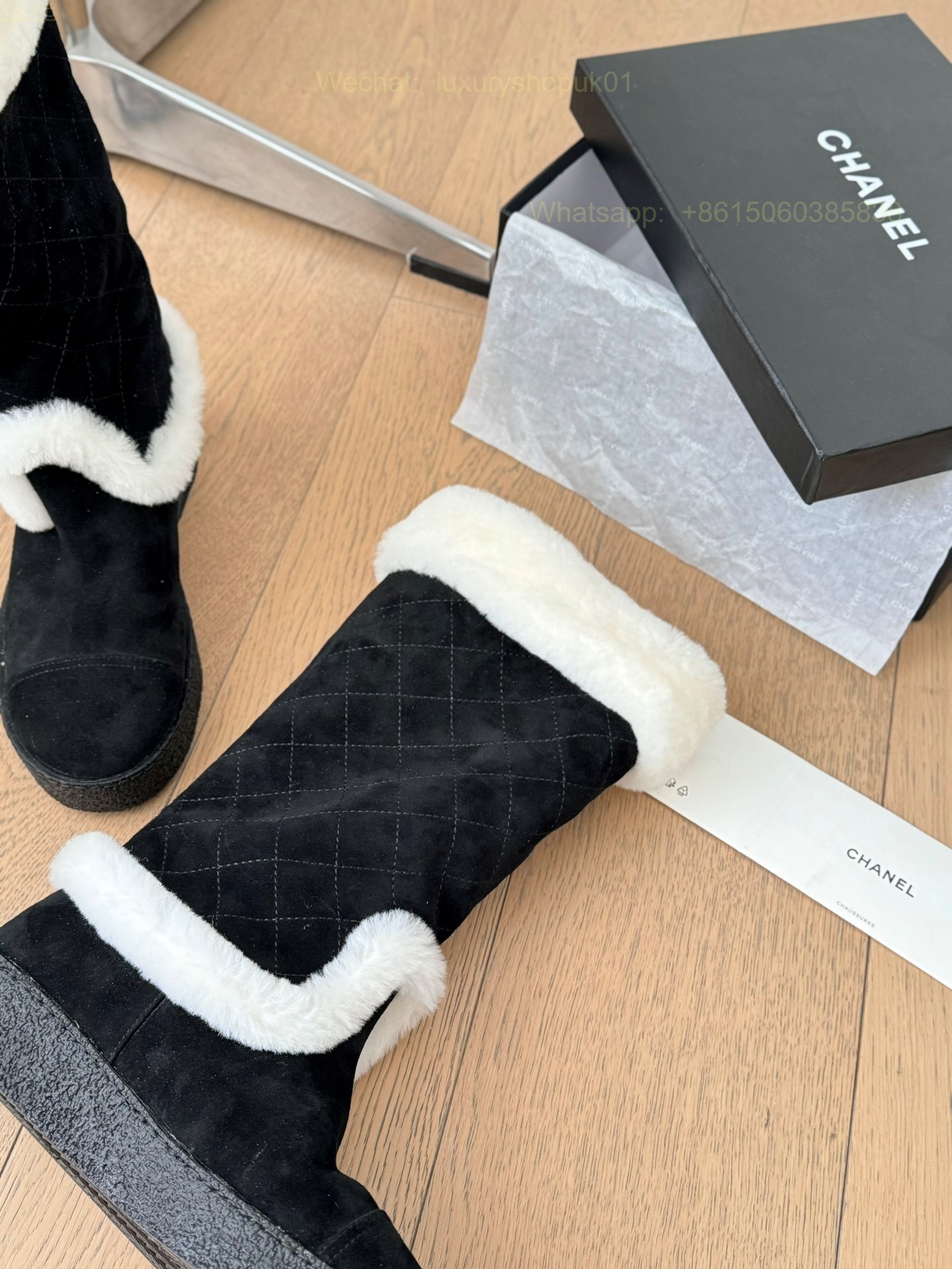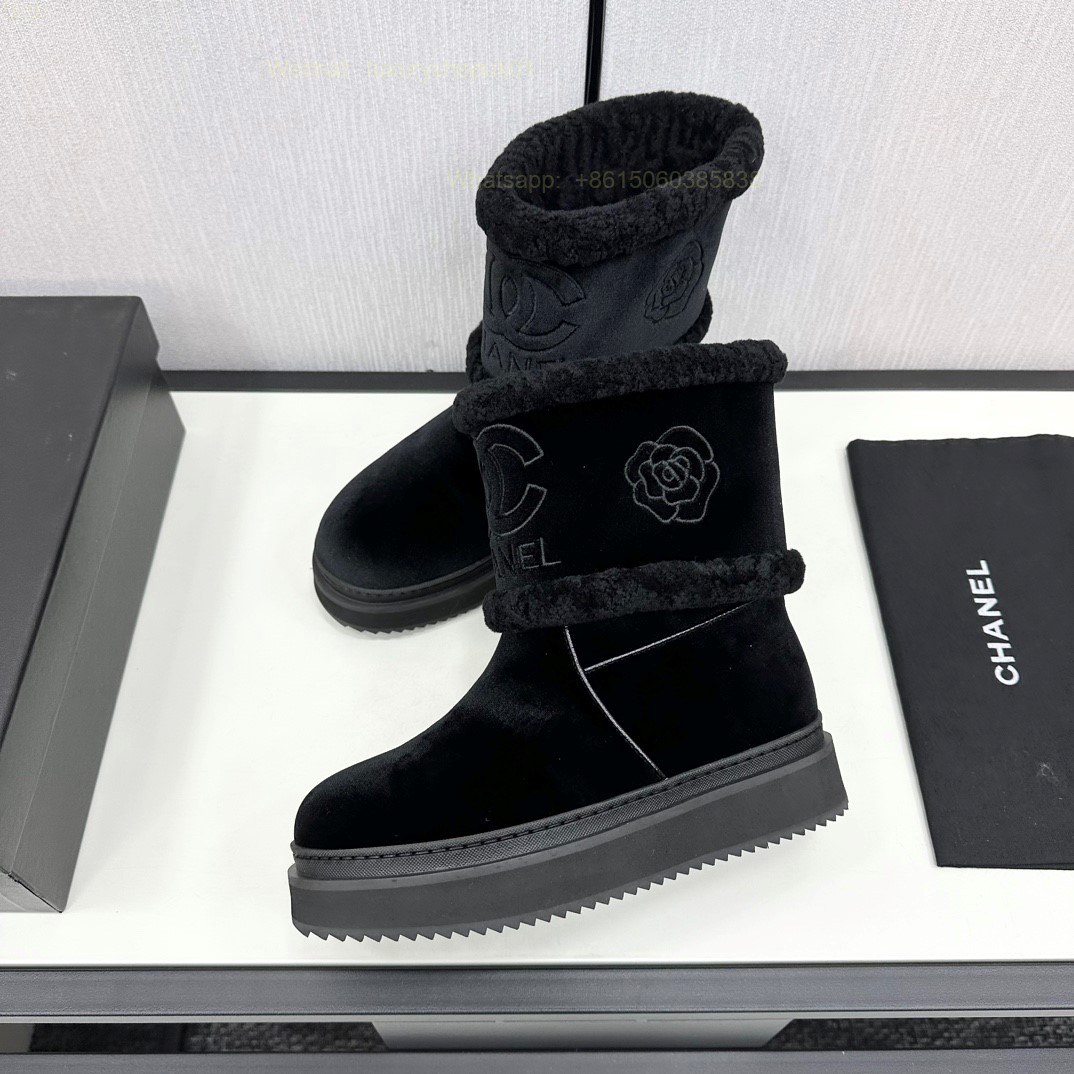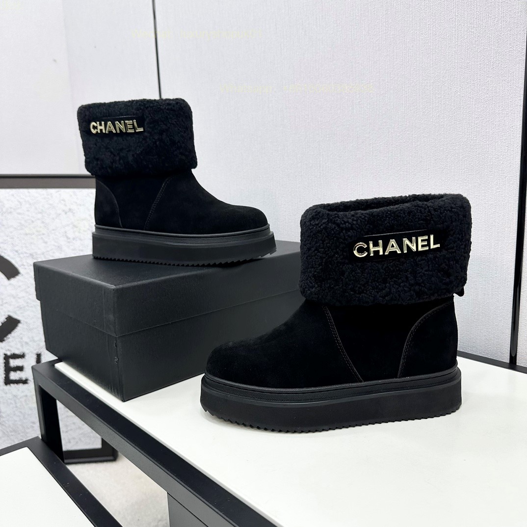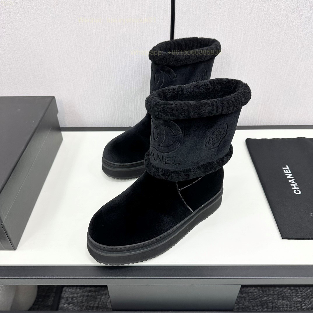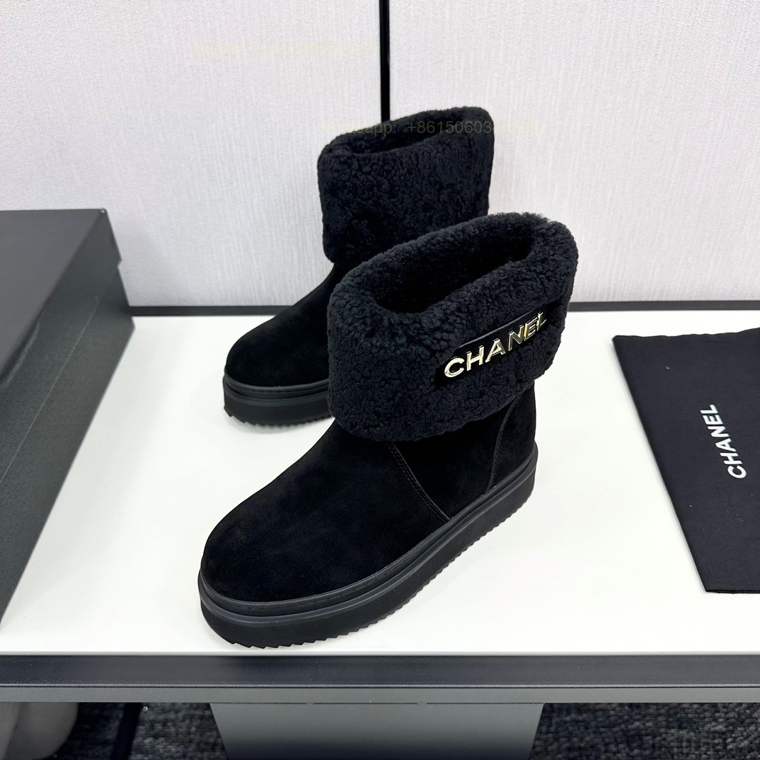 Chanel Fur Shearling Boots Flat Women Snow Shoes