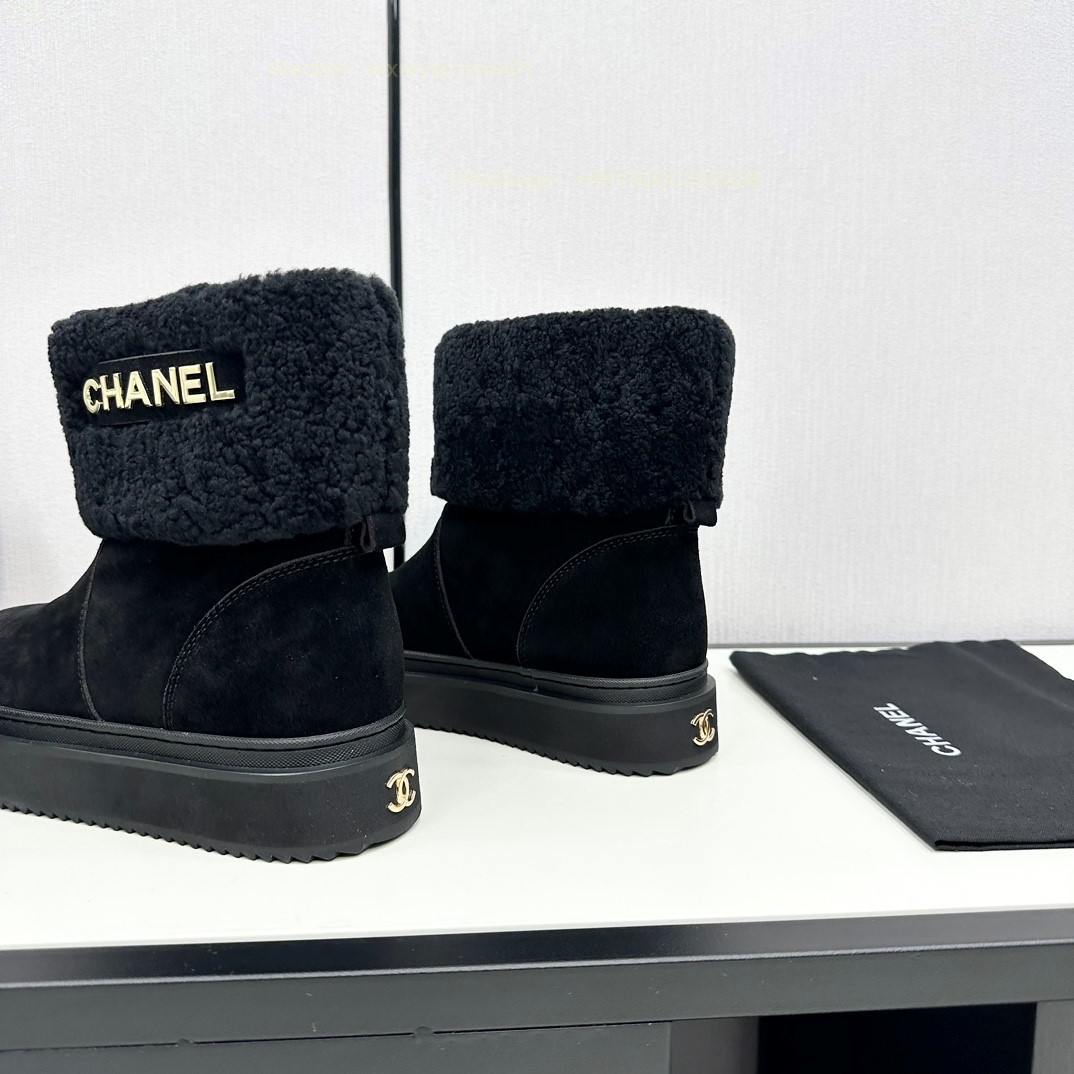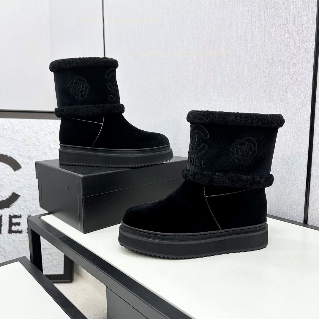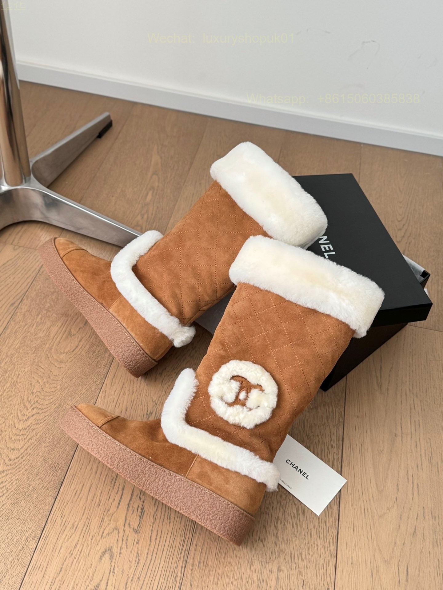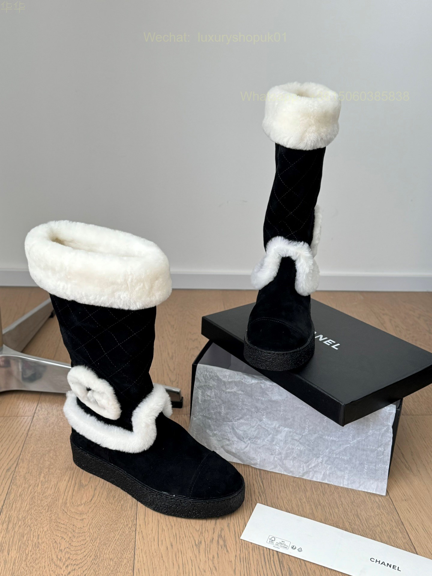 Chanel Fur Shearling Boots Flat Women Snow Shoes