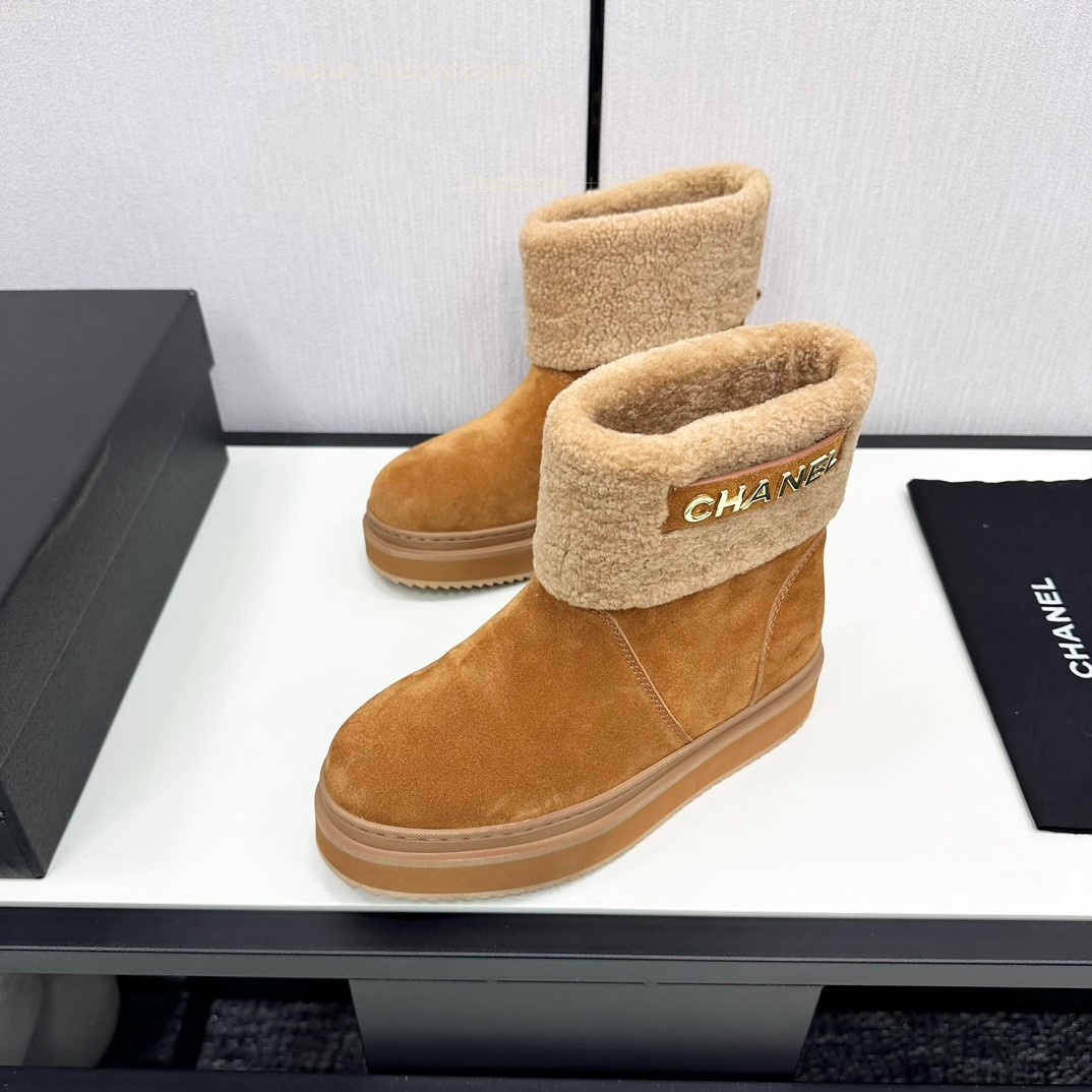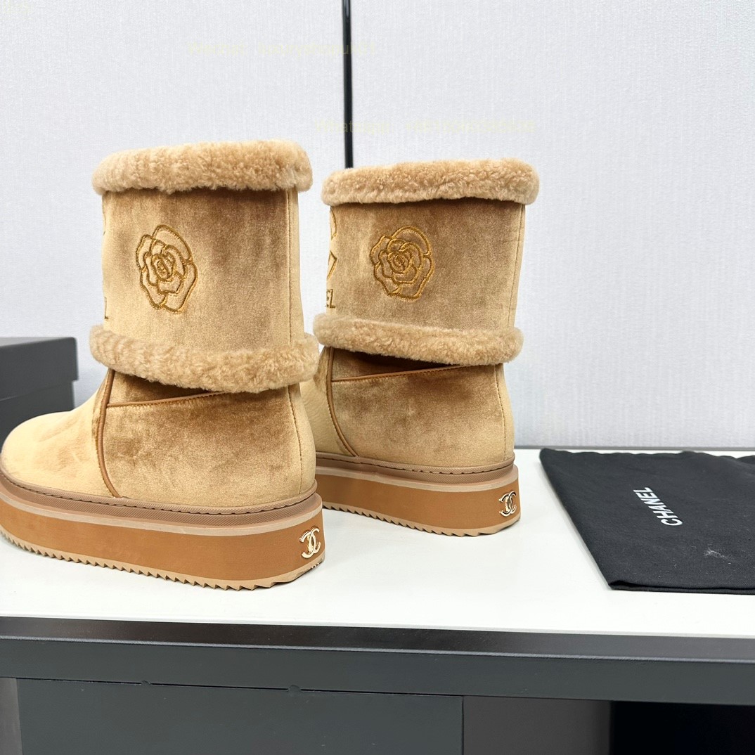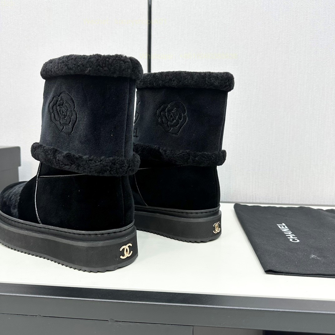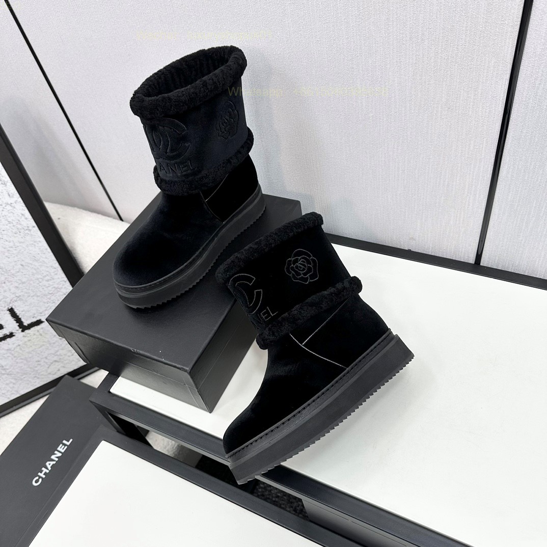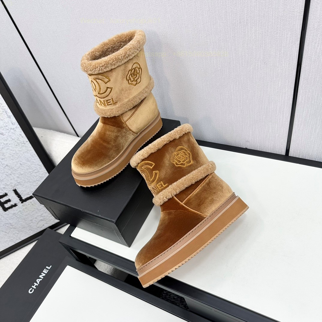 Chanel Fur Shearling Boots Flat Women Snow Shoes