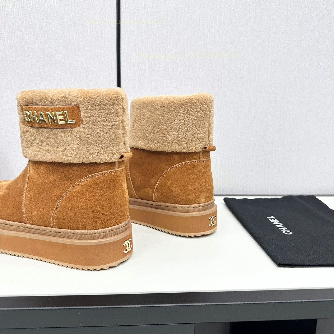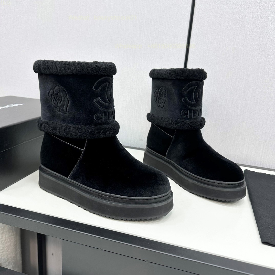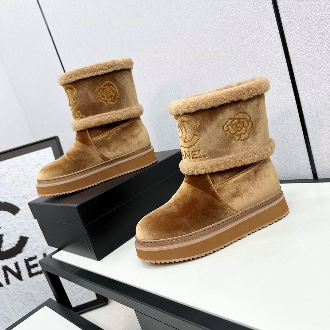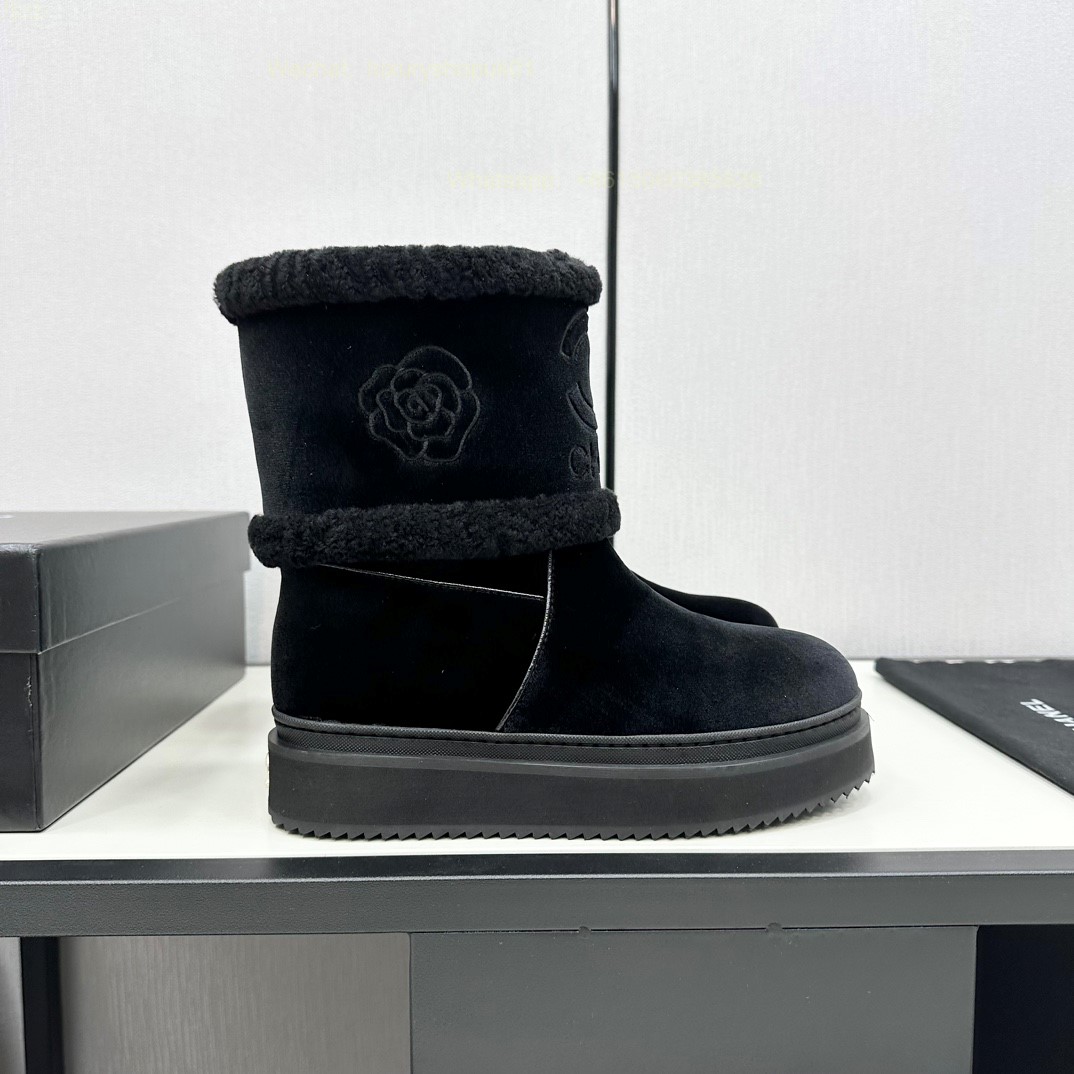 Chanel Fur Shearling Boots Flat Women Snow Shoes