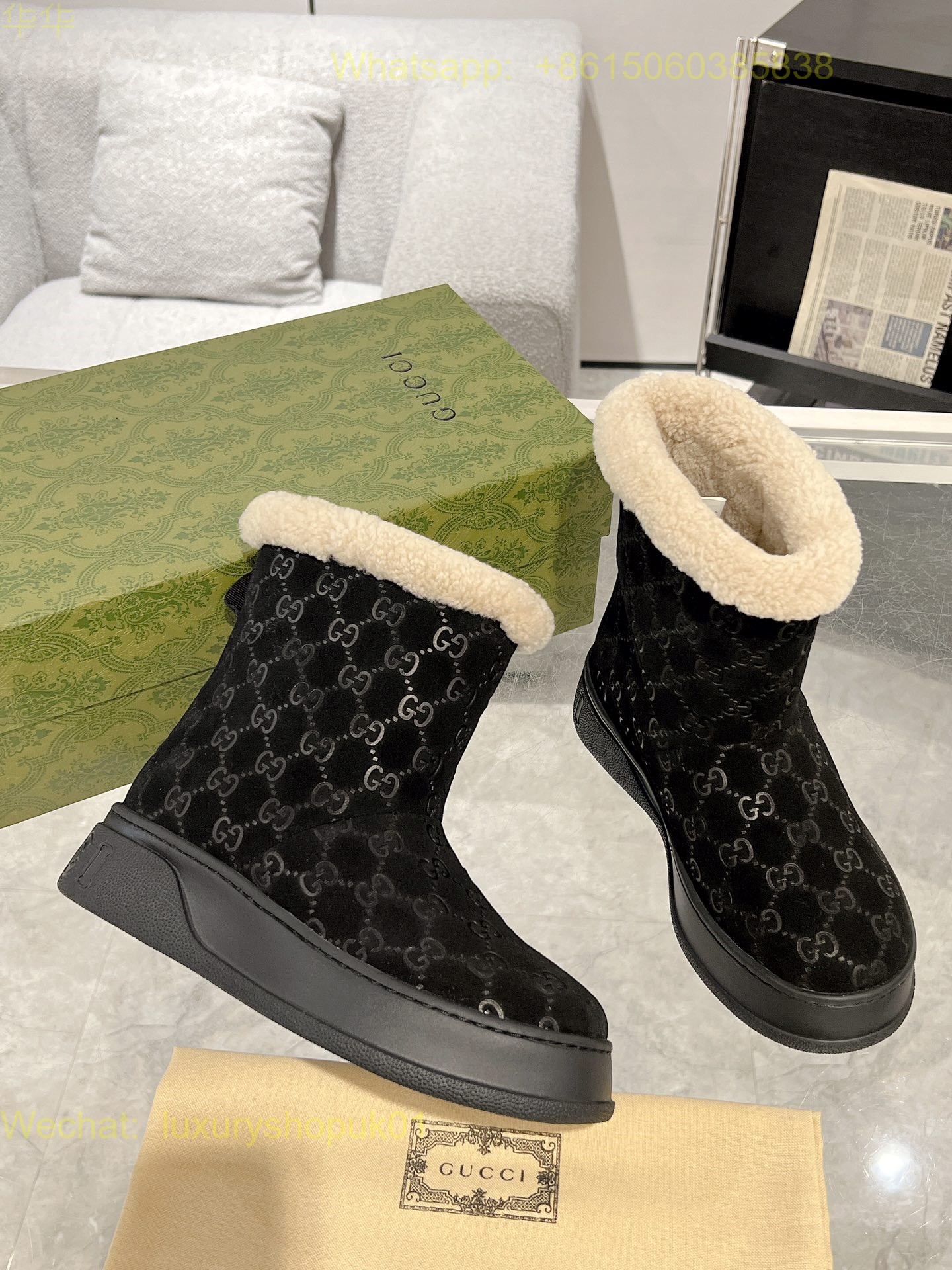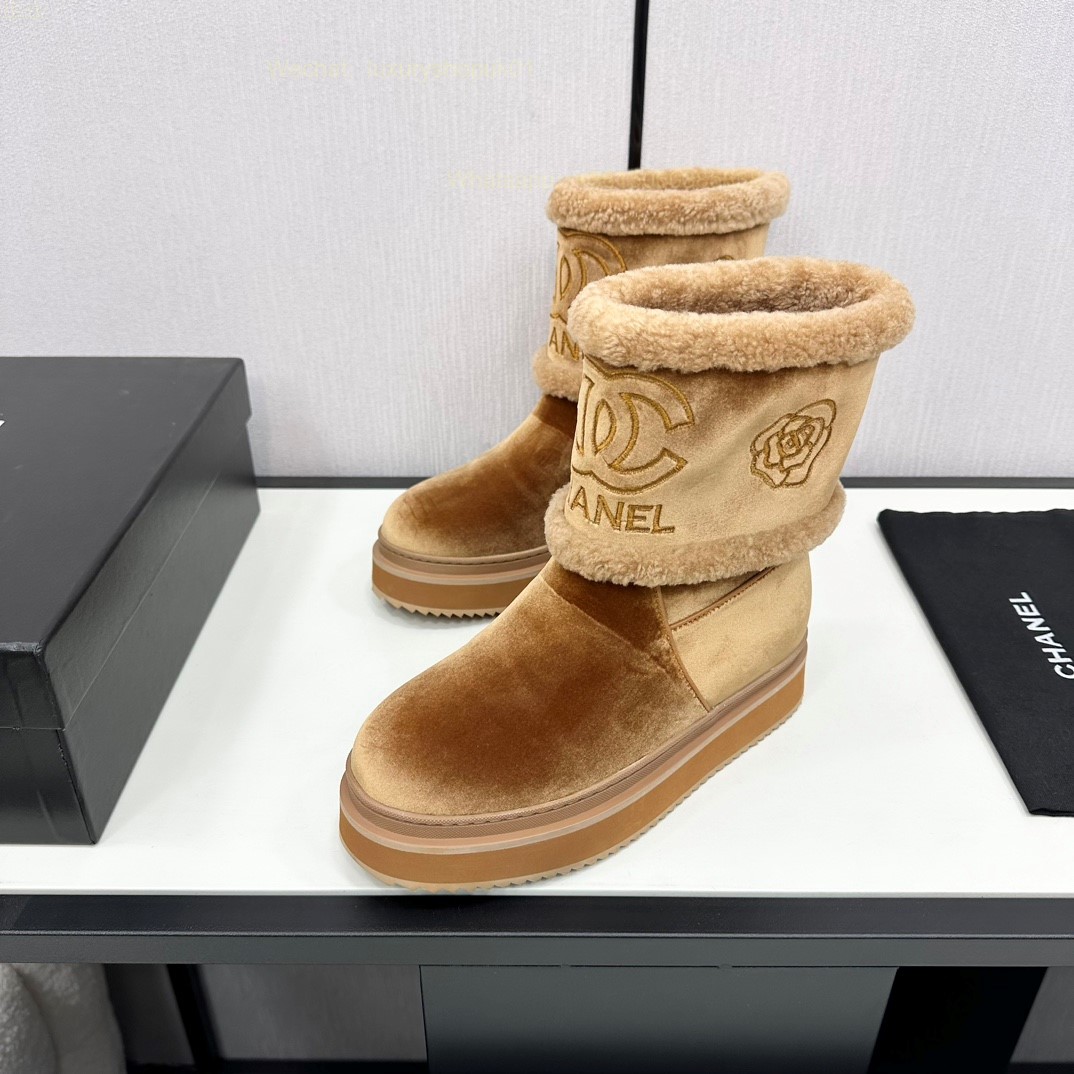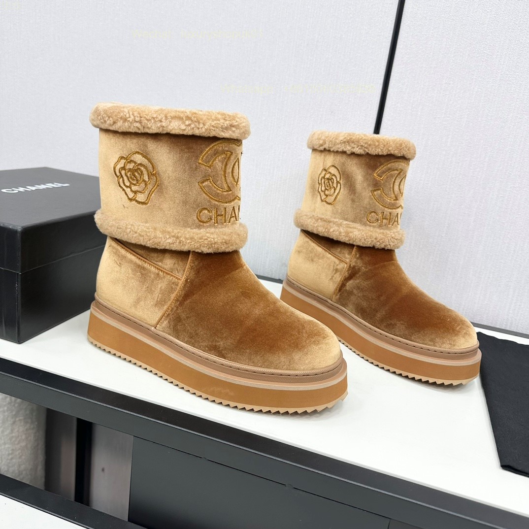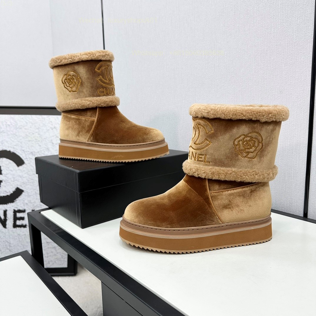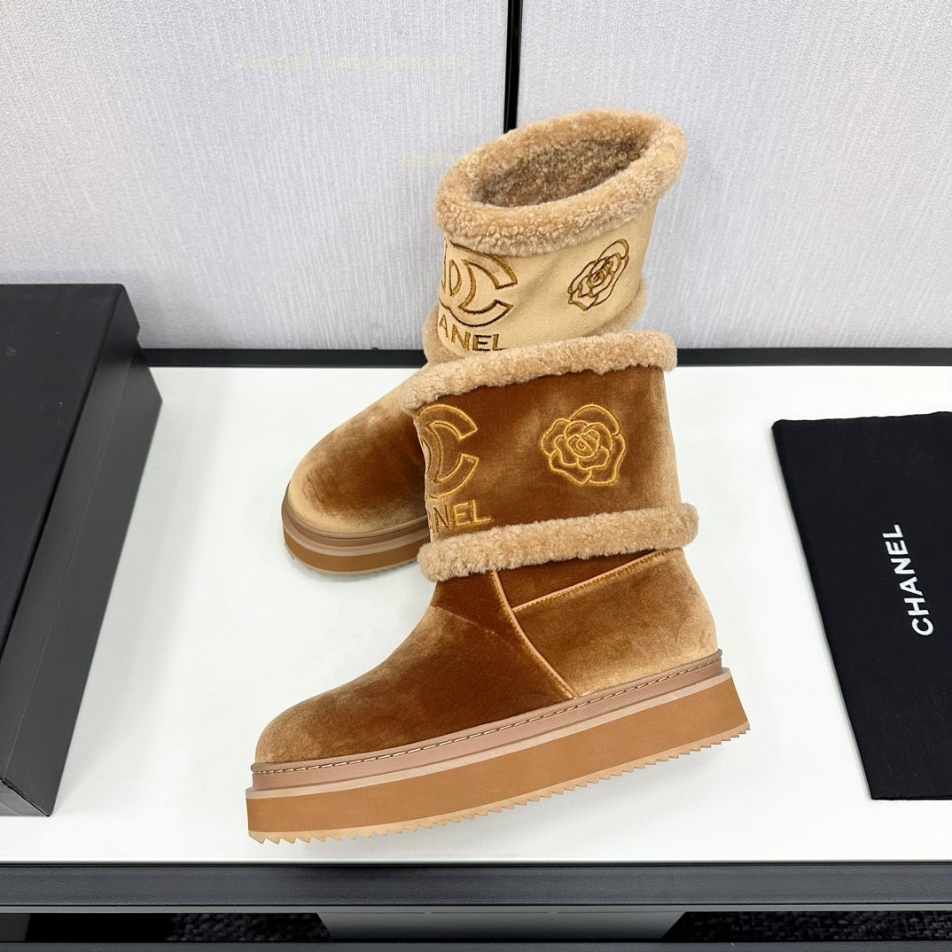 Chanel Fur Shearling Boots Flat Women Snow Shoes